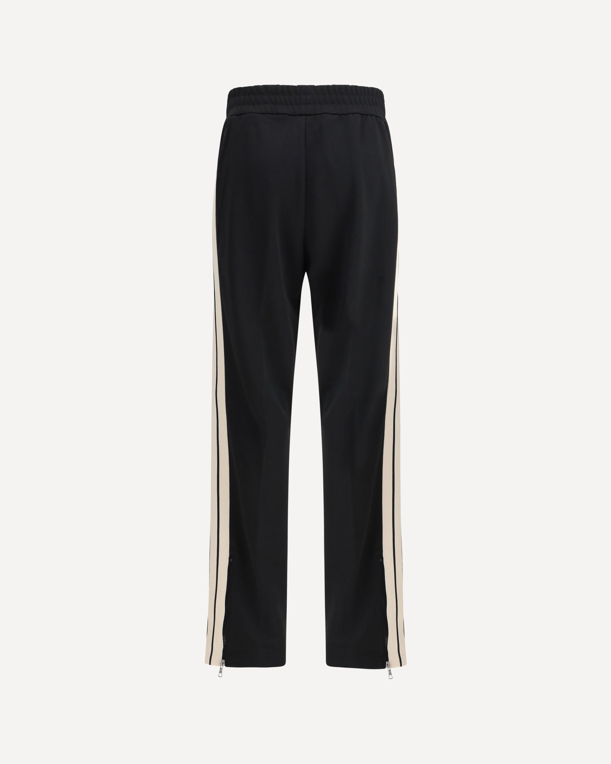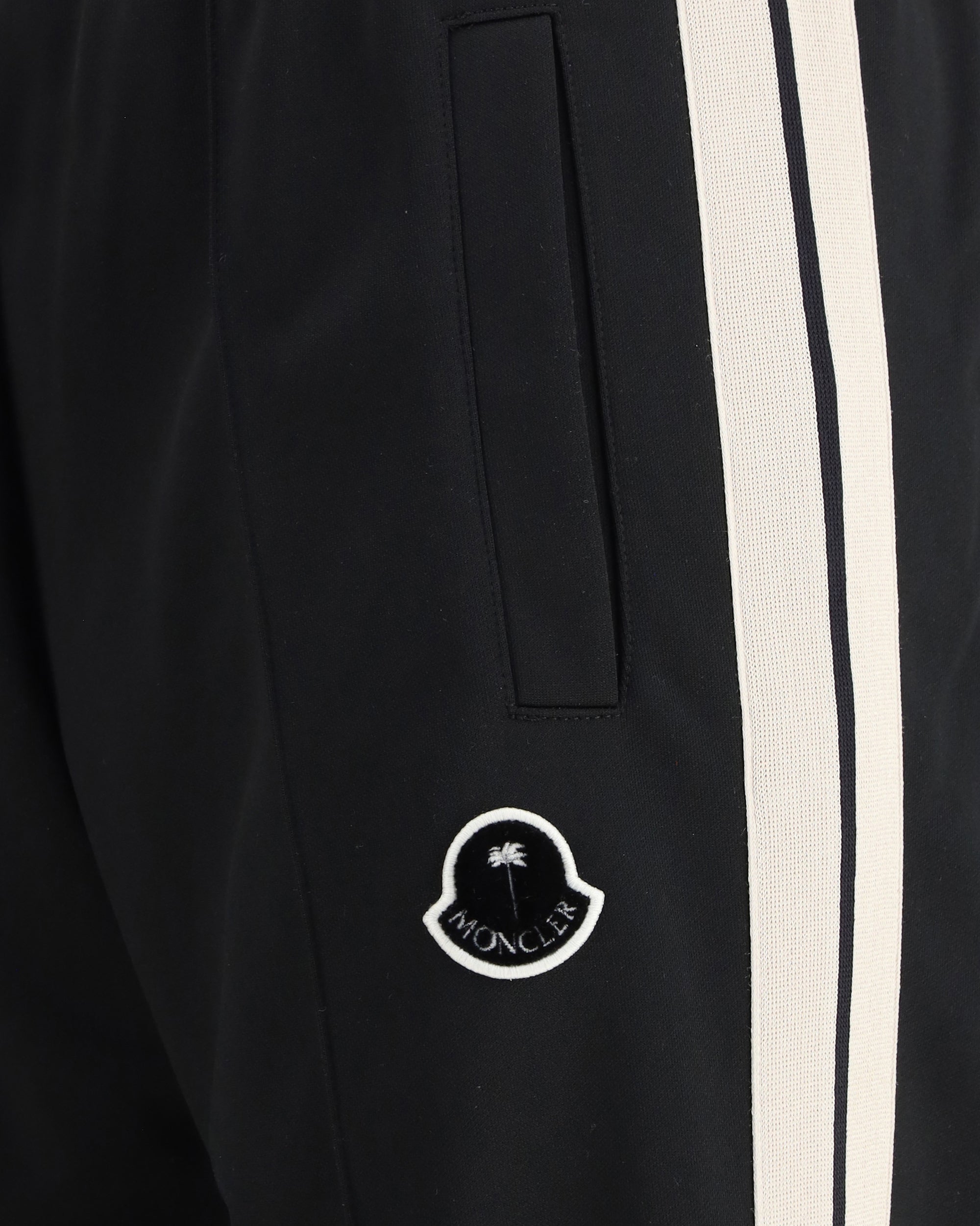 The Moncler x Palm Angels Sweatpants combine sportiness and urban style with a functional, modern design. The elastic waistband offers comfort, while the two side bands add a distinctive touch to the look. Adjustable zippered ankles allow you to customize the fit, while the two side welt pockets offer practicality. The patch with the brands iconic logos applied to the side lends an accent of recognition and style.