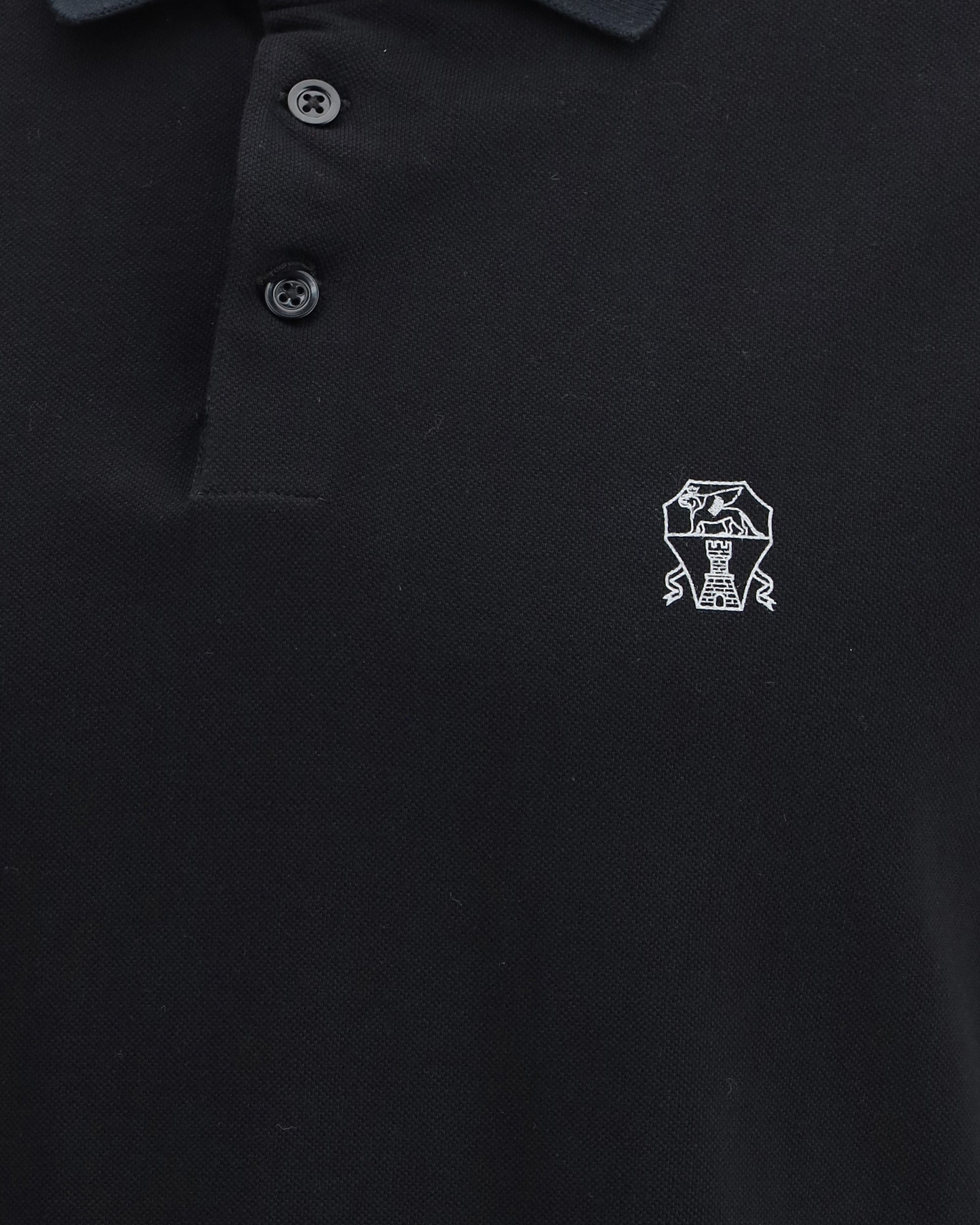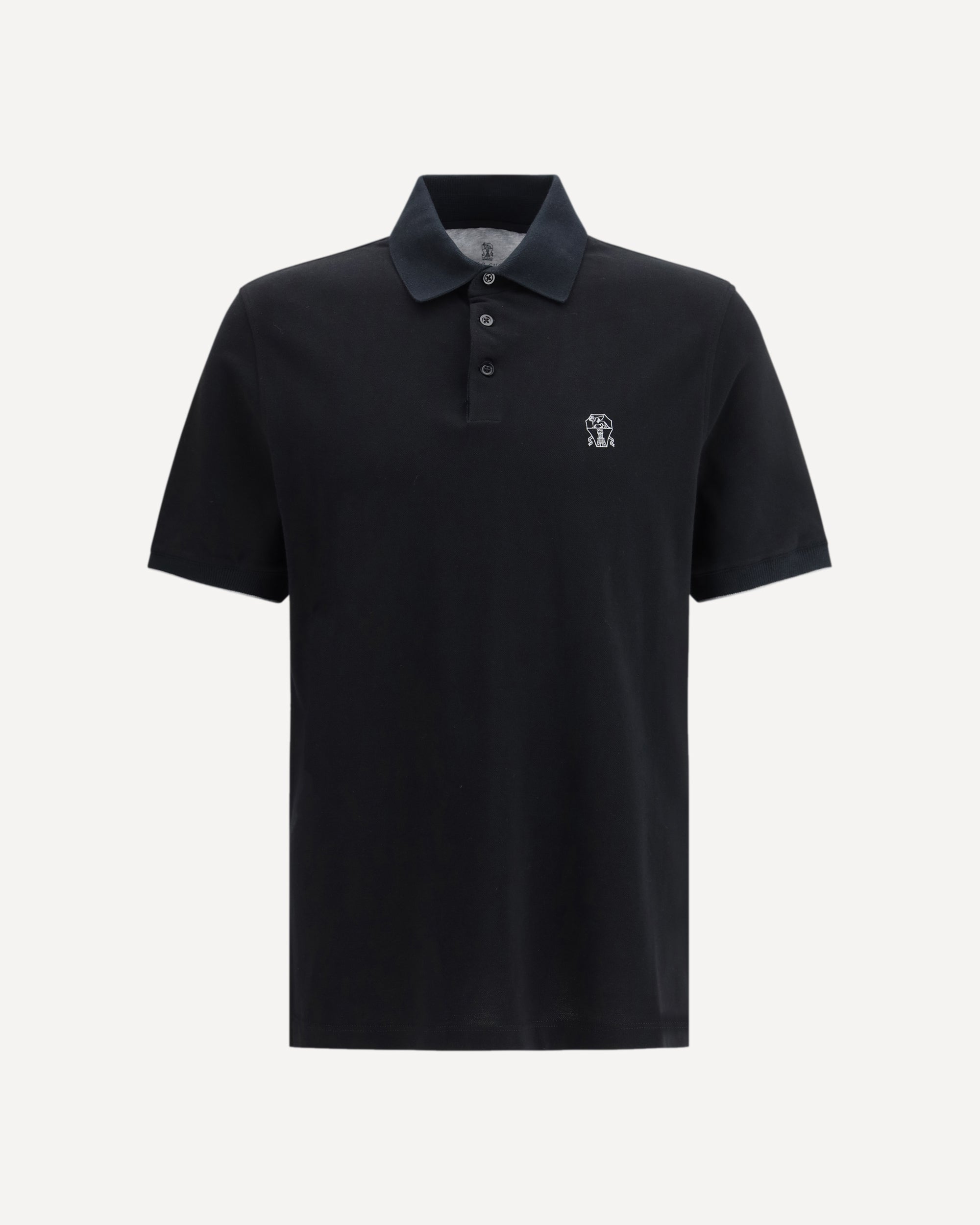 The cotton polo Shirt by Brunello Cucinelli embodies refined simplicity, featuring a ribbed classic collar and front buttons. The contrasting signature logo adds a distinctive touch, while the ribbed sleeves with contrasting trim enhance the clean, monochrome design. The regular fit completes a versatile and polished piece.