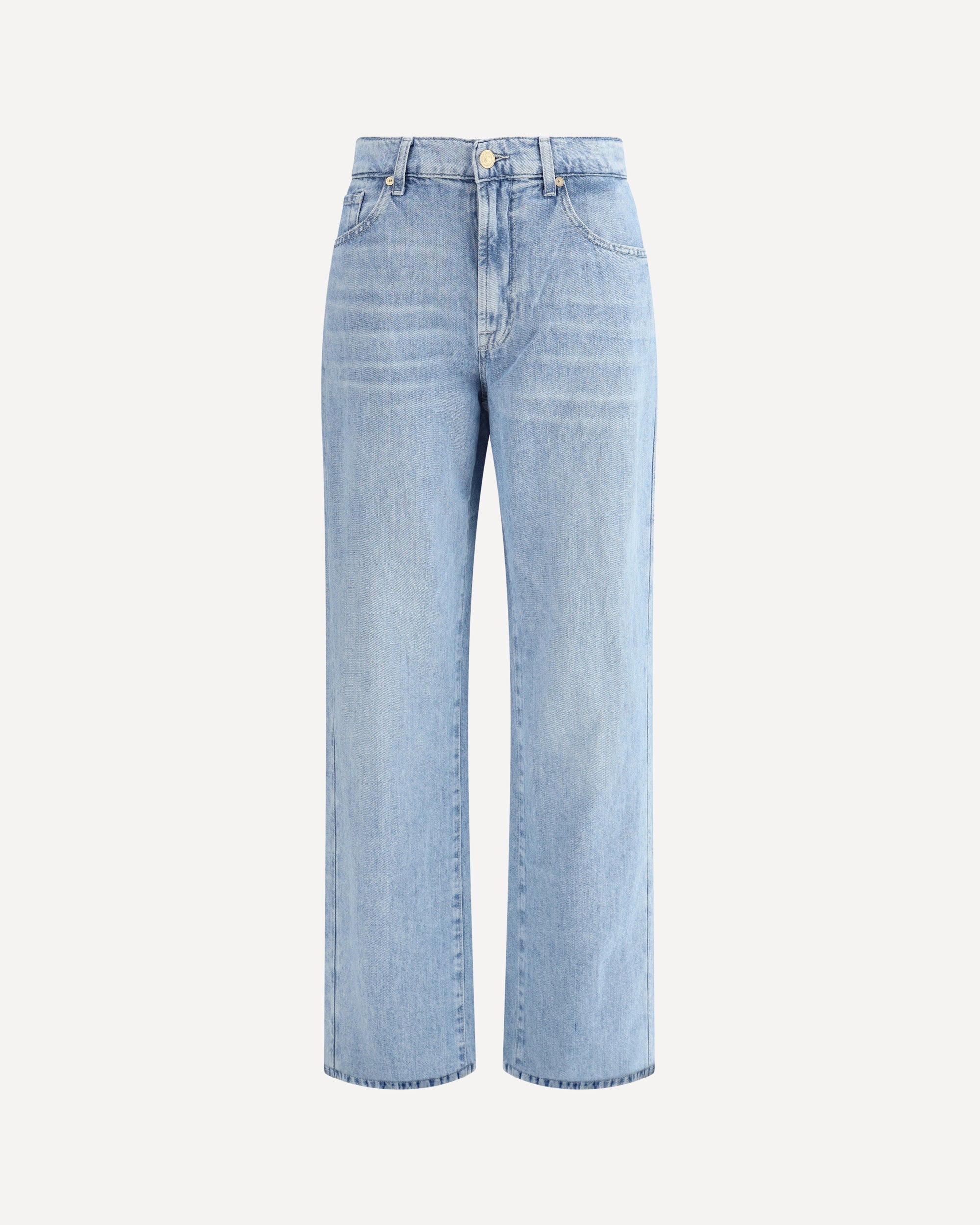 The Tess Jeans by 7For are a straight fit, featuring a front zipper and button closure for a comfortable and secure fit. The five-pocket design and belt loops at the waist add practicality and functionality. The appliquéd logo patch on the back completes the look with a distinctive touch, making these jeans a versatile and modern garment for any casual occasion.