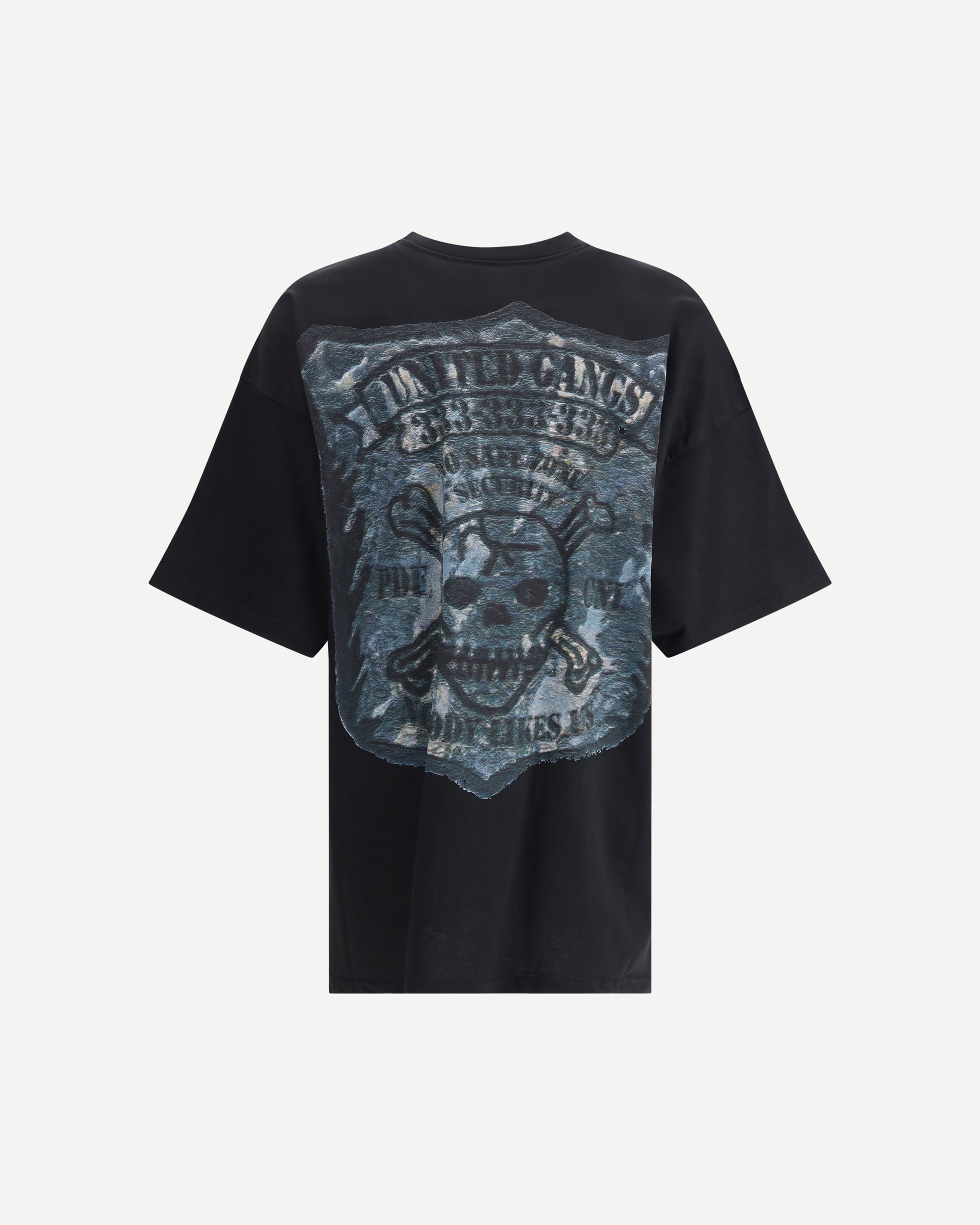 PDF Channel's The Boy Black Gangs T-Shirt is distinguished by its oversized style that provides a comfortable, modern fit. Made with a crew neck and short sleeves, it is perfect for a casual, contemporary look. The embossed screen print on both the front and back adds a graphic and distinctive detail, making this garment a must-have for those who like to express personality even with simplicity.