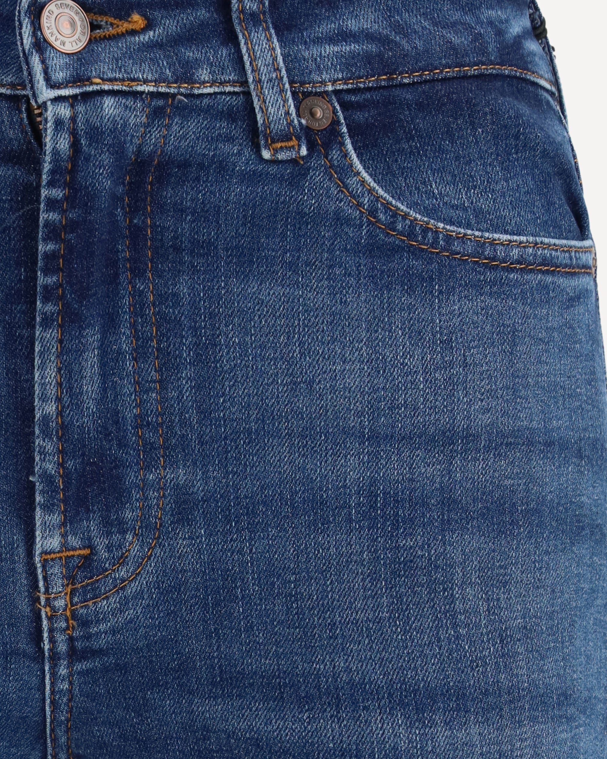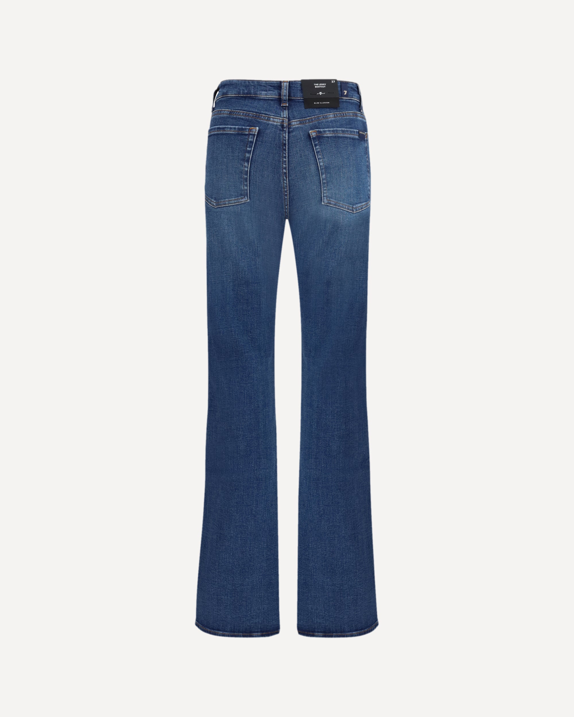 The Slim Illusion leggy bootcut Jeans by 7 For All Mankind offer a contemporary take on feminine elegance, defined by a fluid, elongated silhouette. The mid-rise waist gently contours the hips and thighs before opening softly from the knee, creating a leg-lengthening effect. Crafted from soft yet supportive Italian cotton denim, the fabric is designed to sculpt, smooth, and move comfortably with the body. Finished with a zip-and-button closure and the brand’s tone-on-tone Squiggle embroidery on the back pocket, this pair stands out as a timeless staple elevated by the label’s signature craftsmanship.