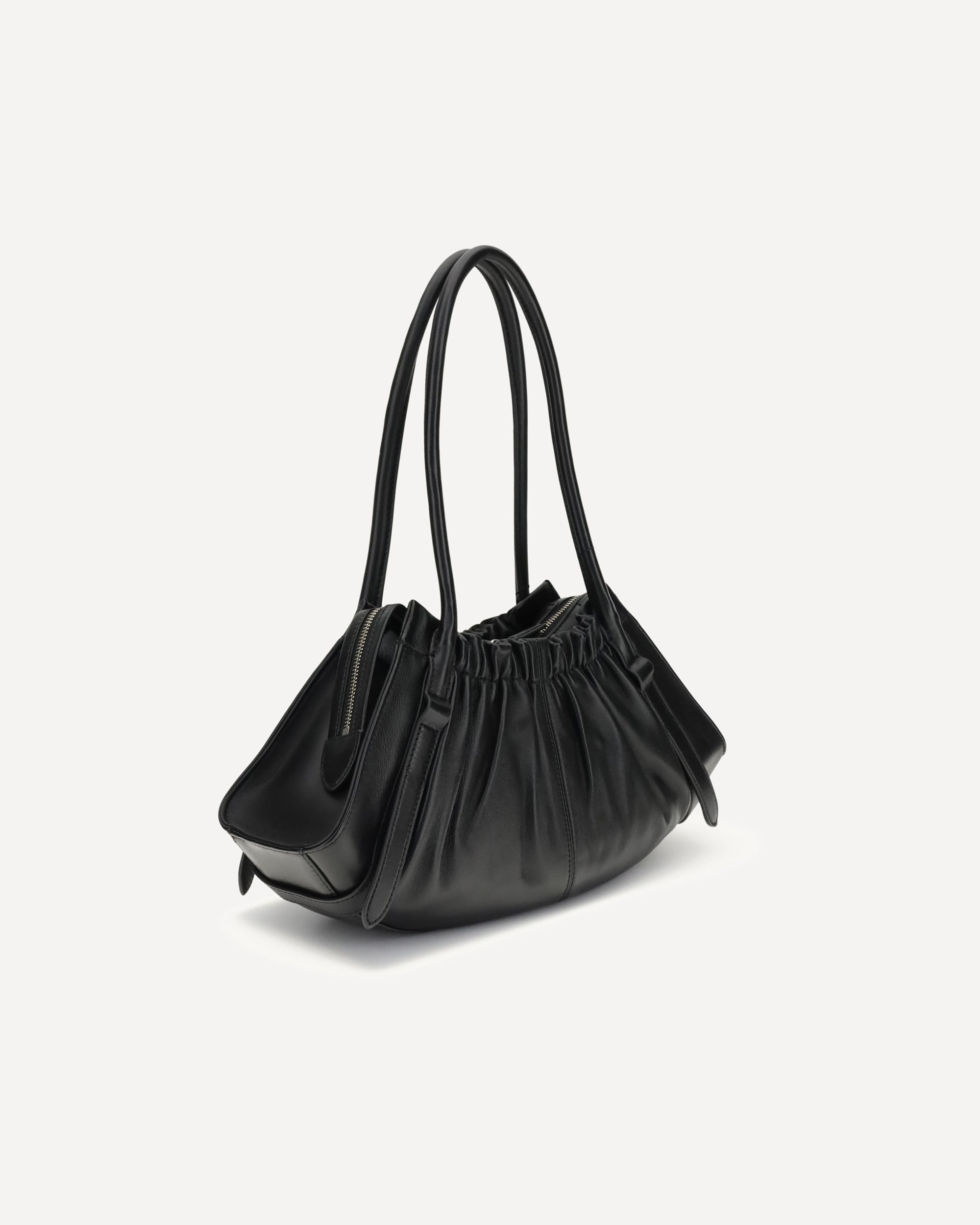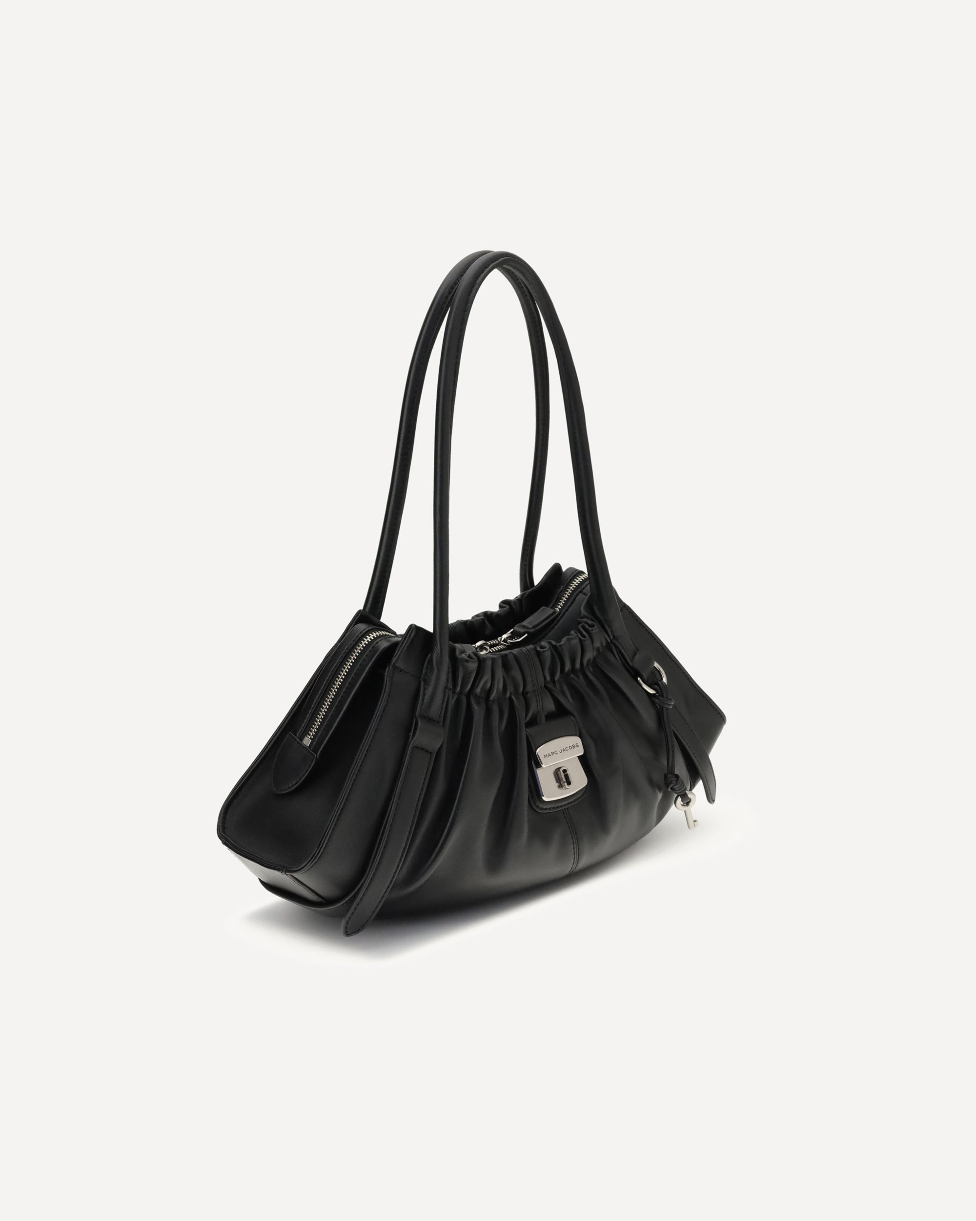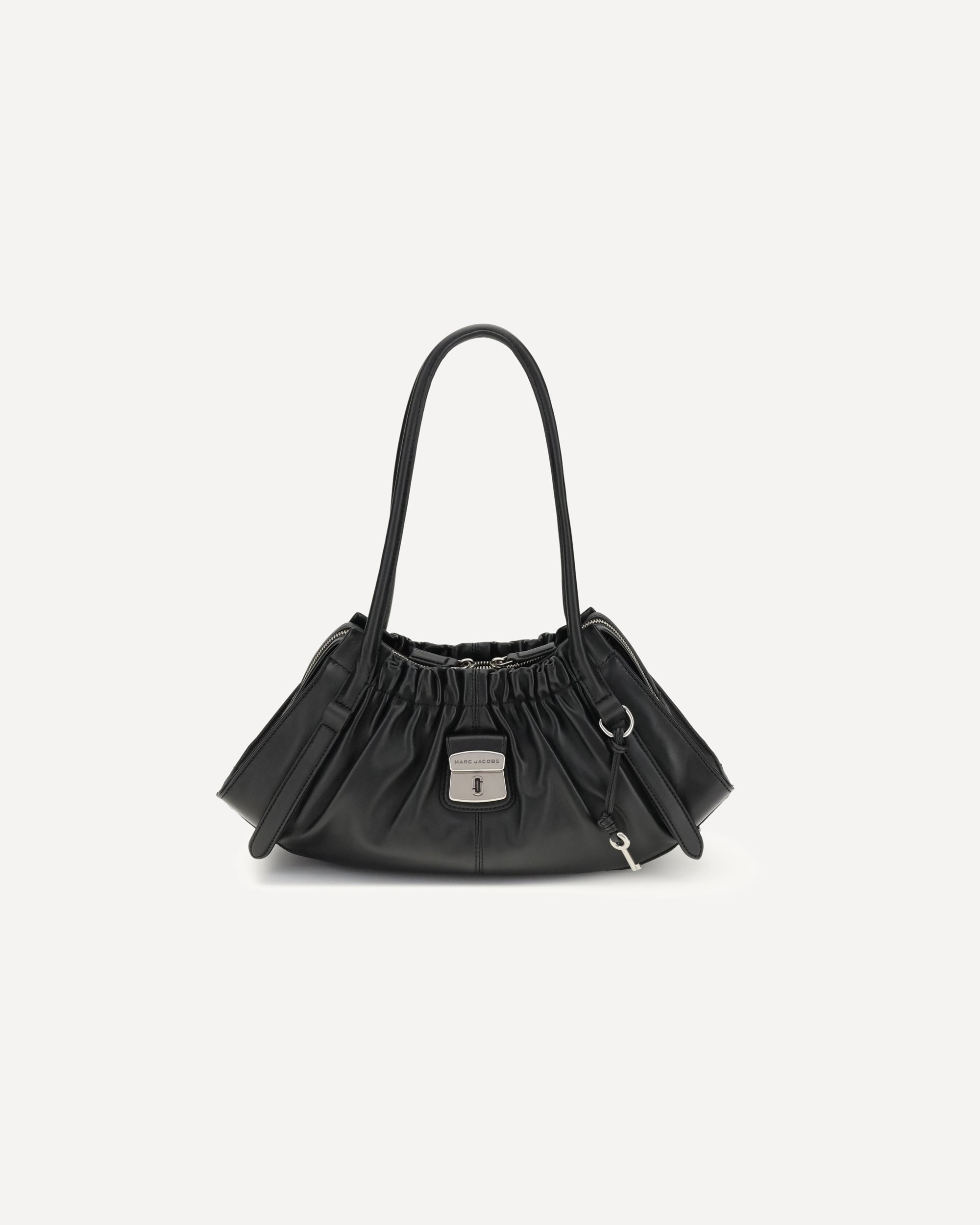 The Cristina Shoulder Bag by Marc Jacobs is made of soft nappa leather and features a double top zipper, single handle, and an interior zipper pocket. Finished with faille lining, it combines essential elegance with understated functionality.