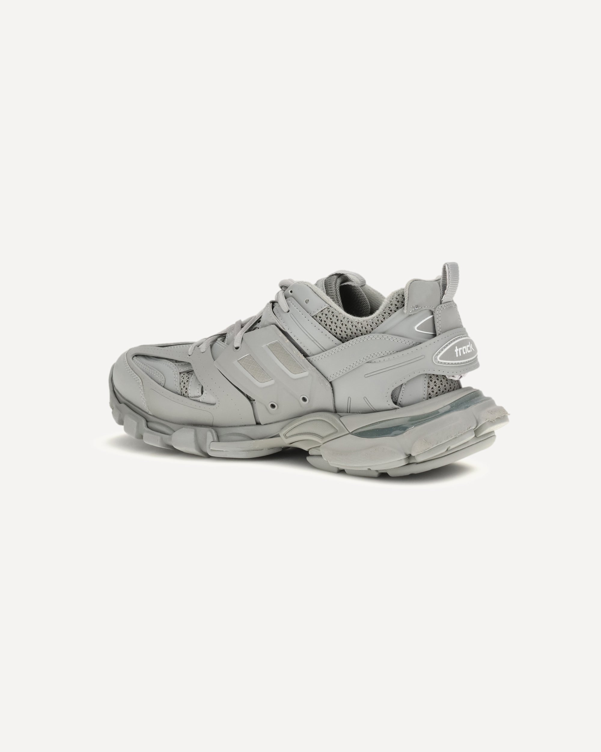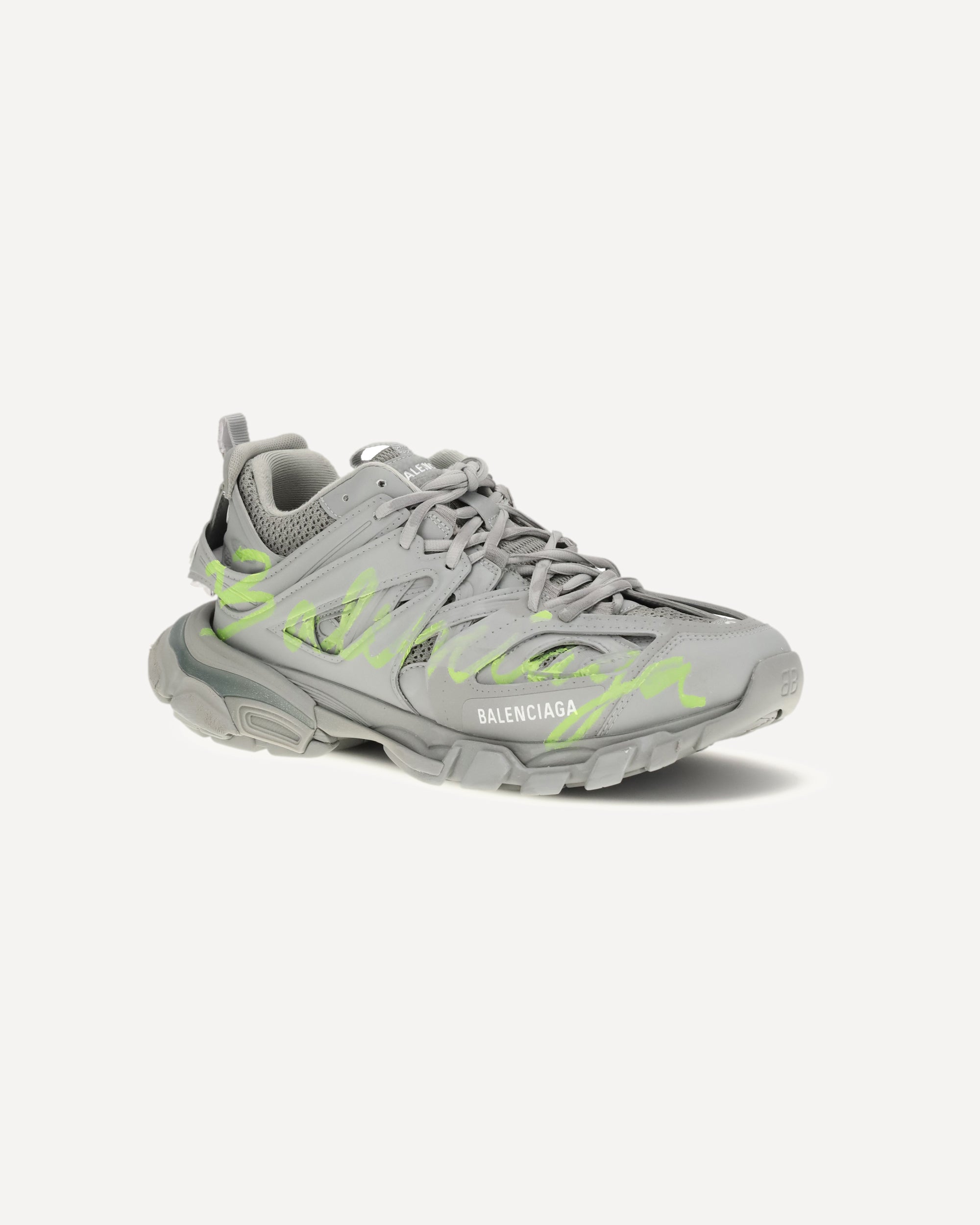The Track Signature Sneakers by Balenciaga feature an iconic and contemporary design, distinguished by the written size on the toe and the embossed Track logo on the back of the heel. The embossed BB logo on the front of the sole and printed and embossed logo details between the outer side and tongue reinforce the model's identity. Double laces with hiking knotting and loops on the heel and tongue complete a sneaker with a strong technical and distinctive character.
