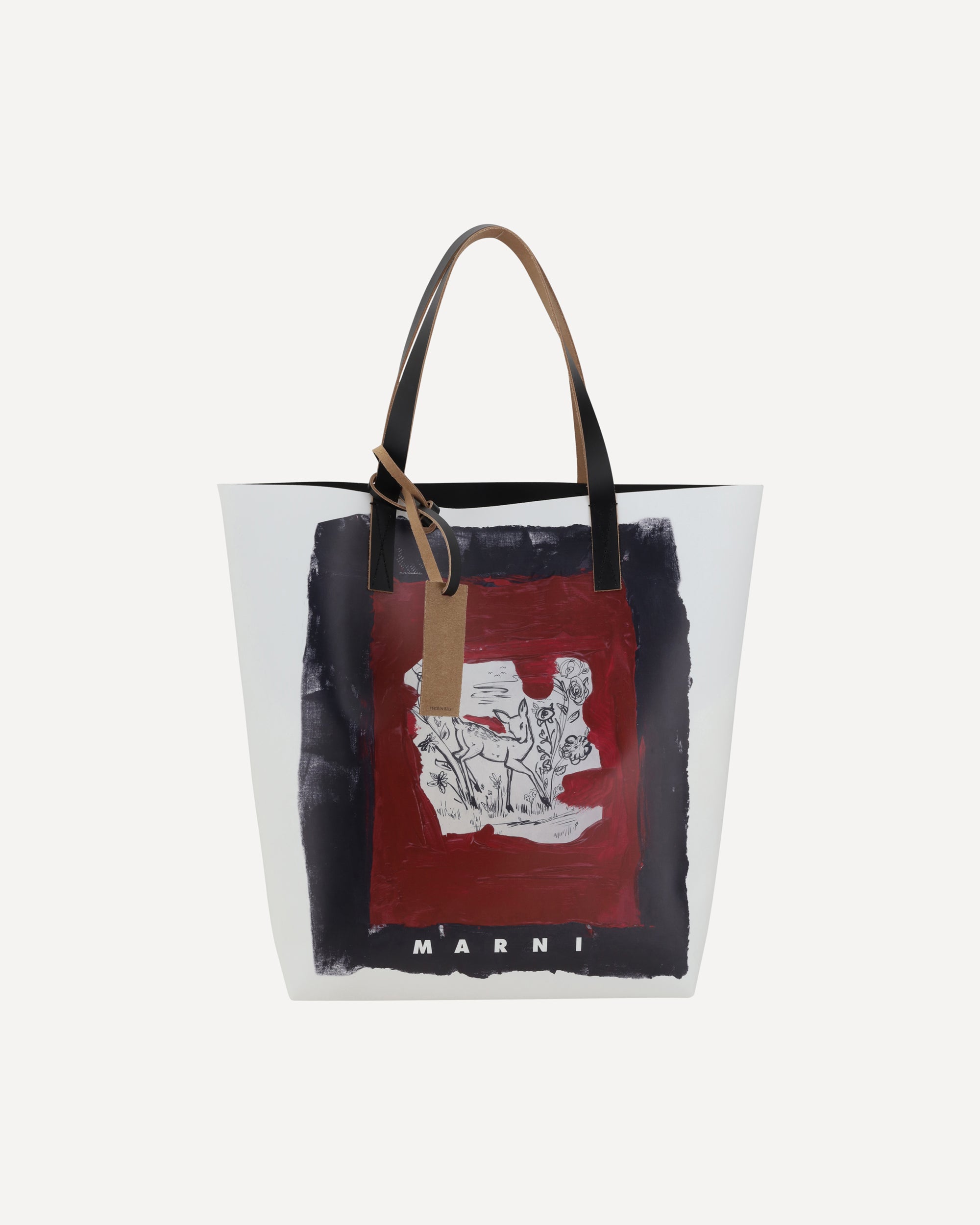 The Tribeca Tote Bag by Marni is a practical and stylish accessory, ideal for a casual and contemporary look. The two top handles allow for a comfortable grip, while the large and spacious design makes it perfect for everyday use. The maxi print on the front, embellished with the iconic monogram, adds a touch of originality and recognisability to the garment, making it immediately distinctive. The interior, with a single compartment, offers enough space to store essential items with ease.