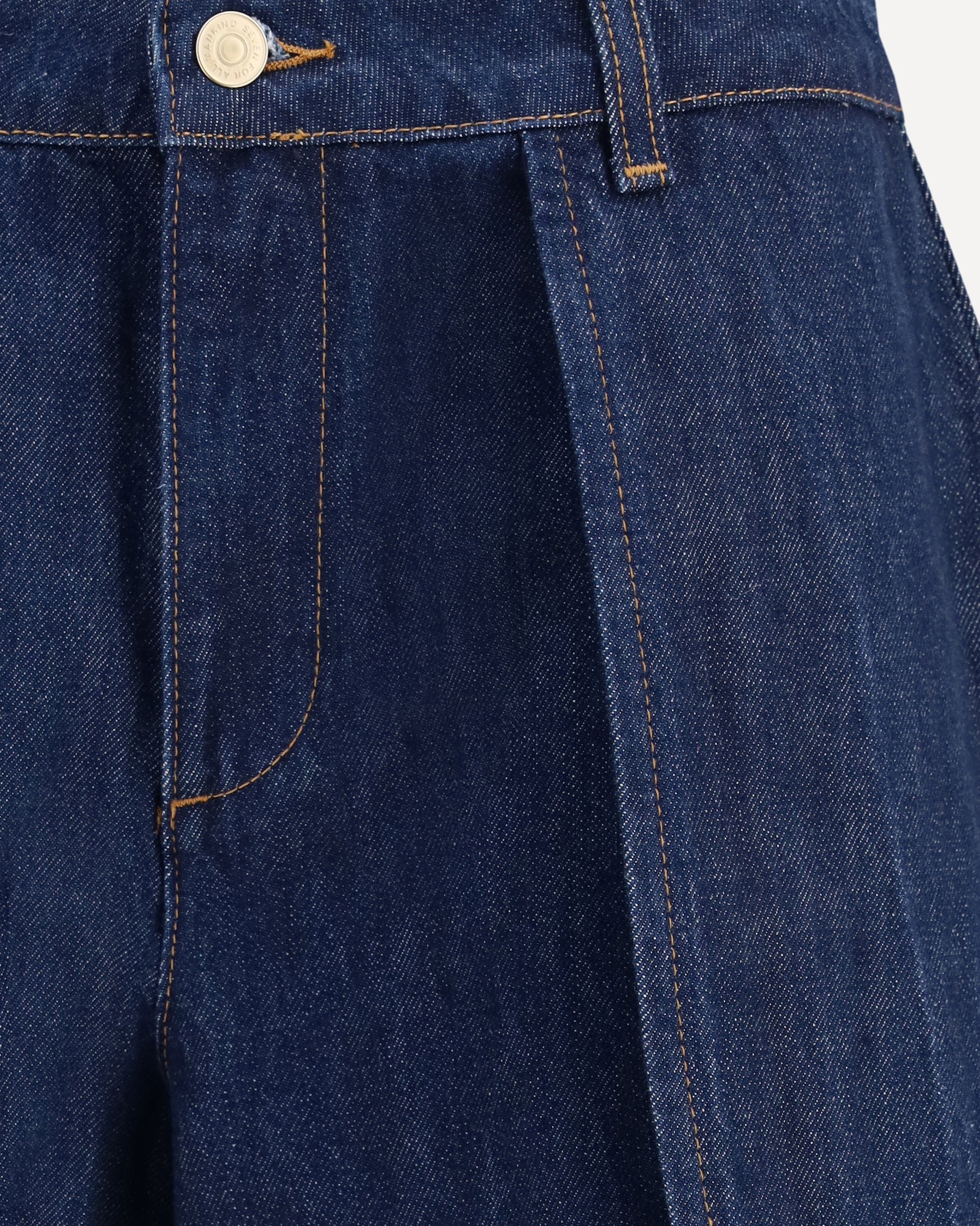 The Tulip Barrel Jeans by 7For feature a high-rise silhouette that opens into a wide leg from hip to hem, creating a long, relaxed line with plenty of room to move. Crafted from structured Denim that softens with wear, these jeans are detailed with a medium wash, tulip-overlapping seams for a petal effect, and a zip-and-button closure. A clean back pocket completes the elegant and contemporary design