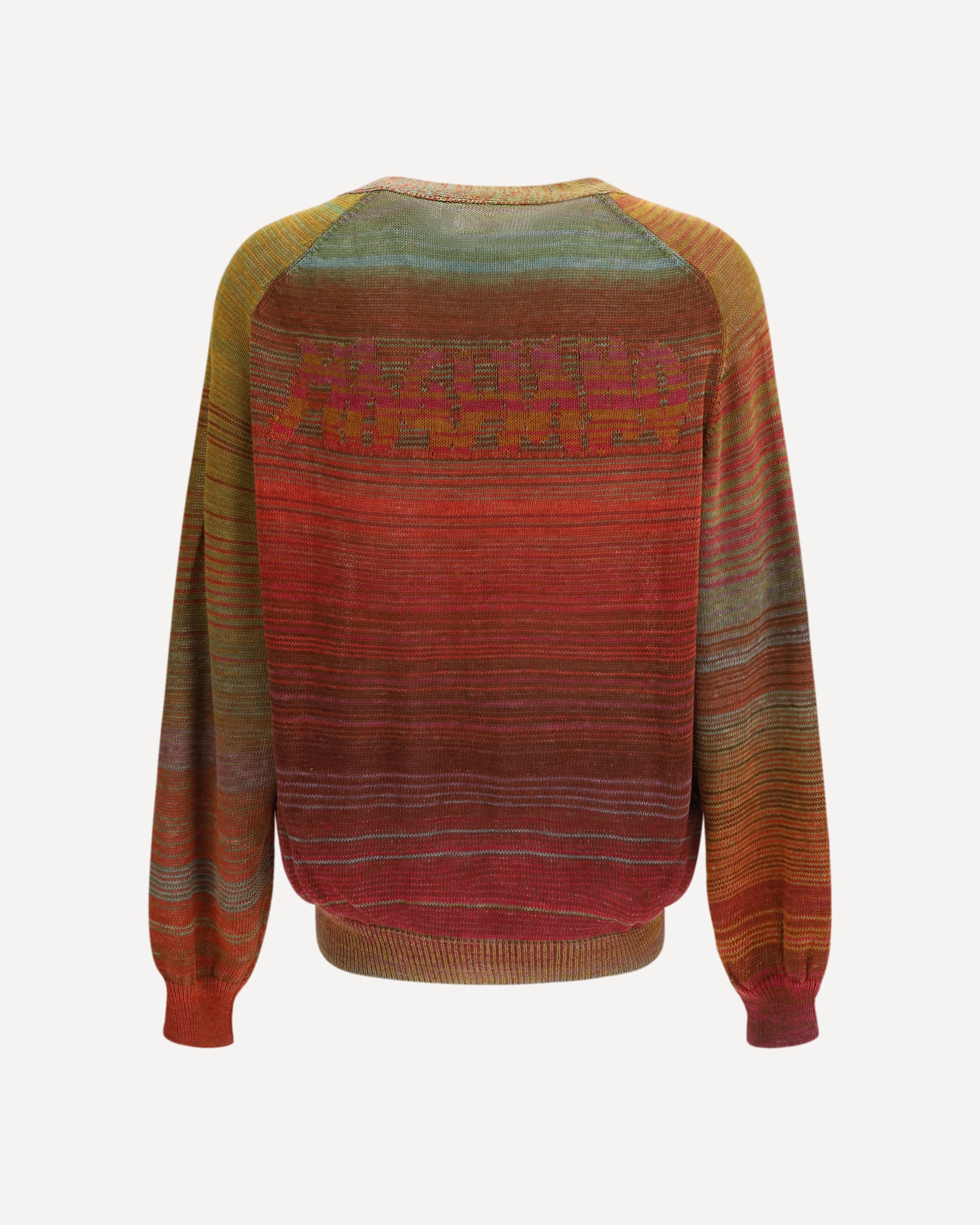 The Grandpa Cardigan by Magliano features a design characterized by horizontal stripes that add a touch of distinctive style. The V-neck and button closure offer an elegant and comfortable fit, while the two front pockets complete the garment with a practical detail. Perfect for a casual yet sophisticated look, this cardigan is ideal for pairing with jeans or chinos for a versatile and modern outfit.