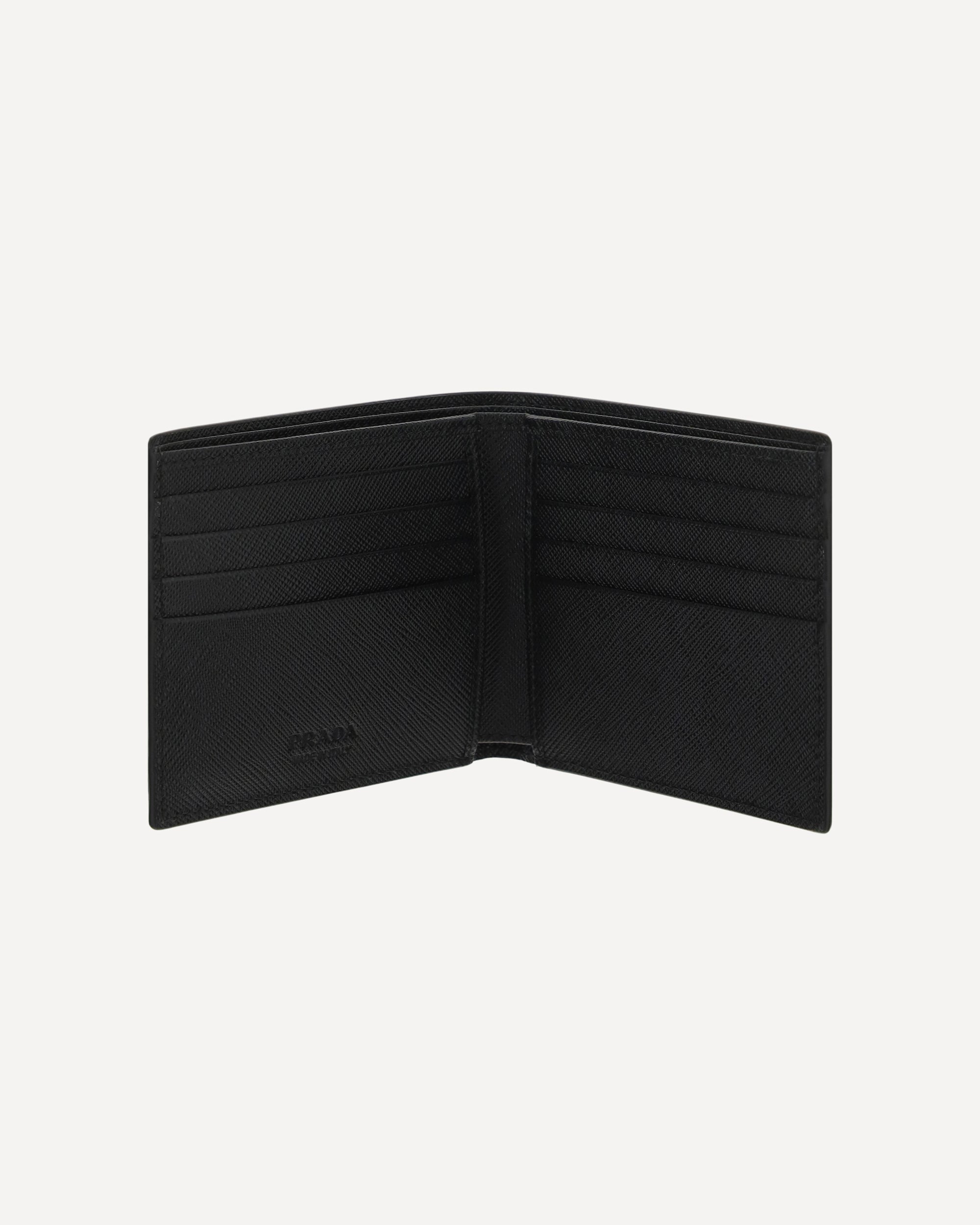 Prada's Leather Wallet is a stylish and functional accessory with a classic billfold design. Featuring a contrasting logo plaque on the front, it offers card slots and a billfold compartment, ensuring practical and neat organization. Inside, the press-stamped logo adds a discreet and refined touch, an expression of Prada's unmistakable style.