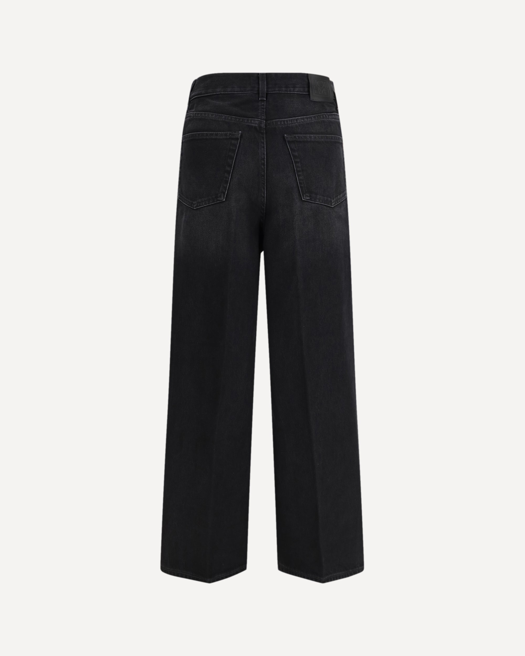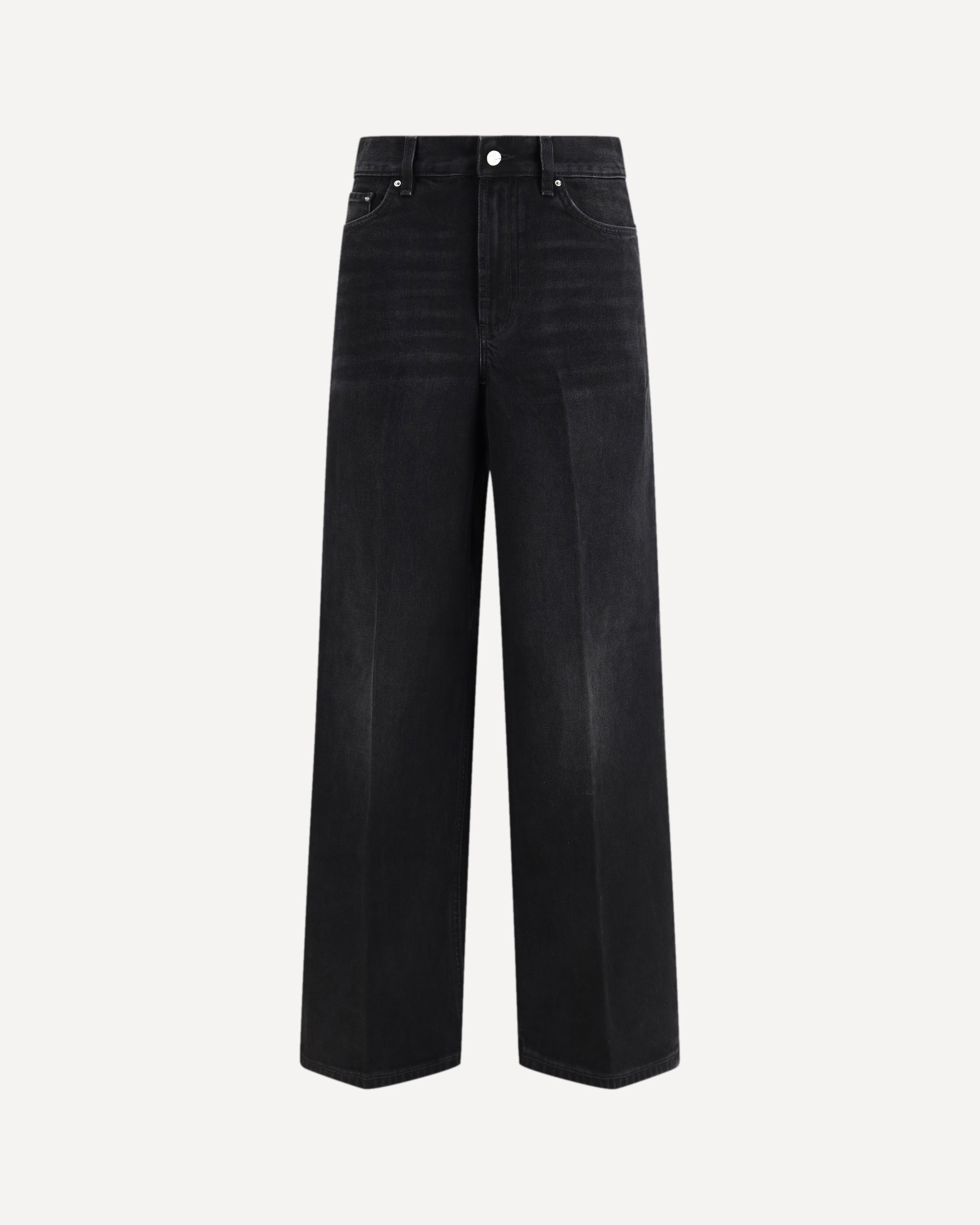 The wide-leg Jeans by Toteme feature a high-rise waist and extra-long legs that fall into a generous wide silhouette, defined by a sharp pressed crease. Crafted in Italy from mid-weight organic-cotton denim, they are finished with silver-tone hardware, a zipper fly, belt loops, five pockets, and a leather back patch. A modern, refined style that pairs effortlessly with flat loafers to highlight the contemporary shape.