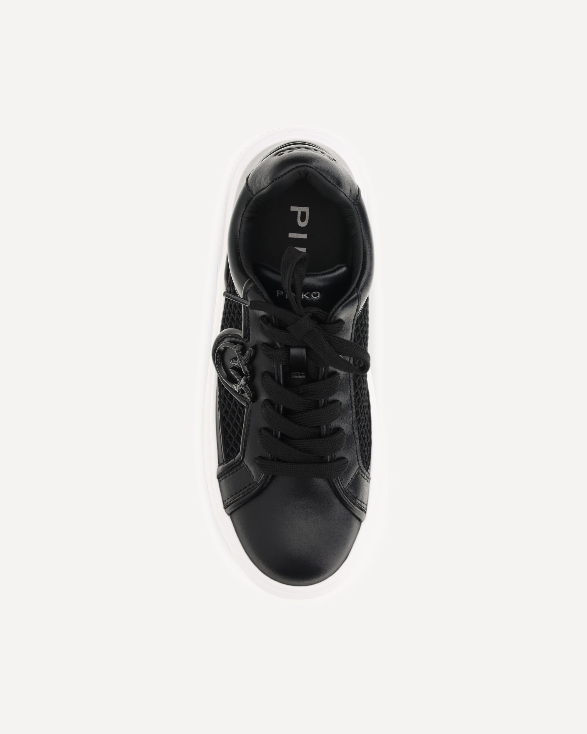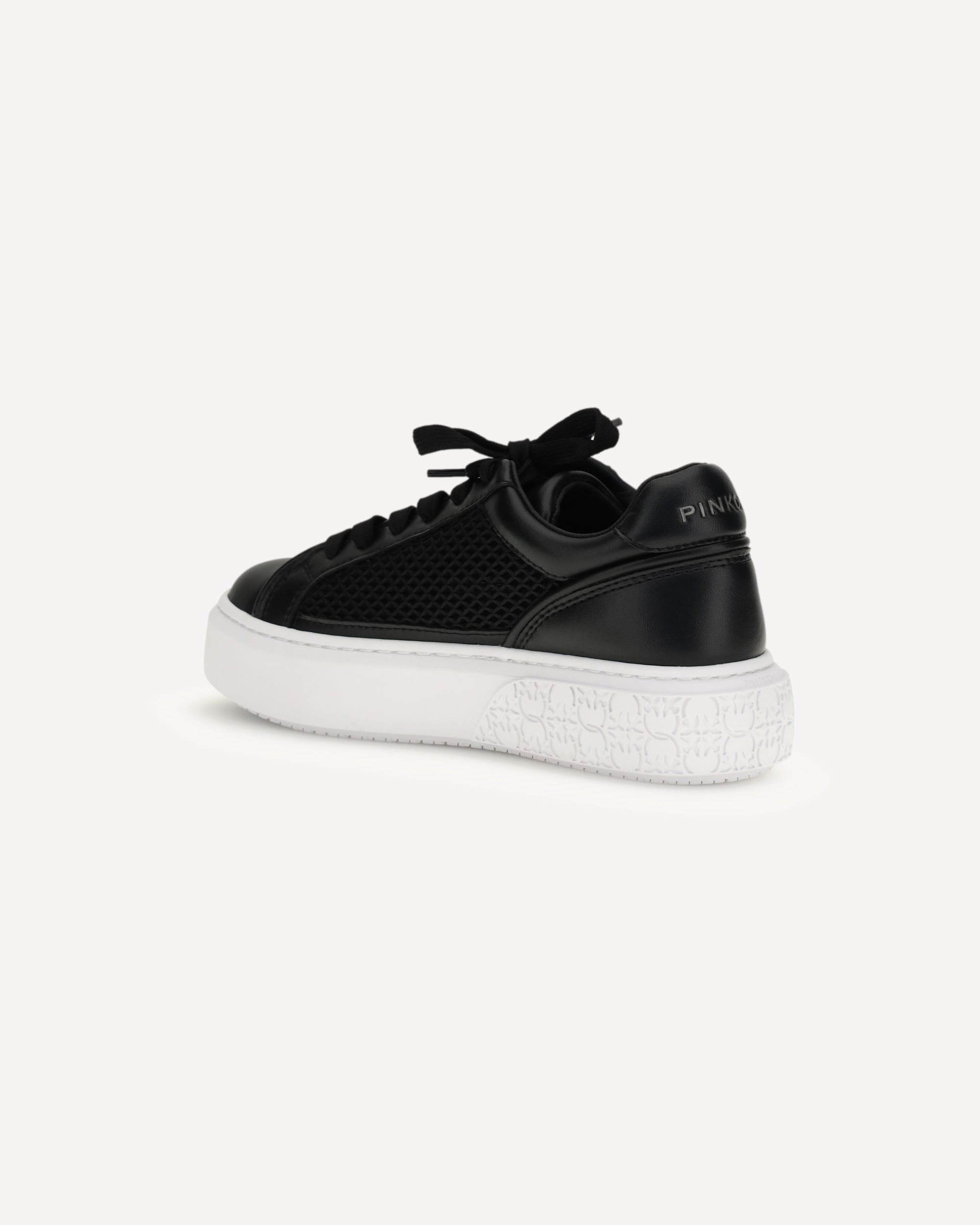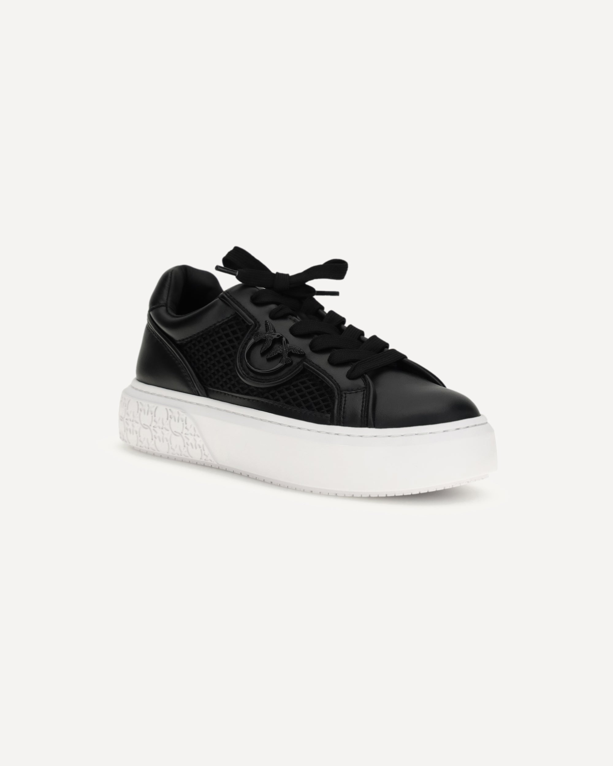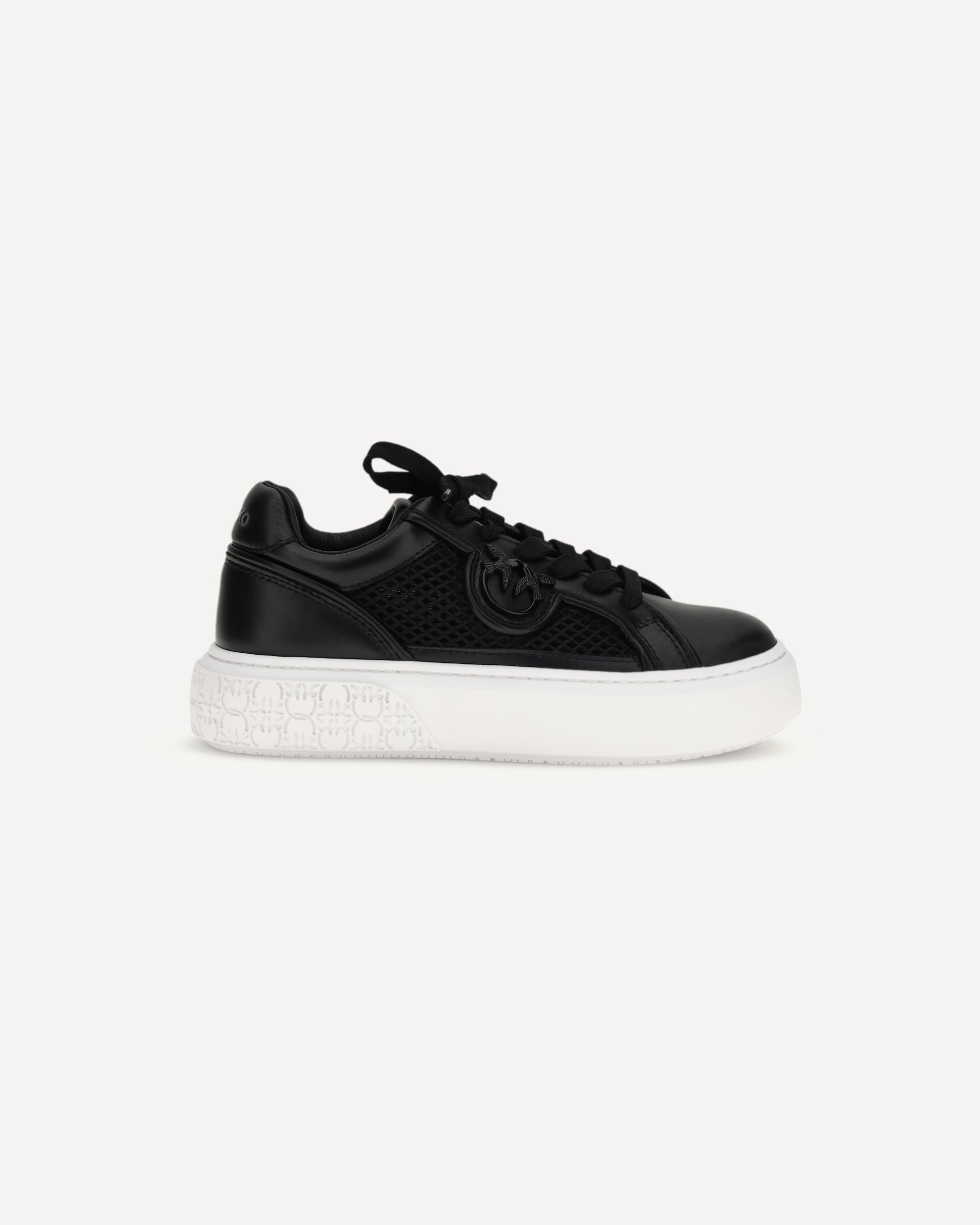 The Yoko leather Sneakers by Pinko with mesh inserts combine comfort and contemporary style. The lace-up closure and rounded toe ensure a secure fit, while the side metal logo adds character to the design. The rubber platform sole with panels completes the model, making it versatile and fashionable.