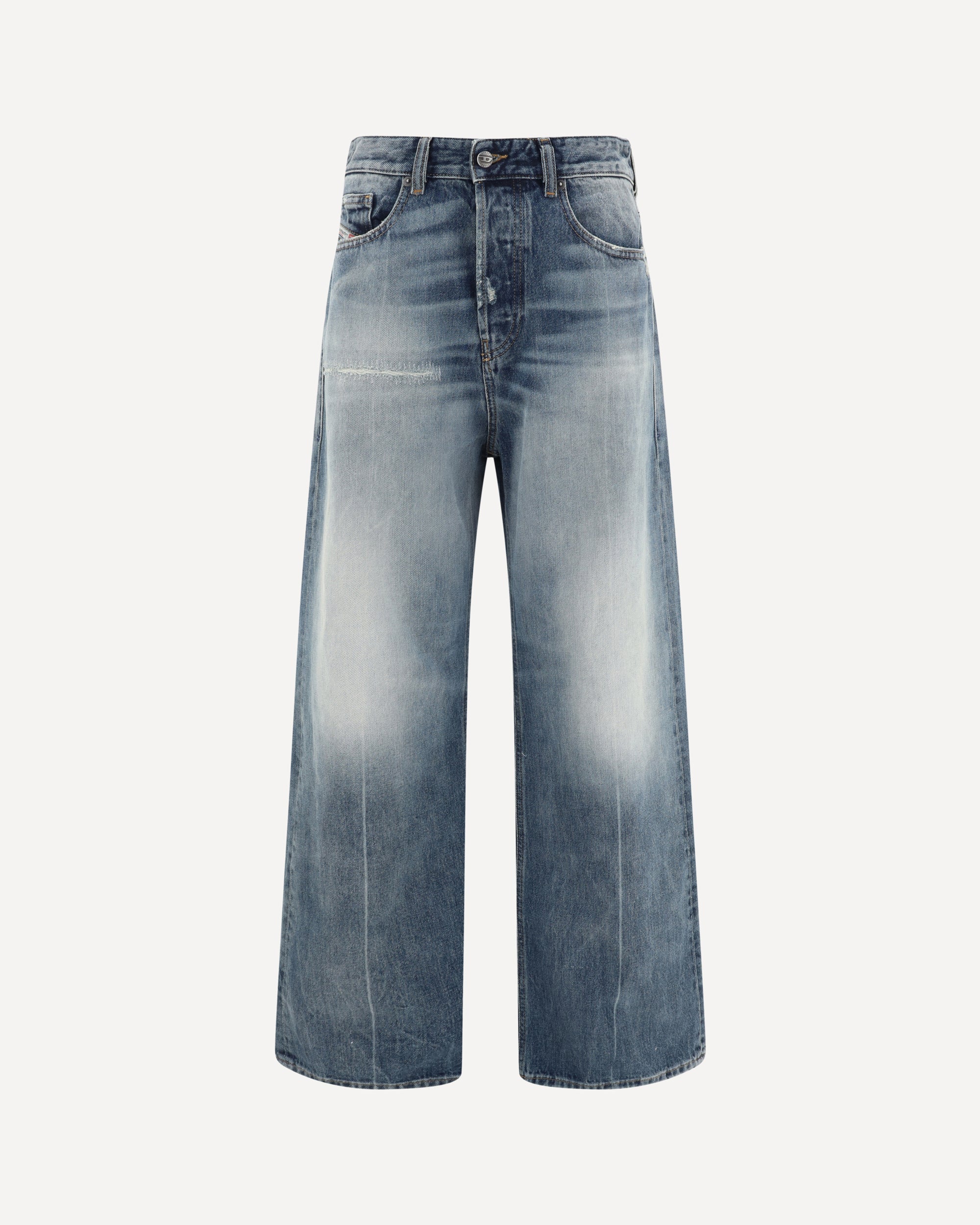 Diesel's 1996 D-sire Jeans are a wide leg model with a modern, punchy design featuring a loose fit that offers comfort and style. The classic five-pocket cut and zipper-and-button closure ensure practicality and a perfect fit. Belt loops at the waistband allow you to further customize the look, while the back Diesel logo applique adds a distinctive touch. These jeans are ideal for a casual and on-trend look, perfect for any occasion.