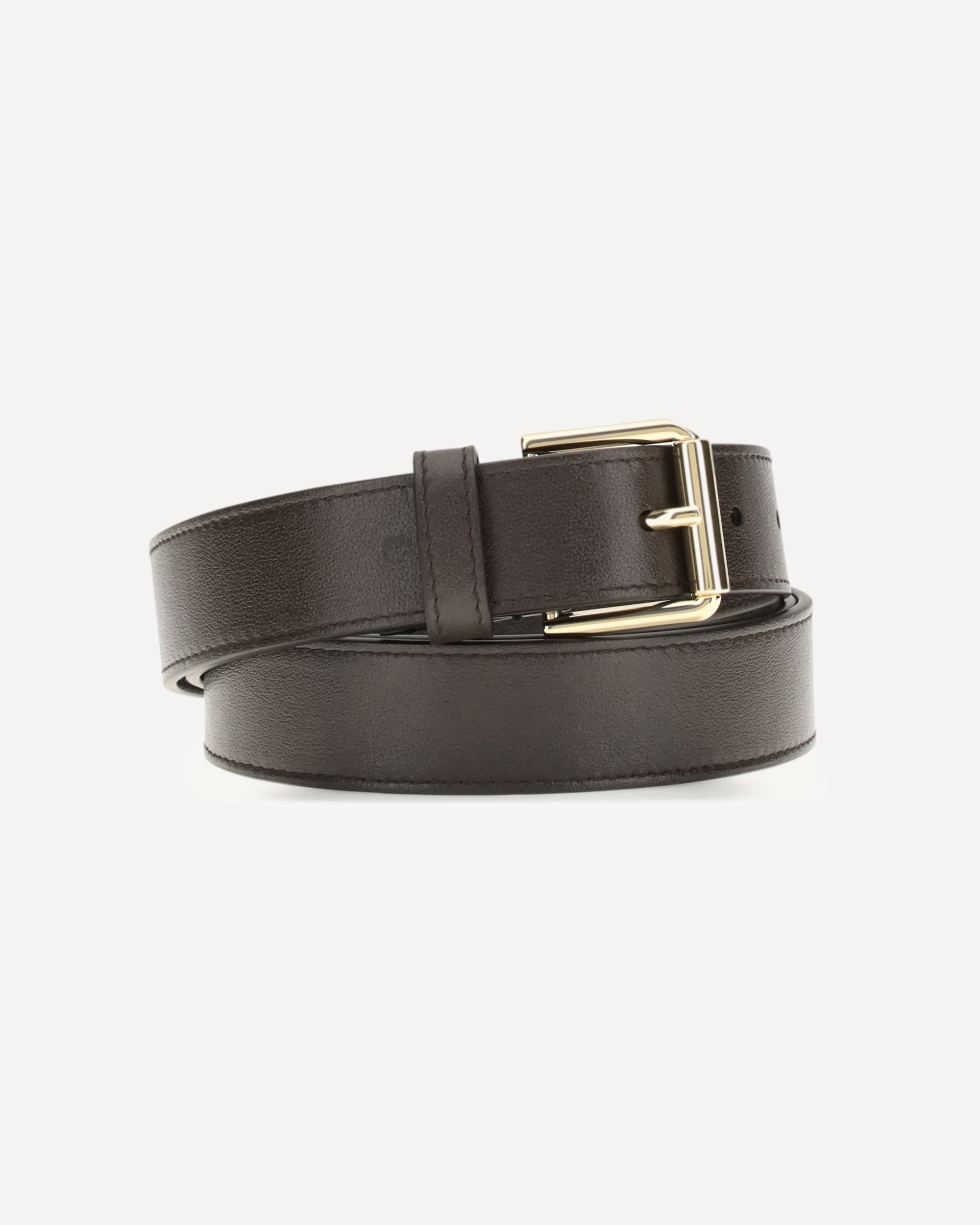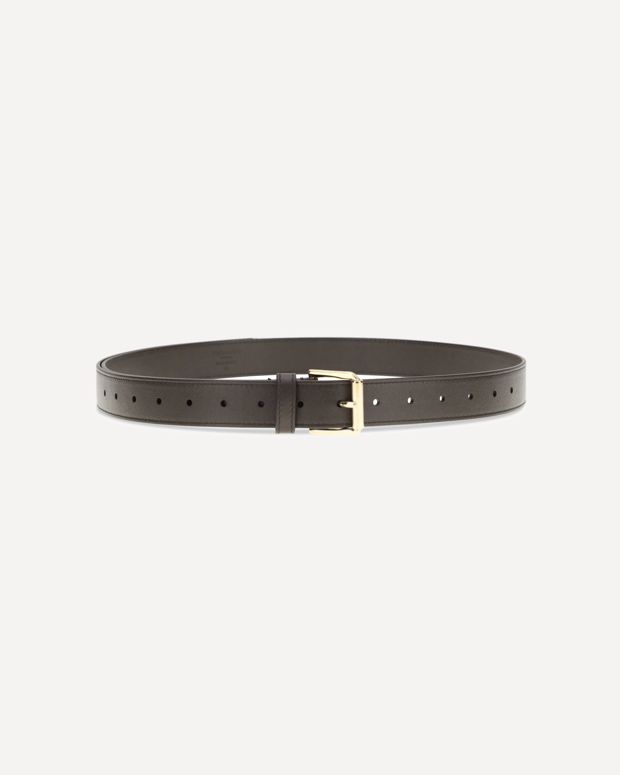 The Voyou leather long Belt by Givenchy is a sophisticated accessory with a bold style. Featuring a metal toe cap engraved with the brand logo, it is distinguished by metal details with a gold finish that add a touch of luxury and sophistication. Perfect for enhancing any outfit with distinctive modern elegance.