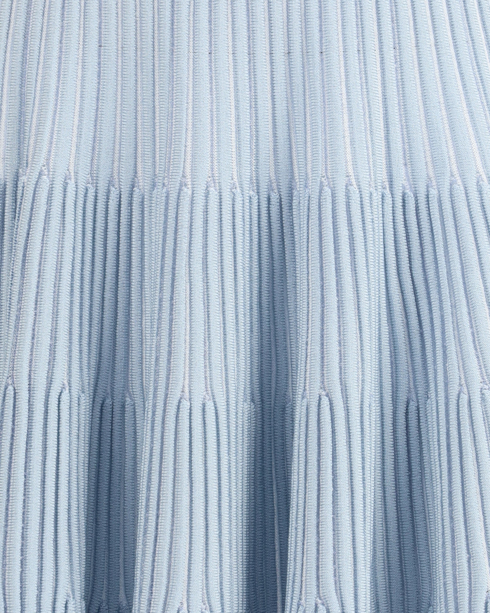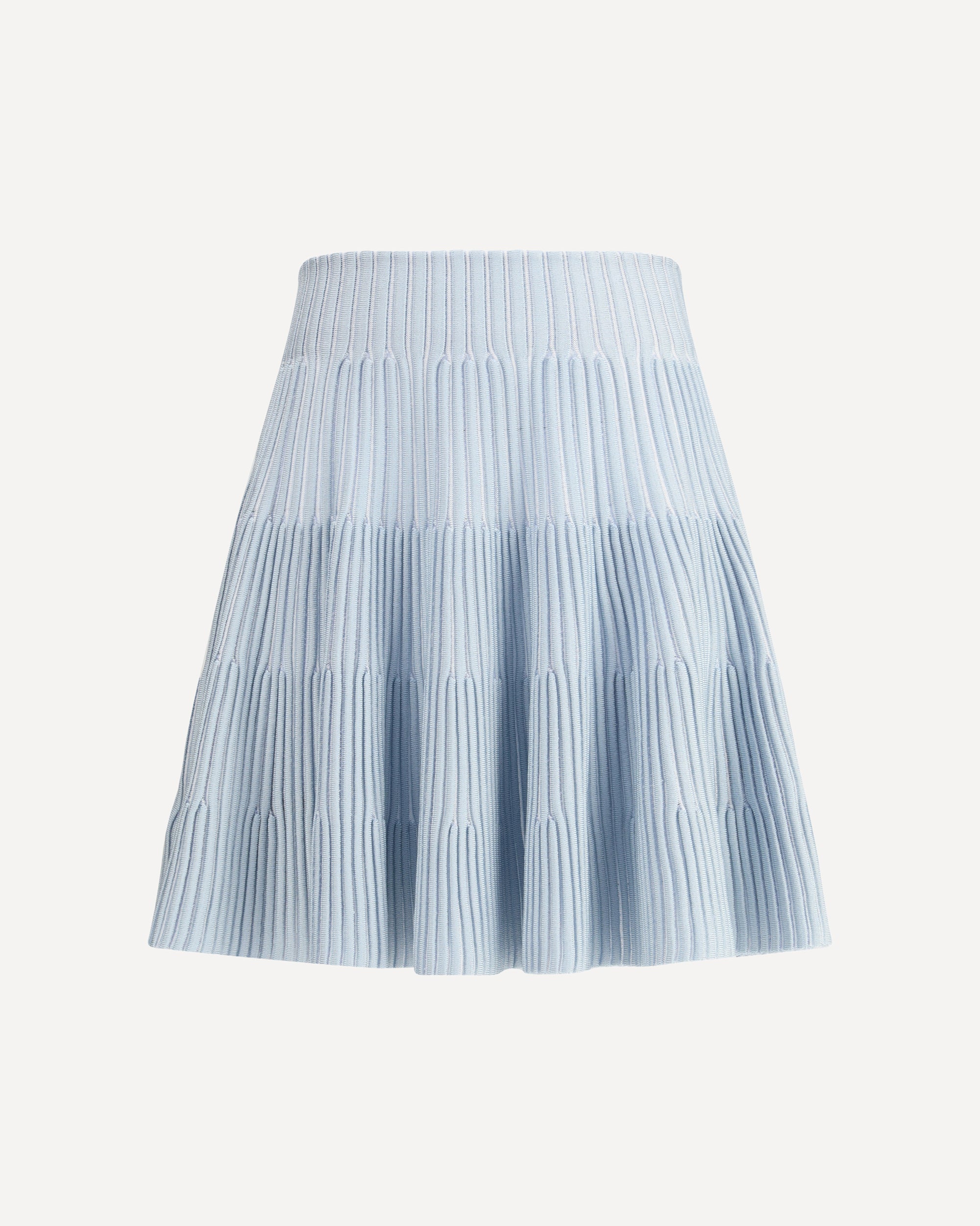 Balmain's knit Miniskirt is distinguished by the embossed workmanship that gives structure and character to the garment. Equipped with a reinforced belt, it features a back closure with an exposed gold-metal zipper, embellished with an engraved "Balmain Paris" slider. The short, slightly flared fit completes the design with a strong feminine touch.