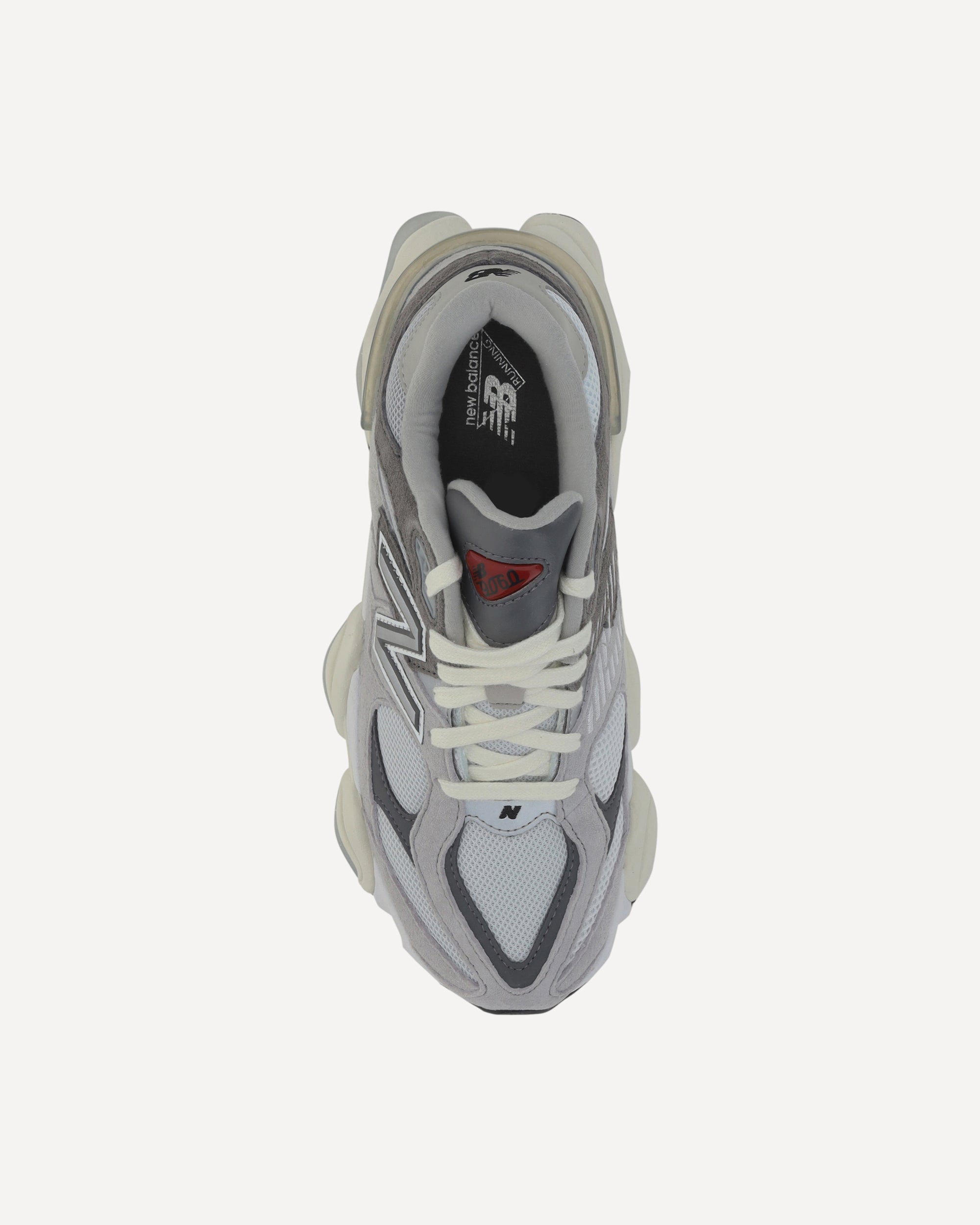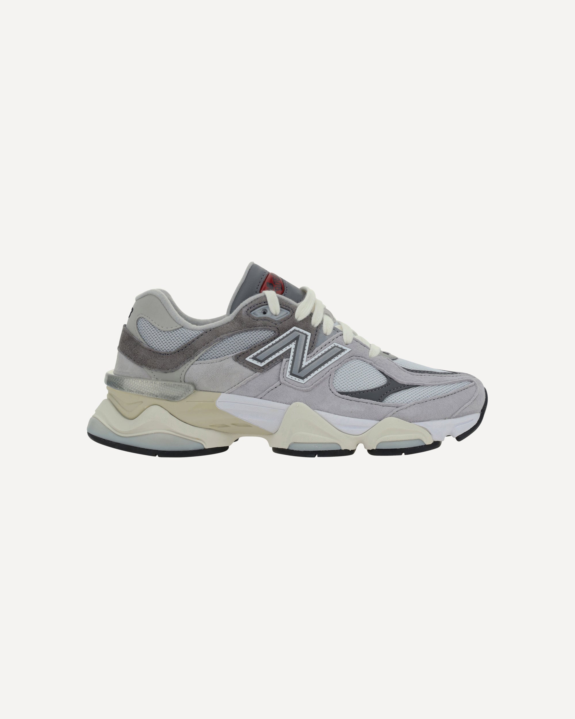 9060 Sneakers by New Balance, mesh upper with suede detailing, lace-up front closure, extended toe on front, raised and reinforced rubber sole, iconic contrasting brand monogram on side panels, contrasting logoed front tab.