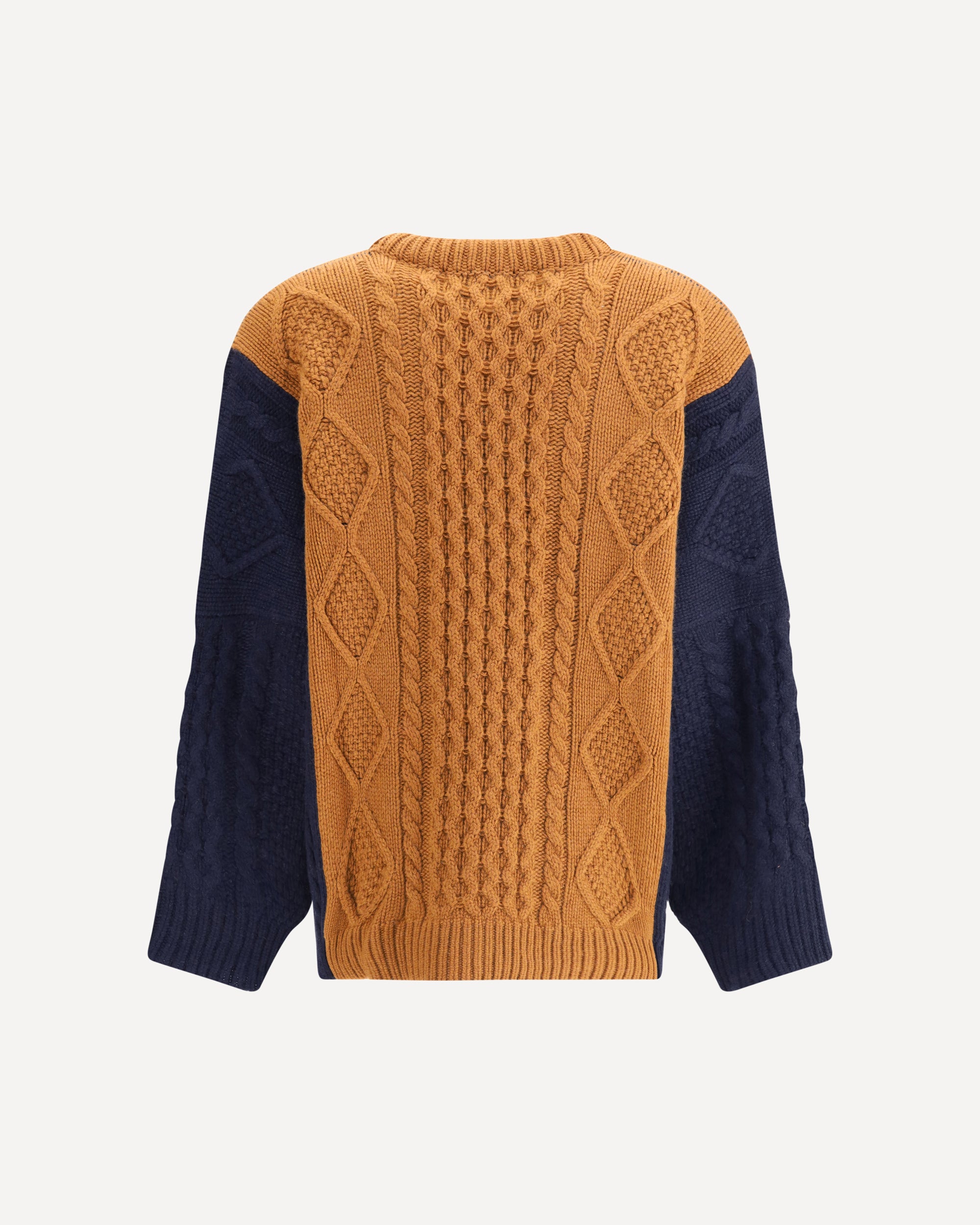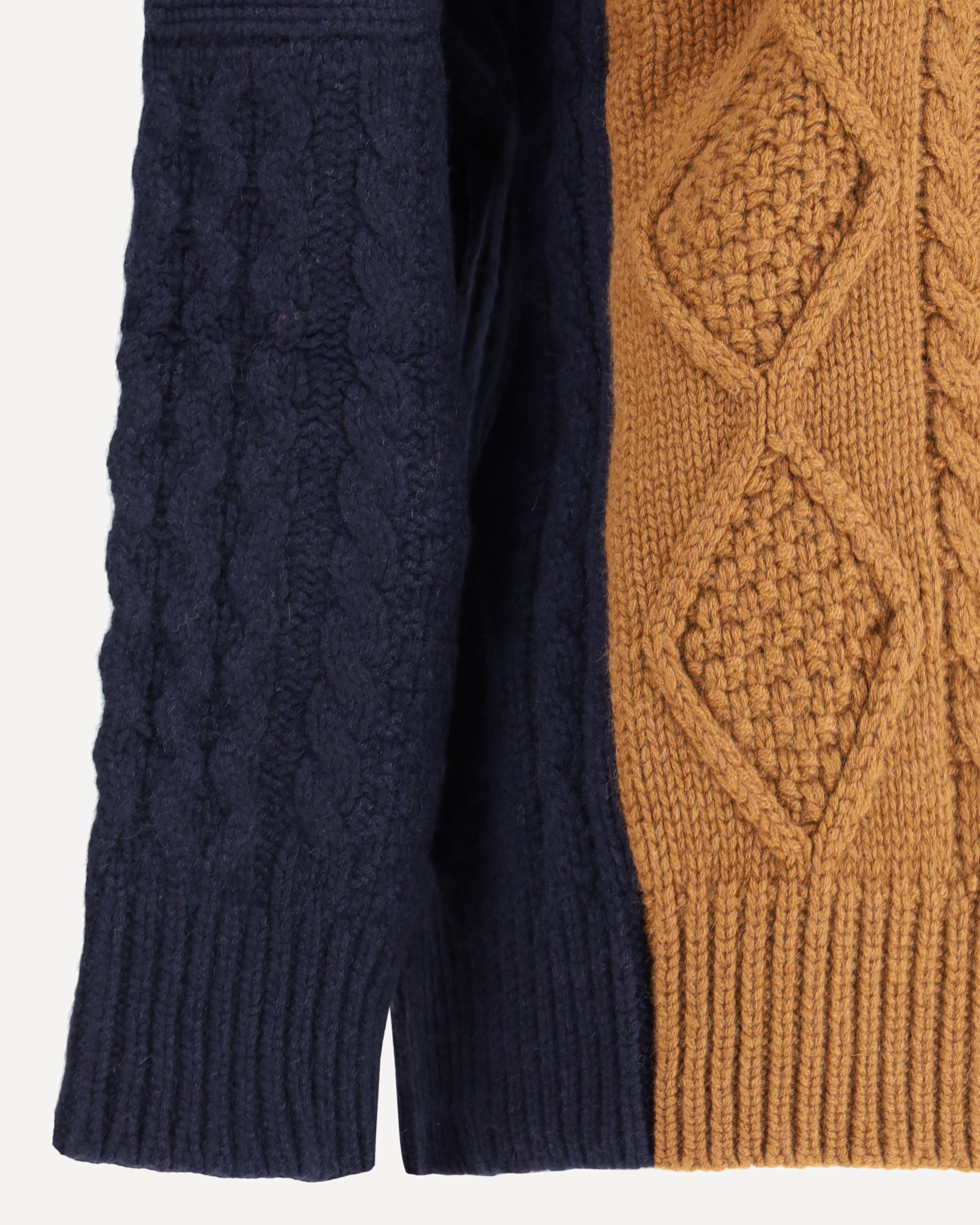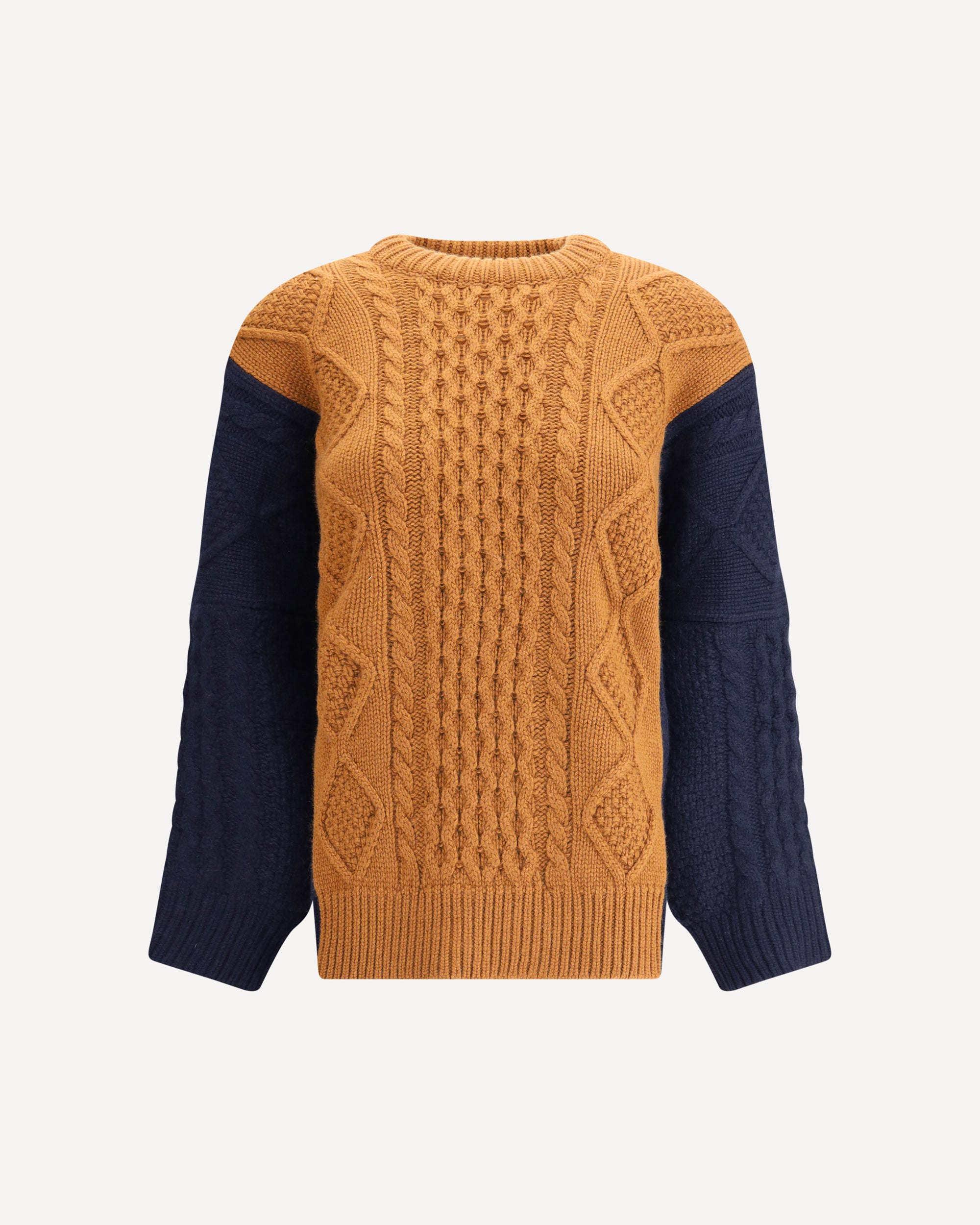 The Adelina cashmere Sweater by Ella combines sophistication and texture in a two-tone cable-knit design. Soft and enveloping, it's finished with a ribbed crewneck, hem, and cuffs, giving the garment structure and definition. An elegant and distinctive sweater, perfect for adding character to winter looks.