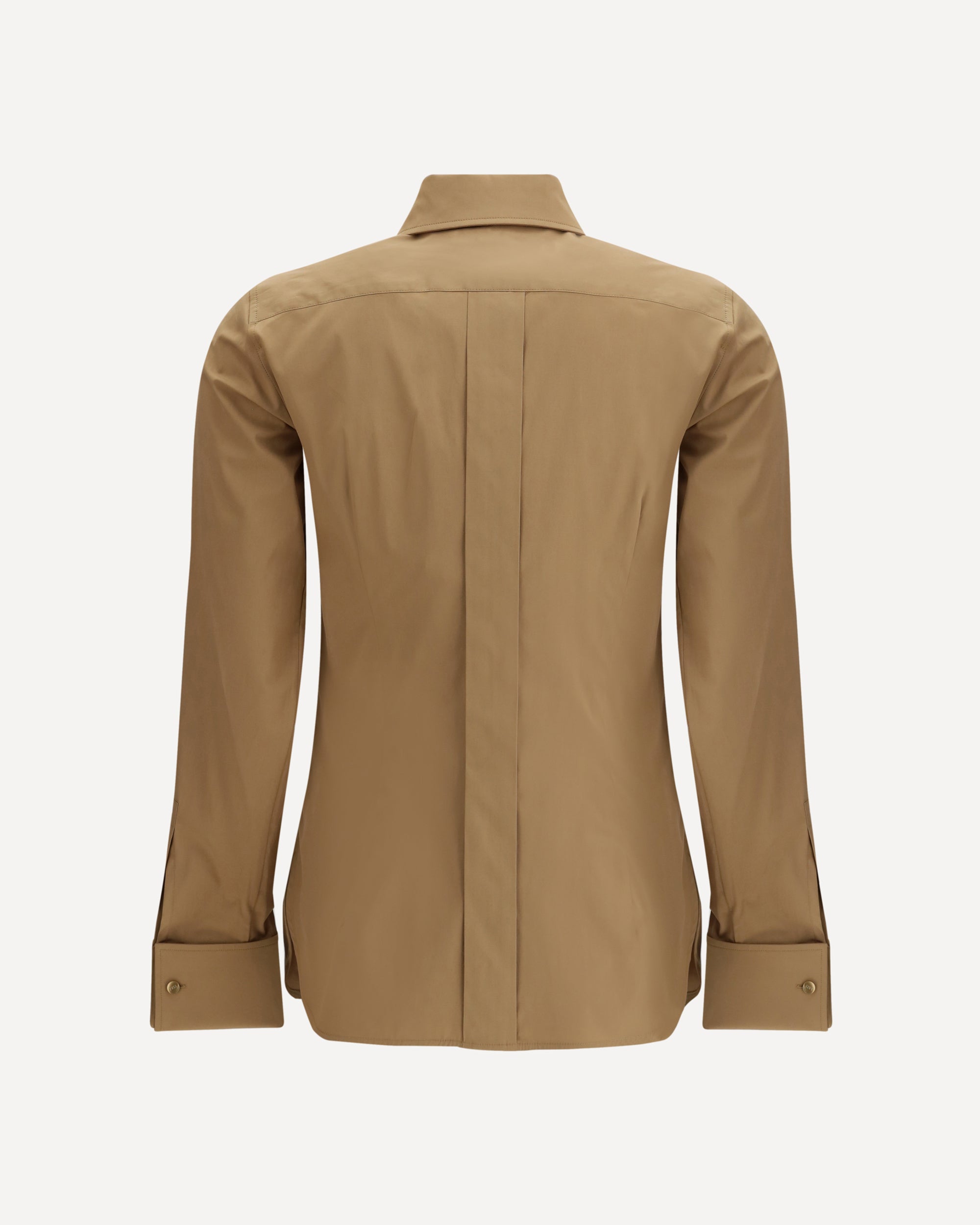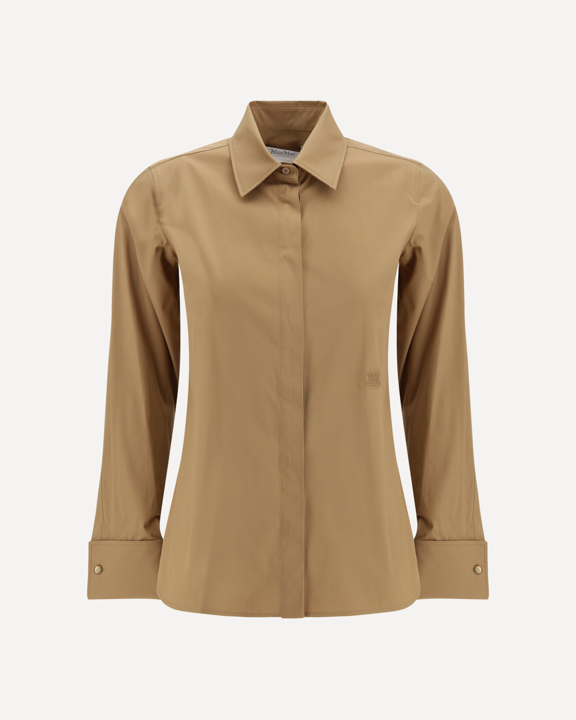 The Ala Cotton Shirt by Max Mara is an elegant and refined garment made from high-quality cotton. It features a classic collar that enhances its sophisticated design. The front closure with concealed buttons lends a clean, minimalist look. Matching cufflinks add a touch of class, while the iconic embroidered logo on the front underscores the brand's prestige. Side slits complete the design, providing greater freedom of movement and a modern touch.