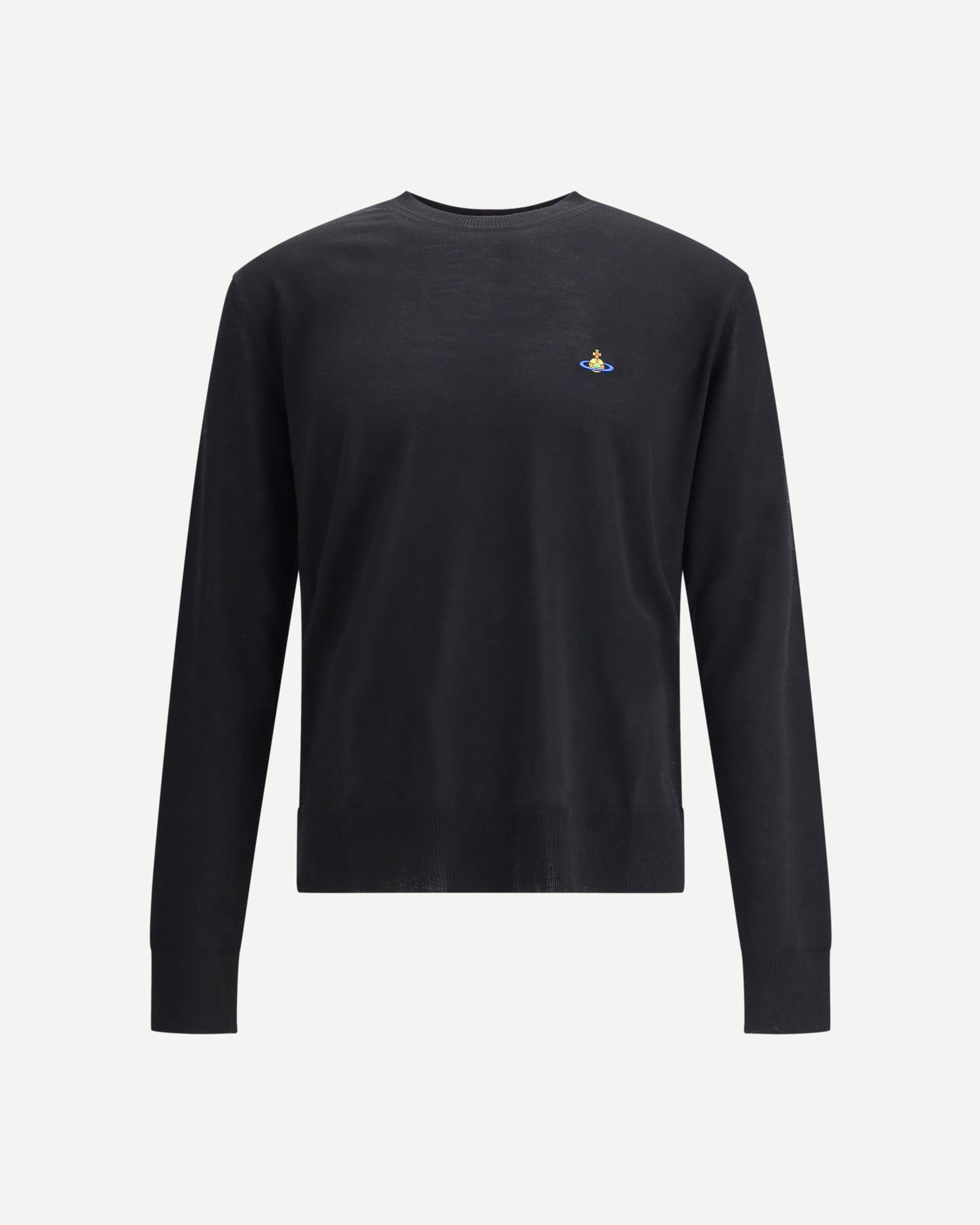 Vivienne Westwood's Alex wool Sweater combines iconic style and everyday comfort in a statement piece. Made from soft wool, it features a classic ribbed crew neck, as well as cuffs and hem, ensuring a comfortable and defined fit. The Orb logo embroidered on the front signs the design with a distinctive and unmistakable touch, typical of the Maison's creative vision.