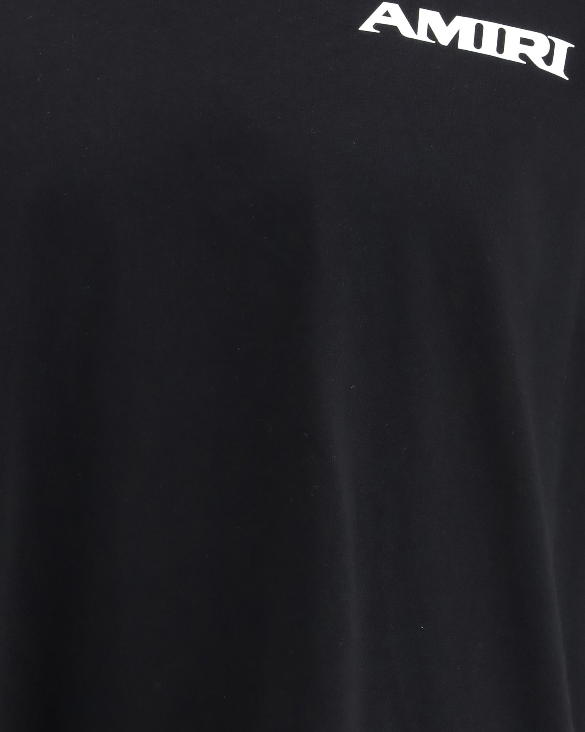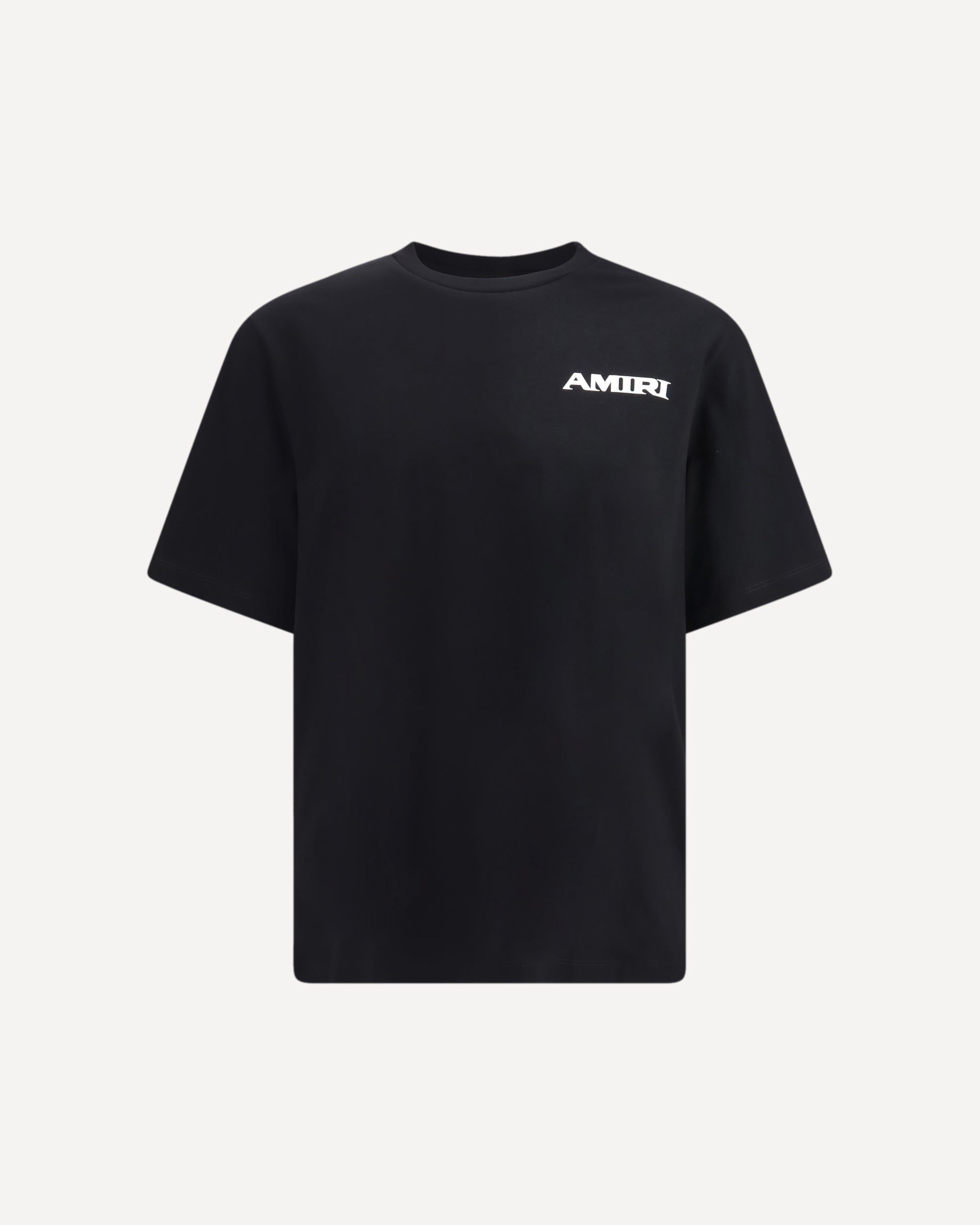 The Sport T-shirt by Amiri brings refined simplicity into focus, using a small logo placed on the upper right as a subtle mark of character. A classic round neckline shapes its clean silhouette in pure cotton, while the understated construction reflects the house’s commitment to elevated craftsmanship and contemporary ease. The piece embodies a straightforward yet polished expression of Amiri’s signature aesthetic.