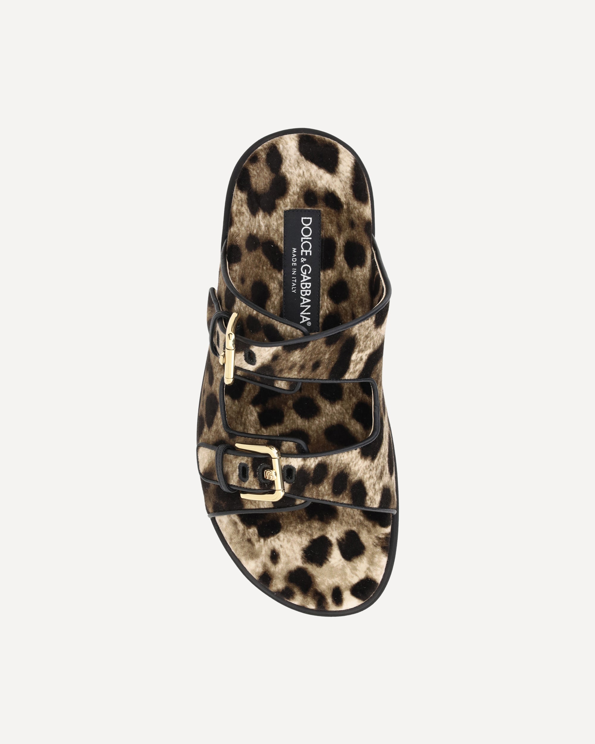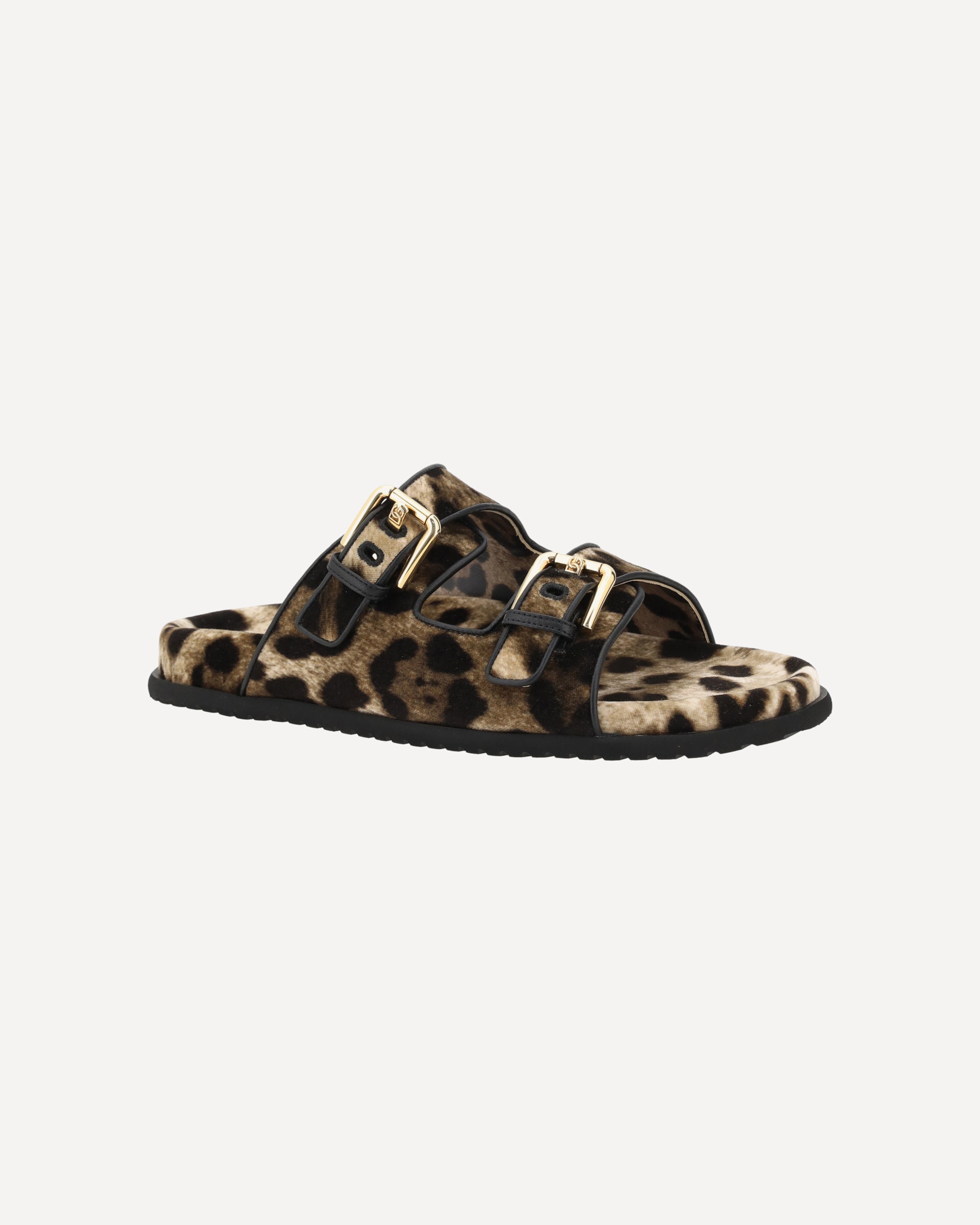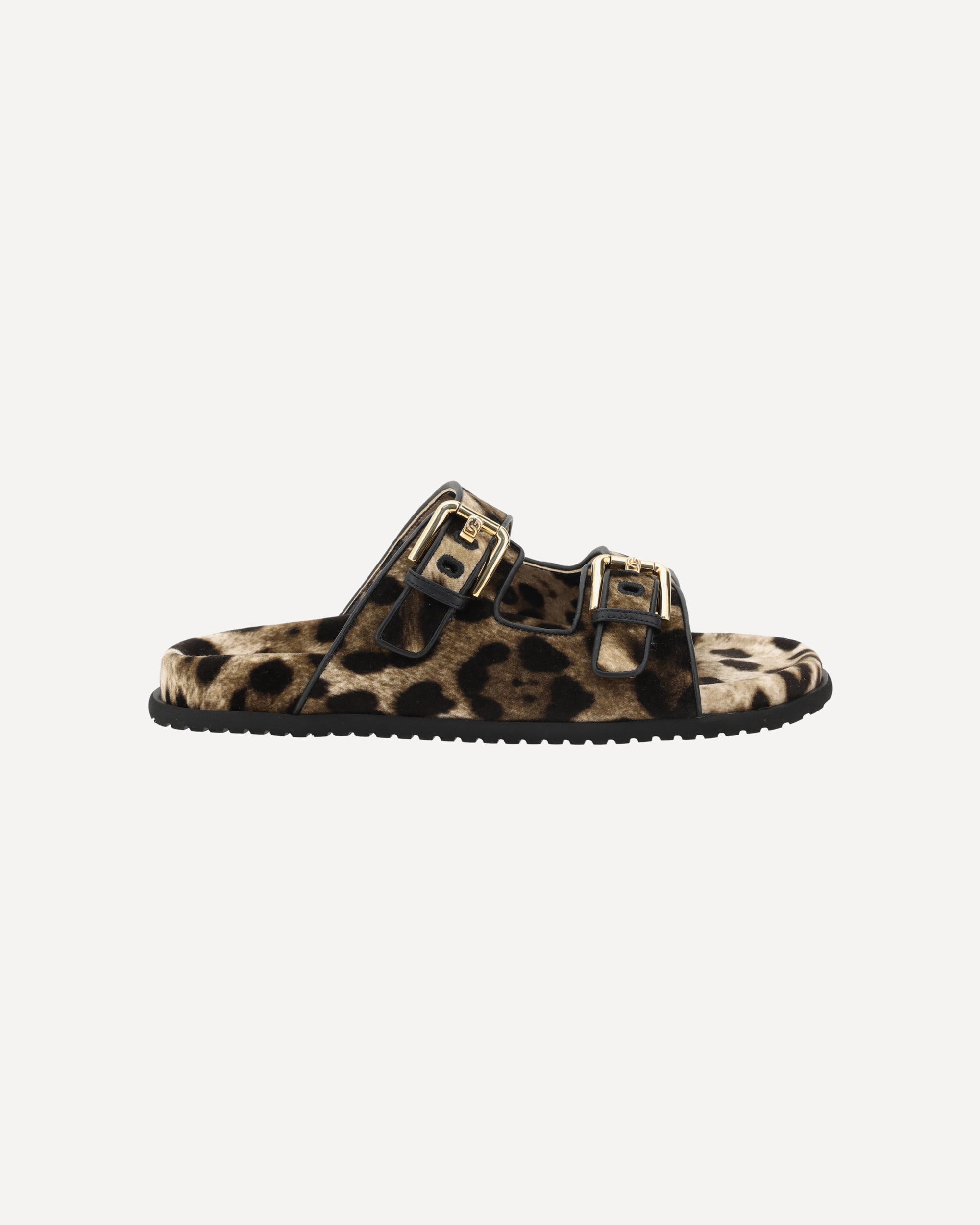Dolce&Gabbana's Sandals feature a double strap with an adjustable buckle on the front, which ensures a personalized and secure fit. The animal pattern adds a bold and stylish touch, while the contoured footbed offers comfort during wear. The rubber outsole provides grip and durability, and the logoed insole completes the design with a distinctive brand detail. A pair of sandals that combine style and functionality for a unique and fashionable look.