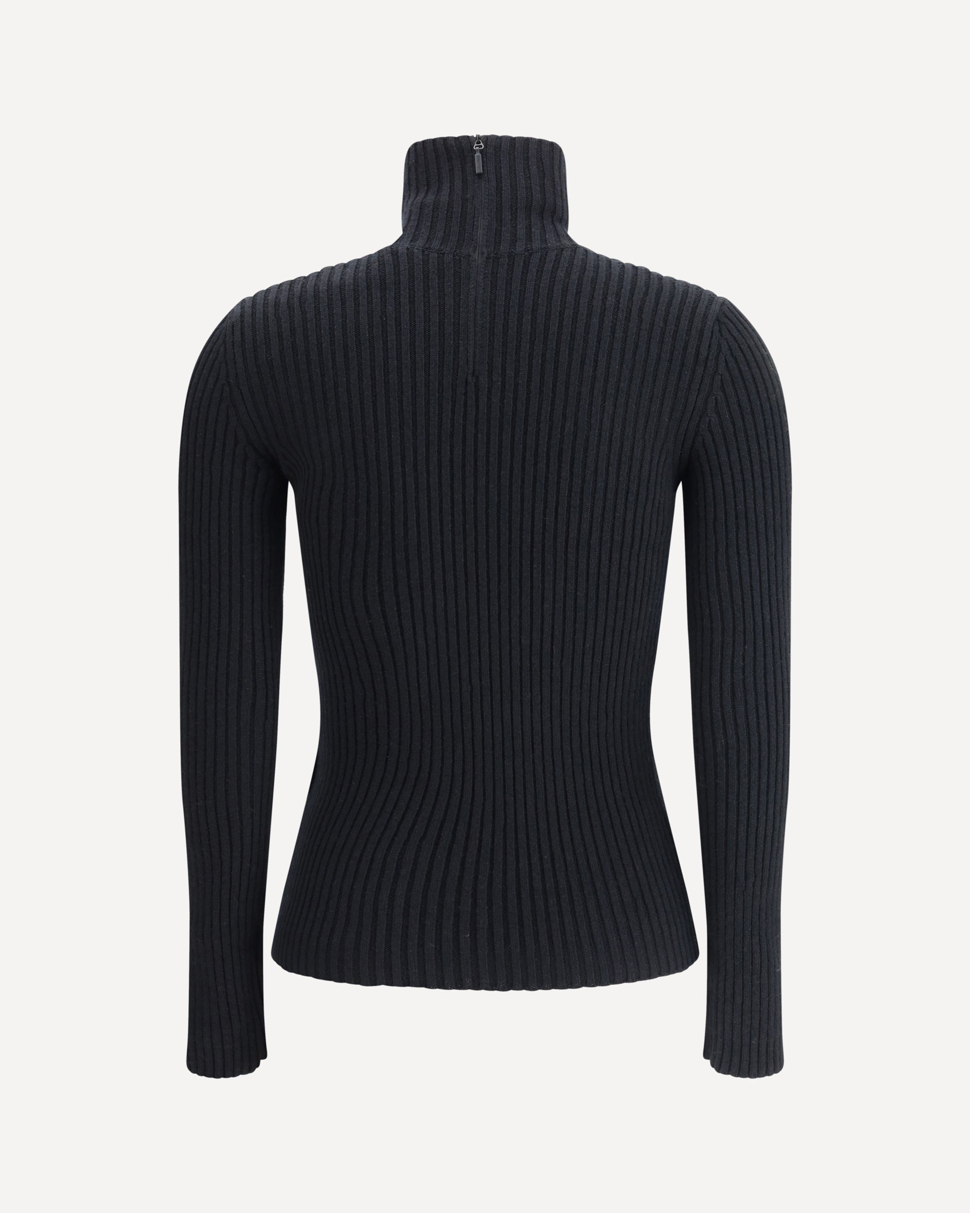 The Max Mara ribbed long-sleeve T-shirt is a refined essential, perfect for layering or wearing on its own. Crafted from soft rib-knit fabric, it follows the body’s lines with a slim fit that enhances the silhouette. The high neckline adds a touch of elegance, making it a versatile piece that transitions seamlessly from casual looks to more sophisticated outfits.