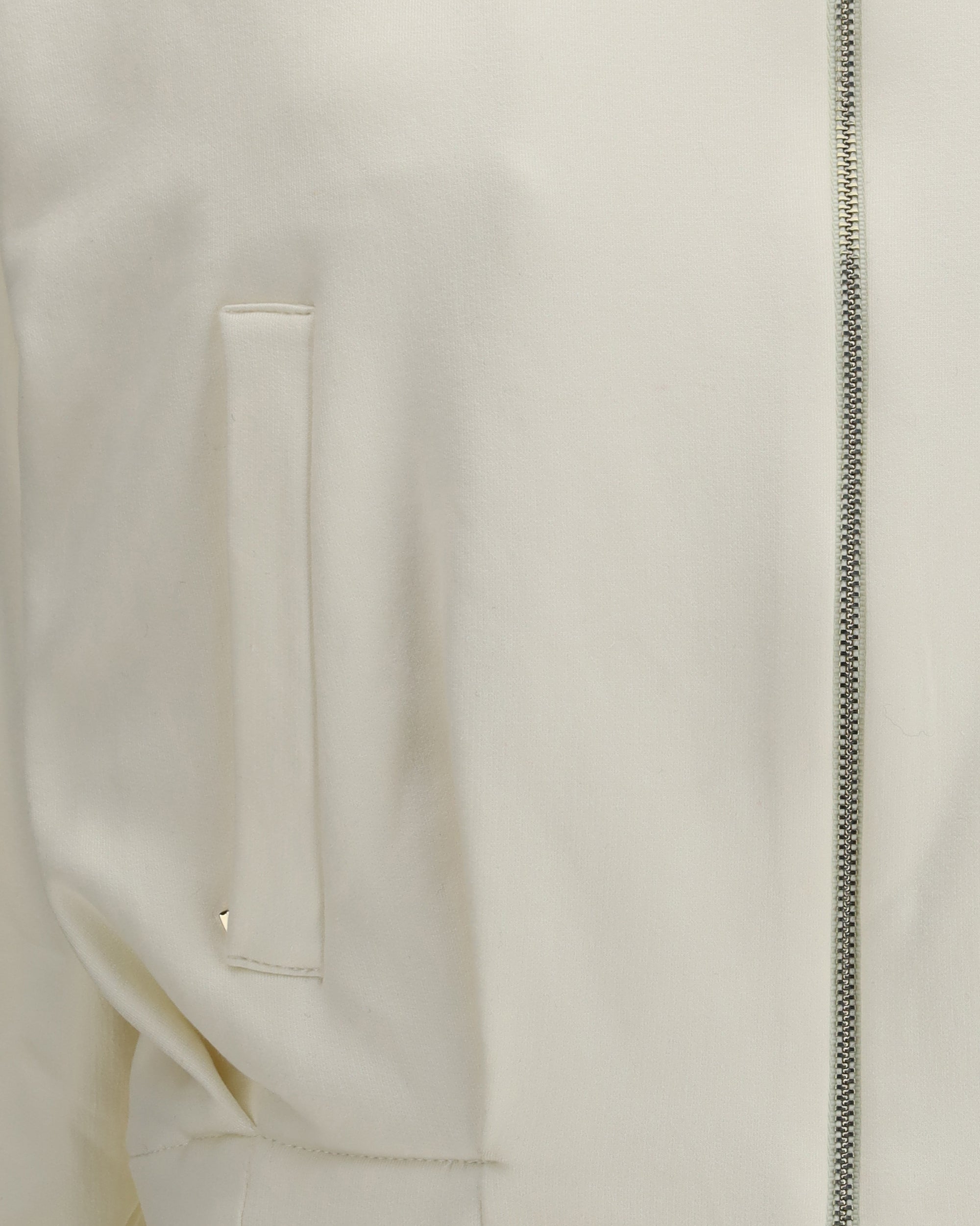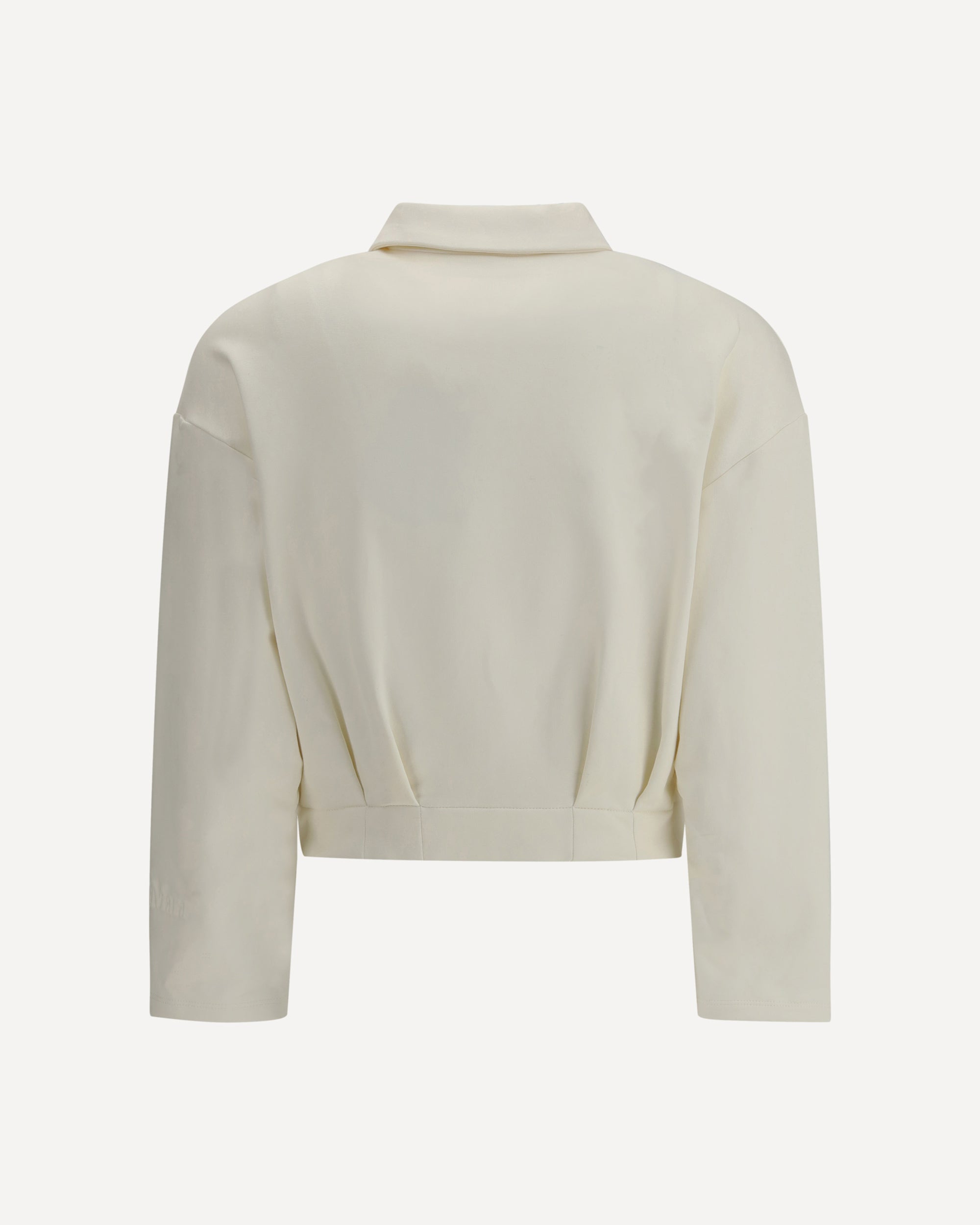 The Argenta cropped Sweatshirt by Max Mara Pure redefines casualwear with a luxurious twist. Crafted from a silk and cotton blend, it boasts a soft line with dropped shoulders and long sleeves for relaxed ease. A shirt-style collar and a two-way zip closure lend versatility, while zippered welt pockets add a functional touch. The gathered detailing at the waist, front and back, creates subtle volume, contrasted by the embossed Max Mara logo on the left sleeve—a refined signature of the house.
