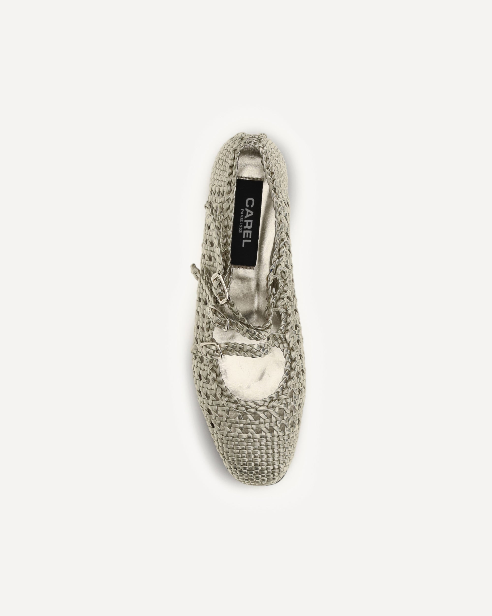 The Ariana Ballerinas by Carel Paris embody Parisian elegance with a retro, refined touch. Made of woven and metallic leather, they offer ideal comfort thanks to the 2 cm trotter heel, perfect for everyday wear. The three adjustable straps hug the arch of the foot, adapting harmoniously to every foot shape and ensuring a stable and feminine fit.