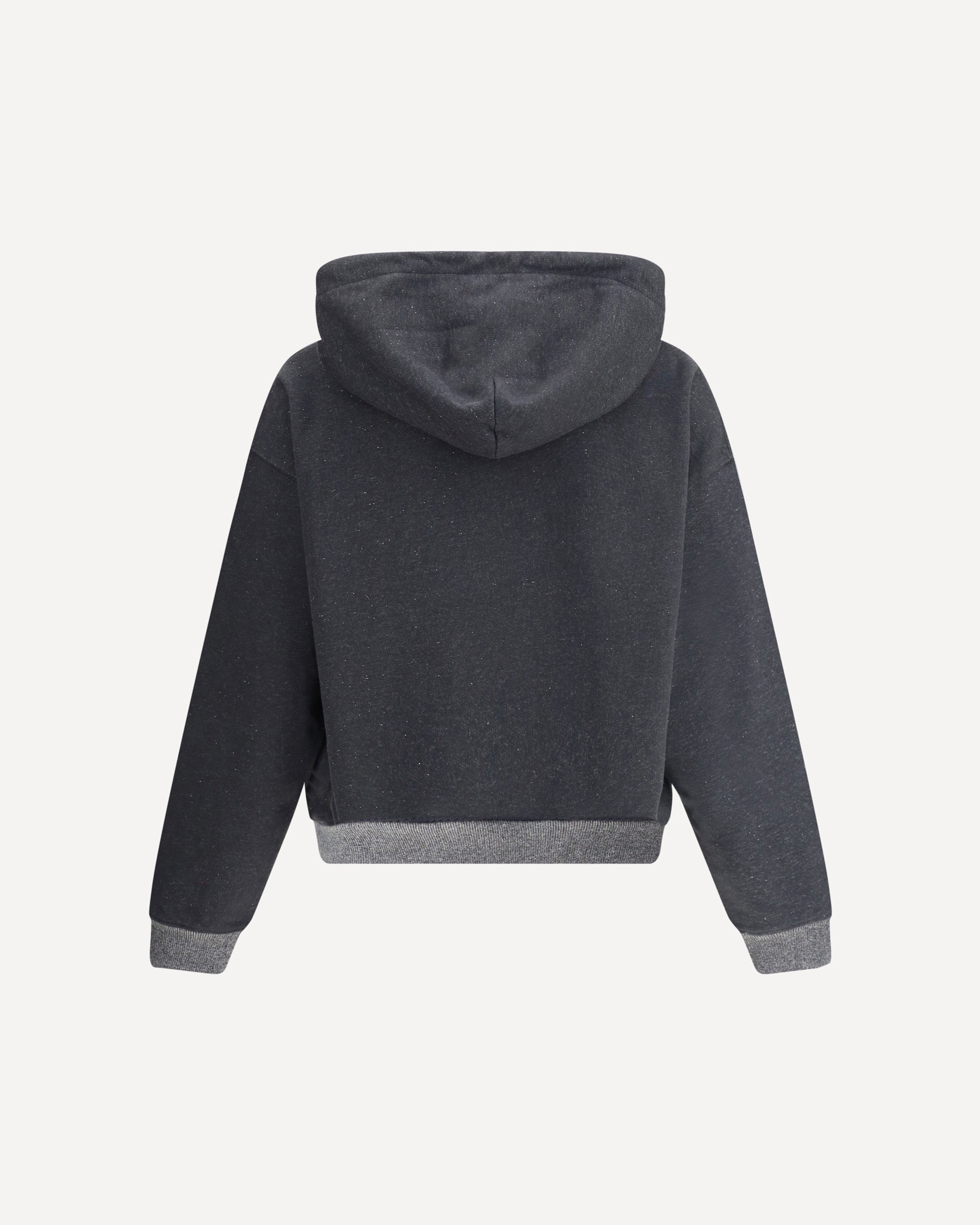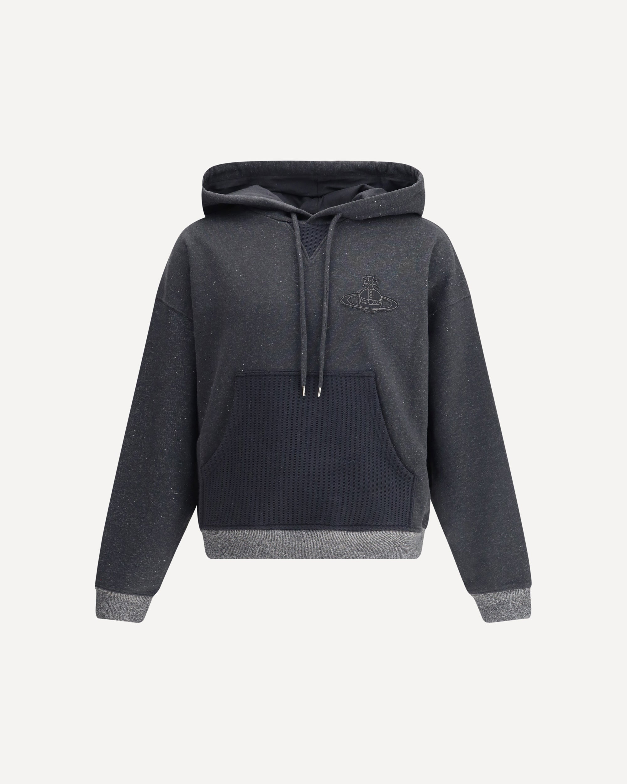 Vivienne Westwood's Ashton Hoodie combines contemporary style with iconic details. Featuring an adjustable drawstring hood and a practical front kangaroo pocket, it is distinguished by the Orbit logo embroidered on the front, the distinctive symbol of the Maison. Perfect for those seeking comfort without sacrificing a touch of personality.