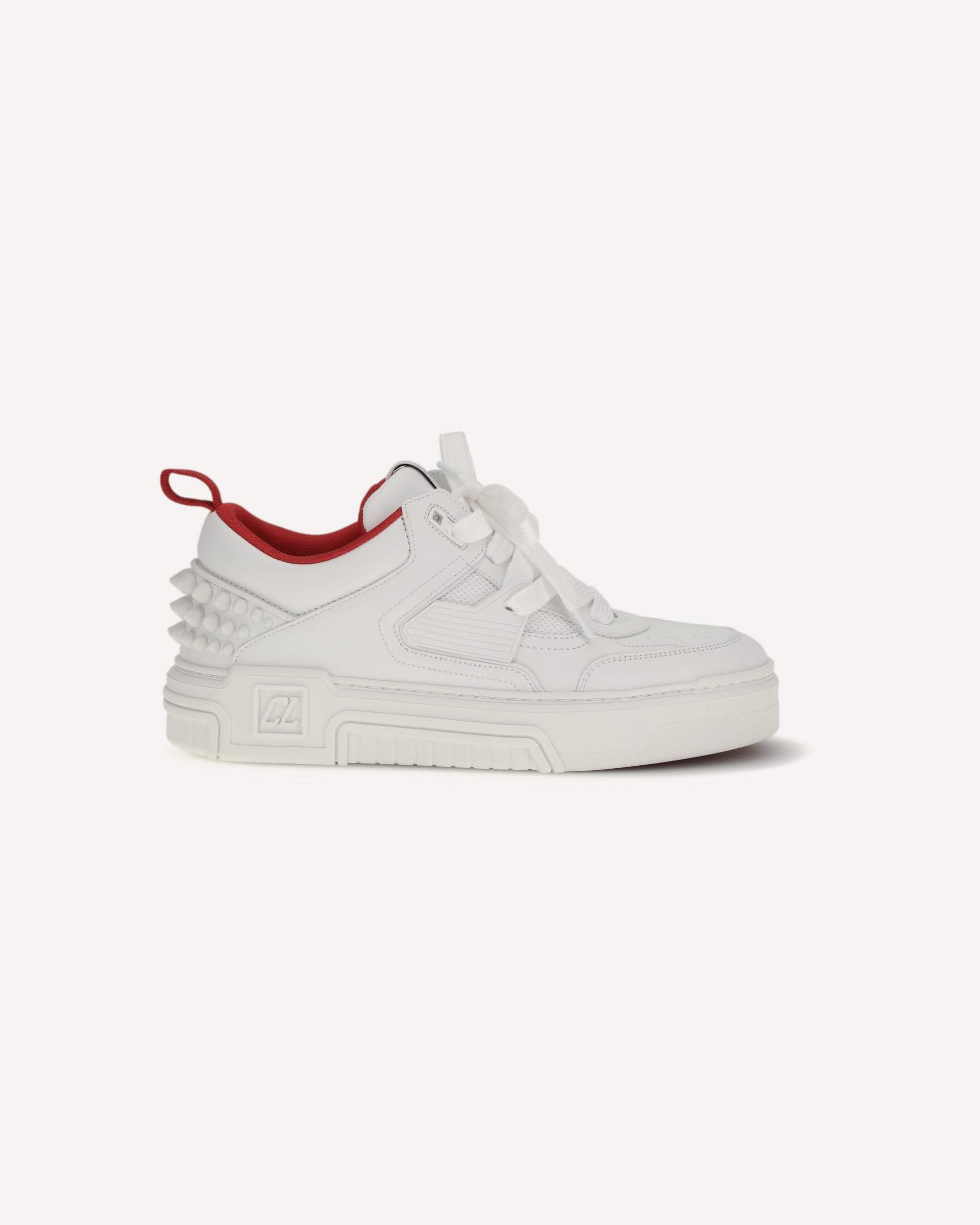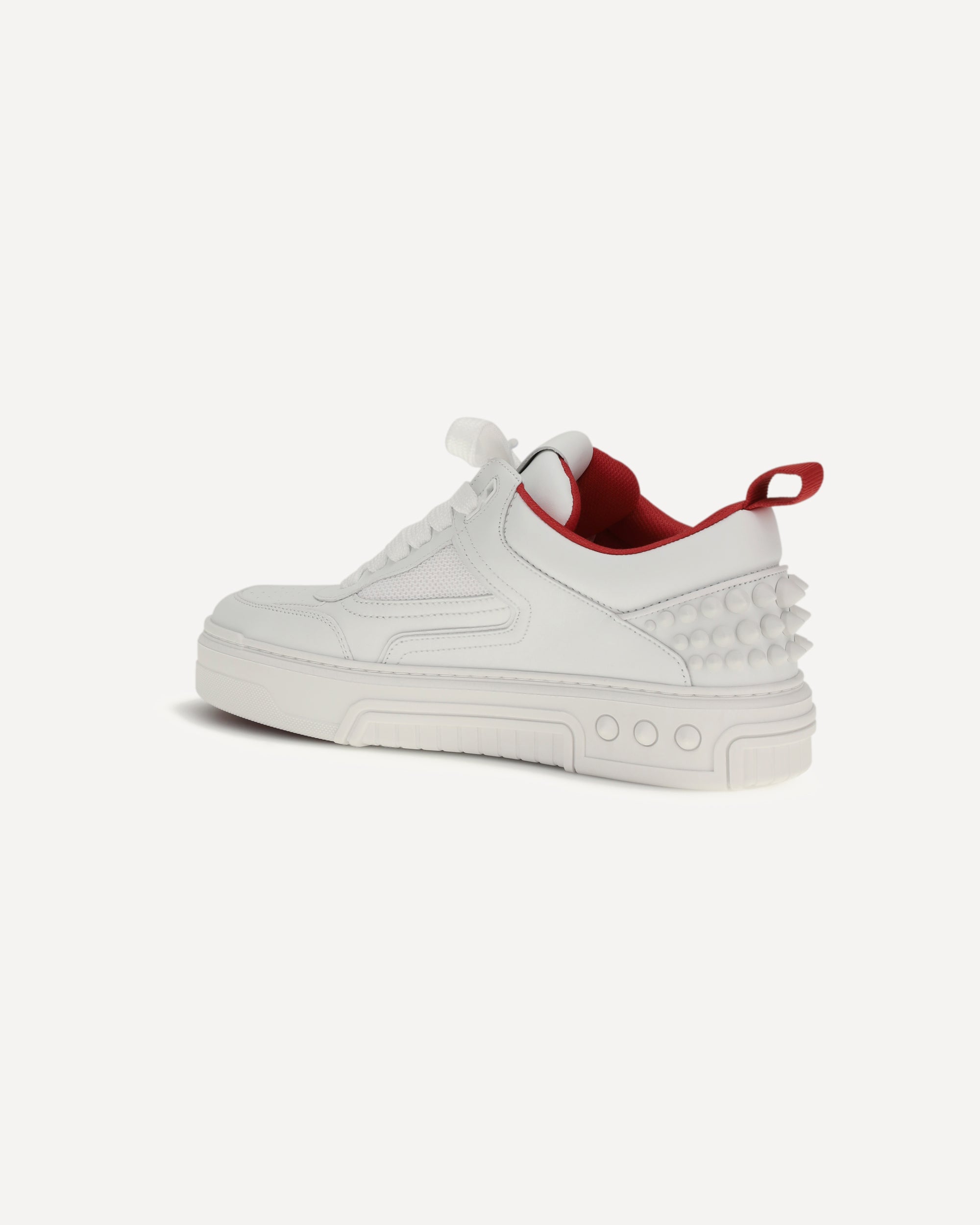 The Astroloubi Sneakers by Christian Louboutin combine comfort and iconic style in a bold, contemporary design. Featuring a lace-up closure and paneled design, these sneakers stand out for their iconic red sole, the brand's distinctive symbol. The pull tab on the heel and metal studs on the back add a rock-chic touch, while the logo patch on the tongue and perforations on the toe complete the look with unique and sophisticated details. Perfect for those looking for a mix of luxury and practicality in a single pair of shoes.