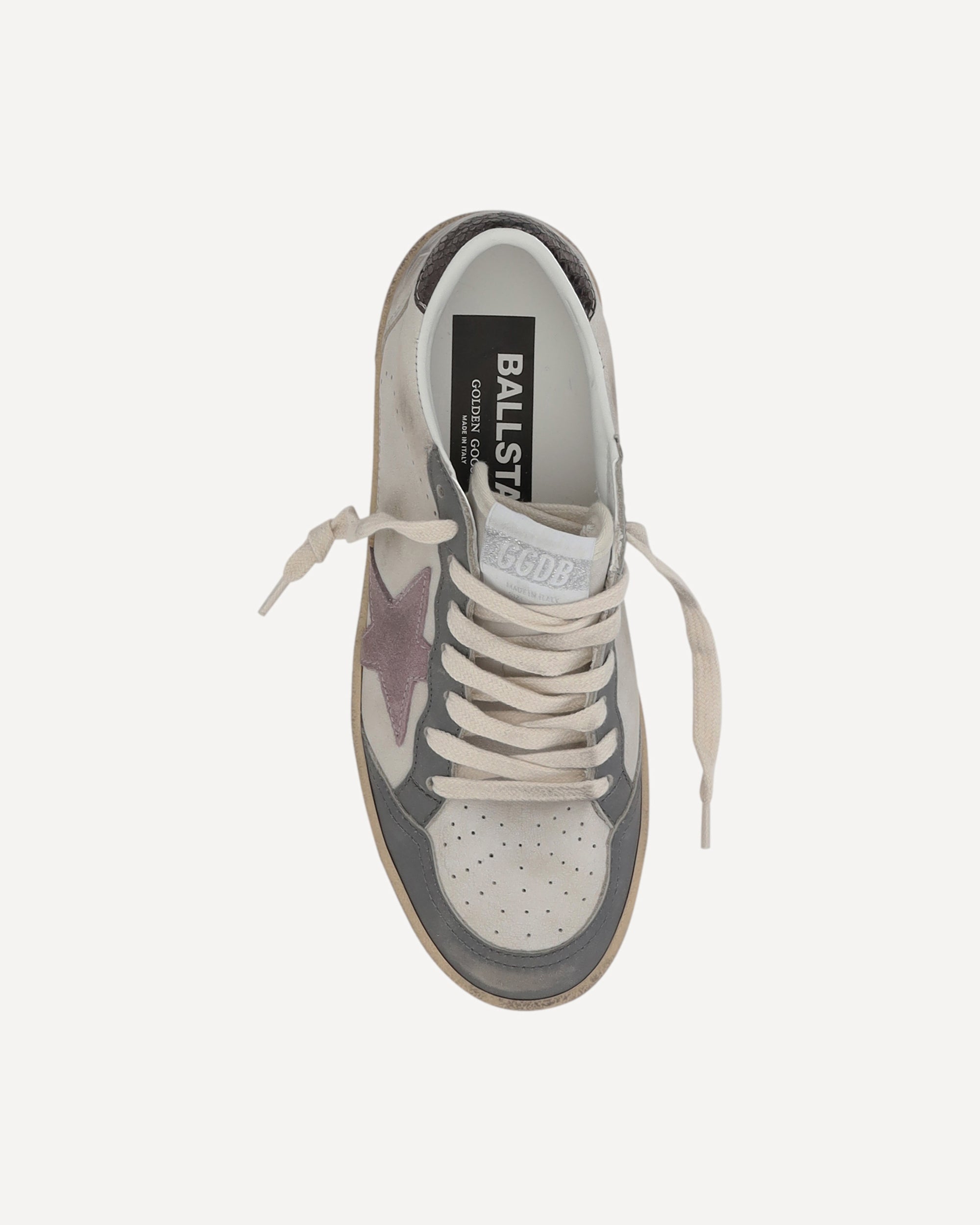 Ball Star leather sneakers by Golden Goose combine comfort and urban style. The lace-up front closure and round toe ensure a practical and comfortable fit, while the flat sole ensures stability. The iconic star on outer side panel and the press-on logo on the same panel add a distinctive touch. The front tongue features the iconic contrasting embroidered monogram, while suede inserts complete the design with an added level of sophistication.