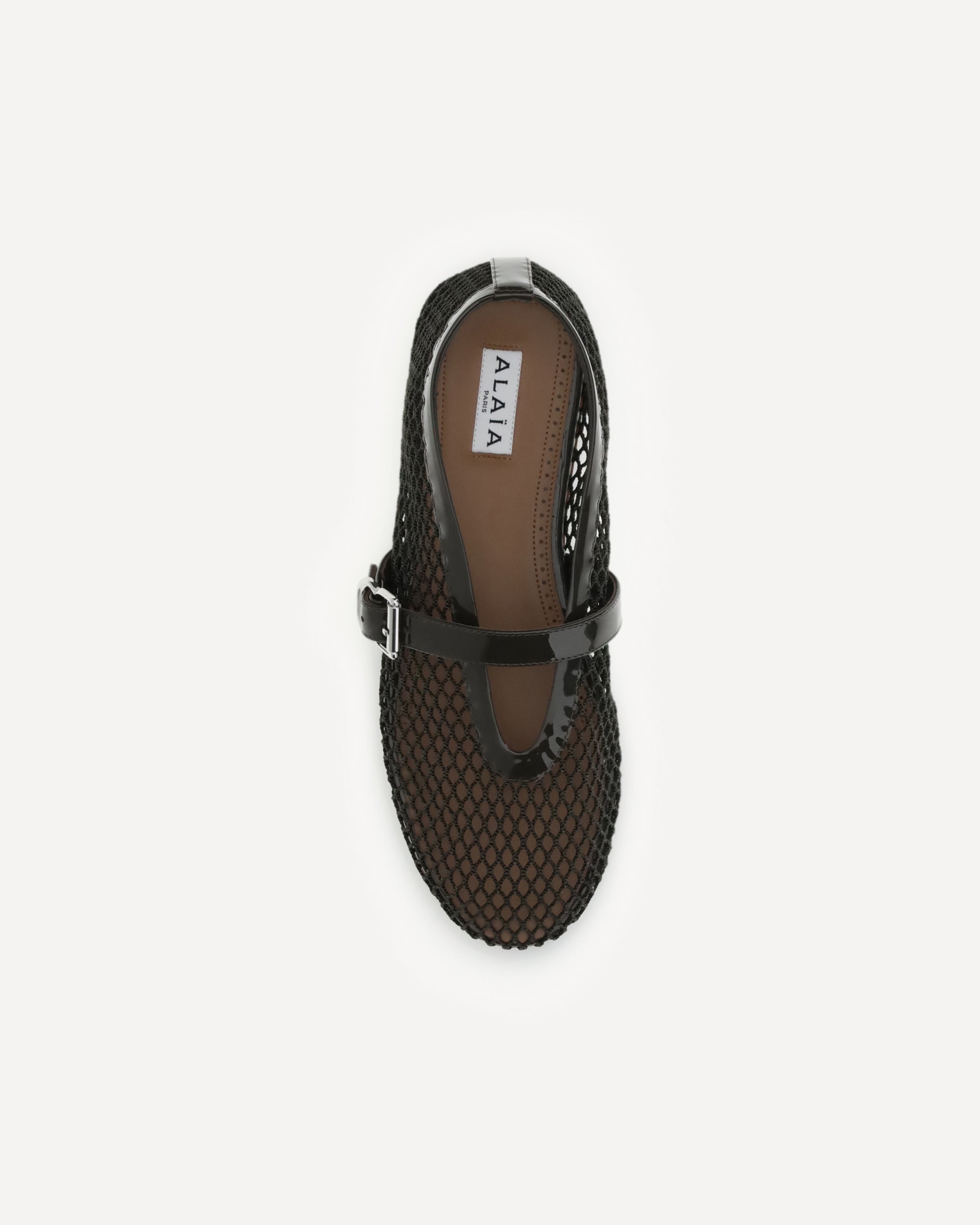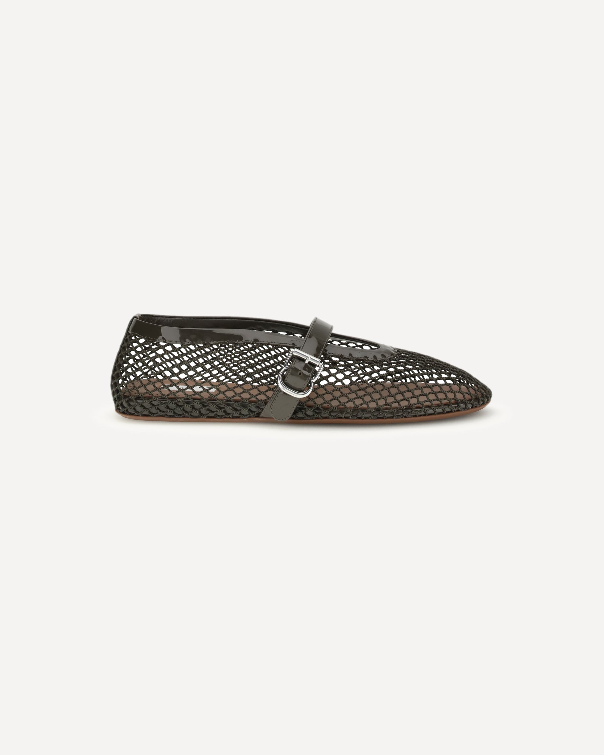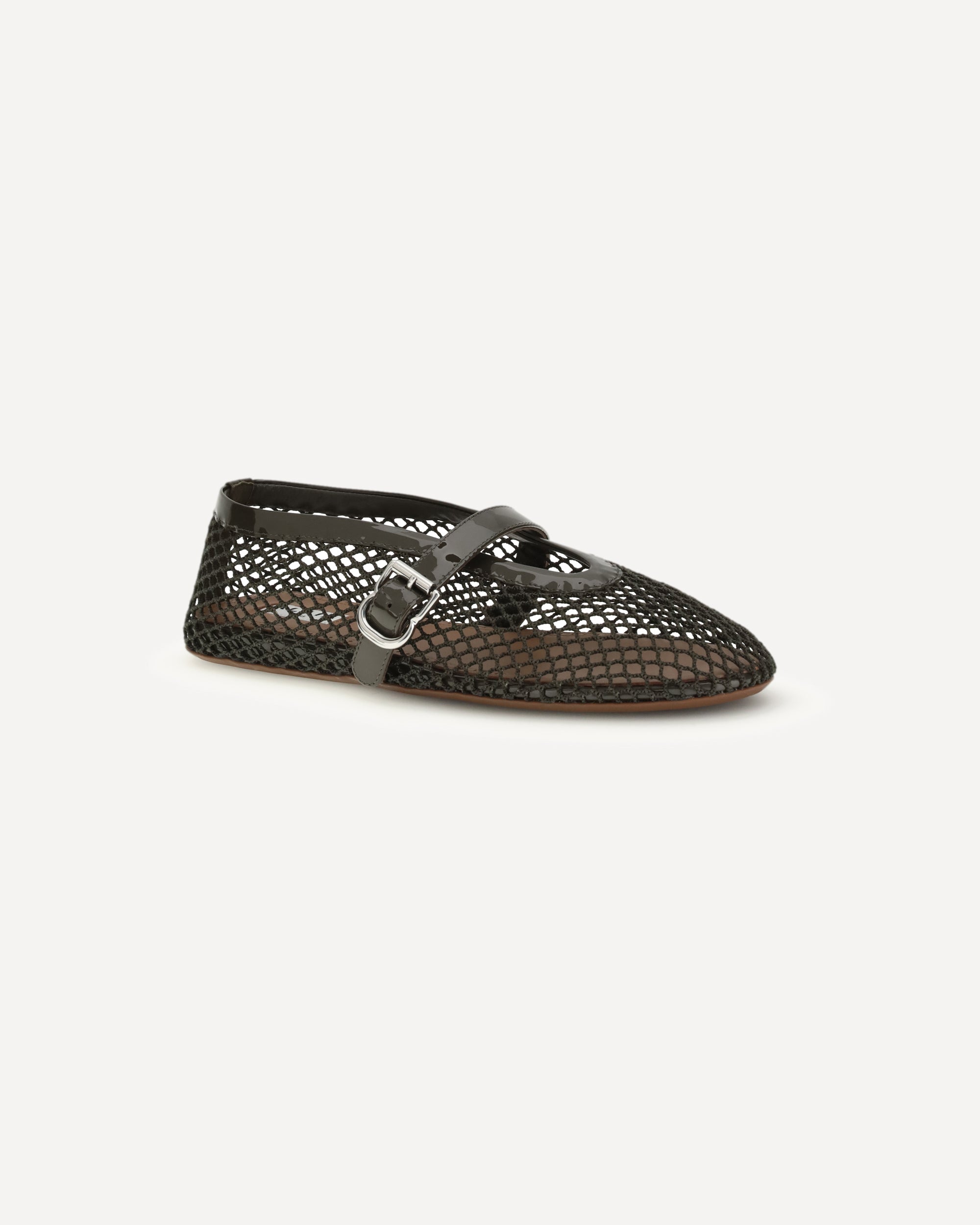 The leather Ballerinas by Alaïa represent a perfect balance between sophistication and modernity. Their mesh design gives lightness and a touch of refined transparency, while the adjustable buckle strap applied on the back ensures a perfect and comfortable fit. The elongated toe emphasizes the elegance of the silhouette, making these ballet flats ideal for both formal and more casual looks. Completing the model are the flat sole, designed for everyday comfort, and the logoed insole that testifies to the authenticity and attention to detail typical of the brand.
