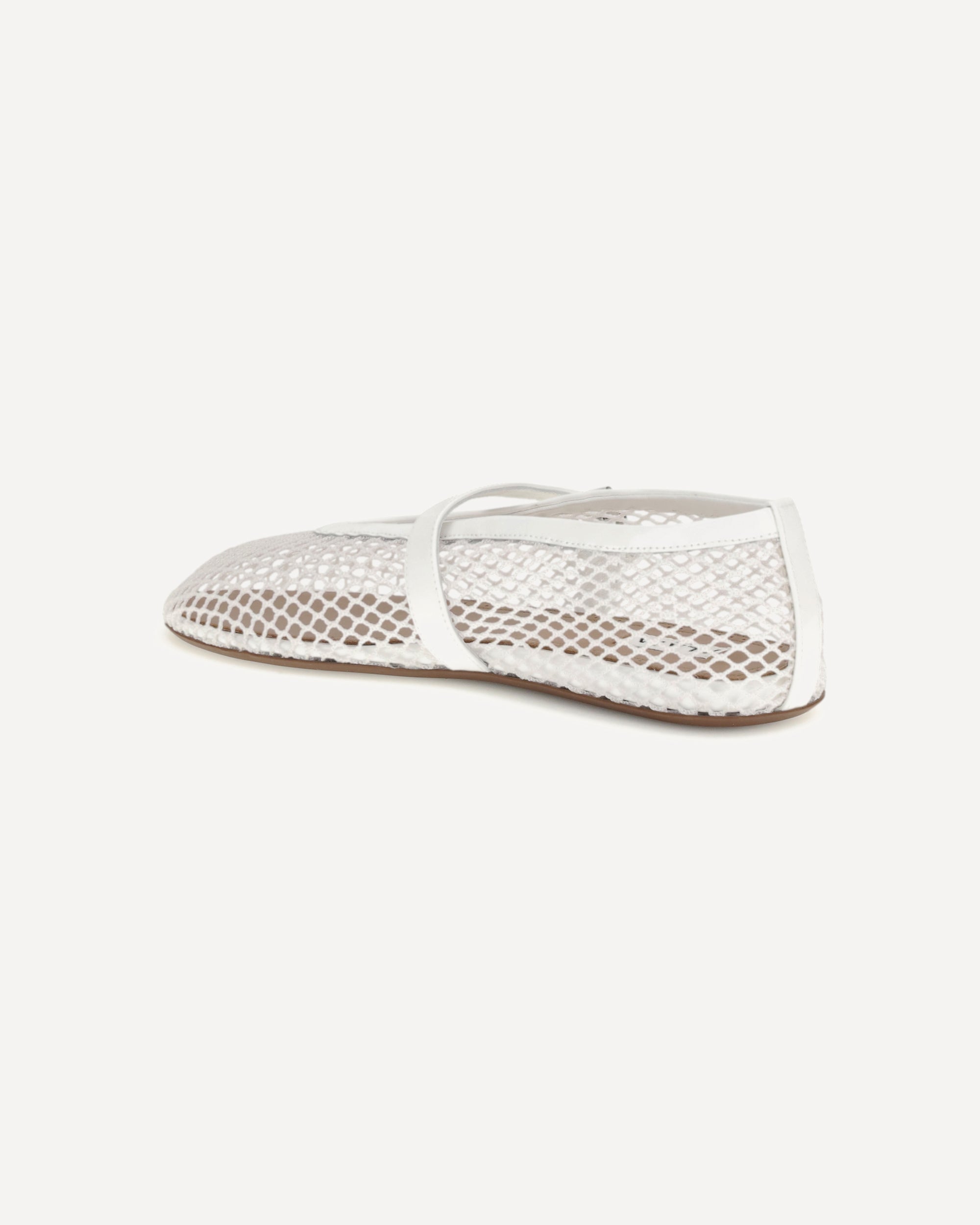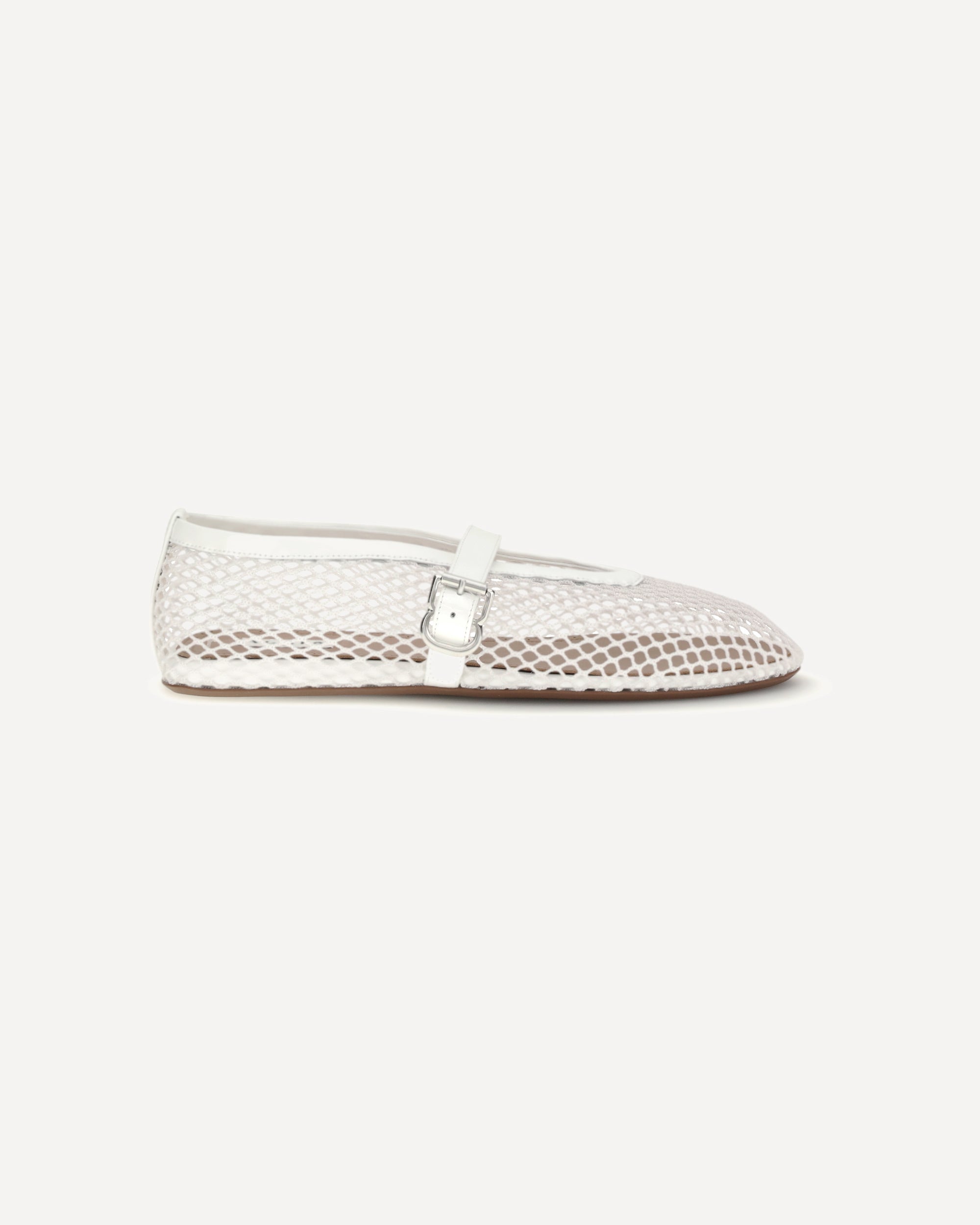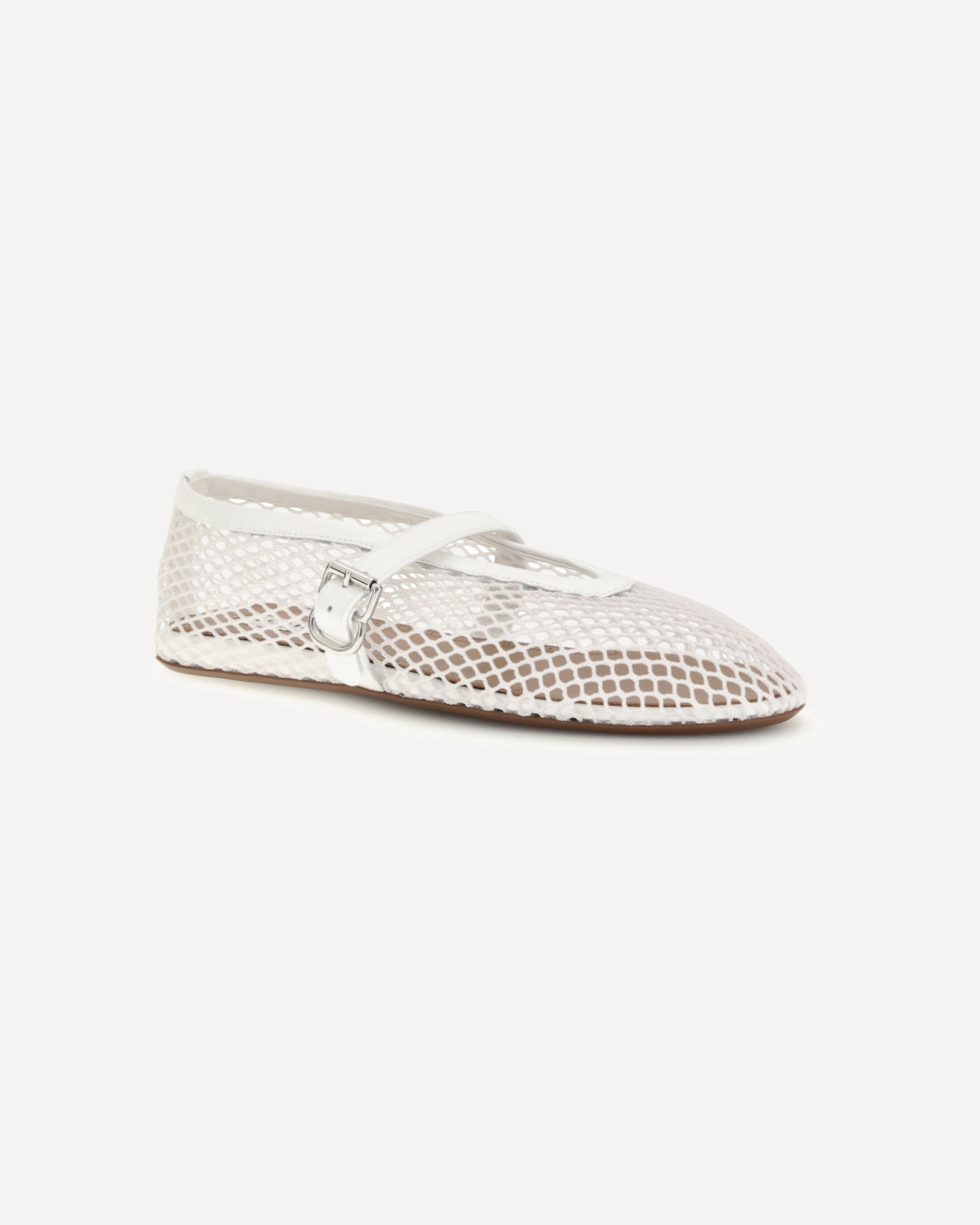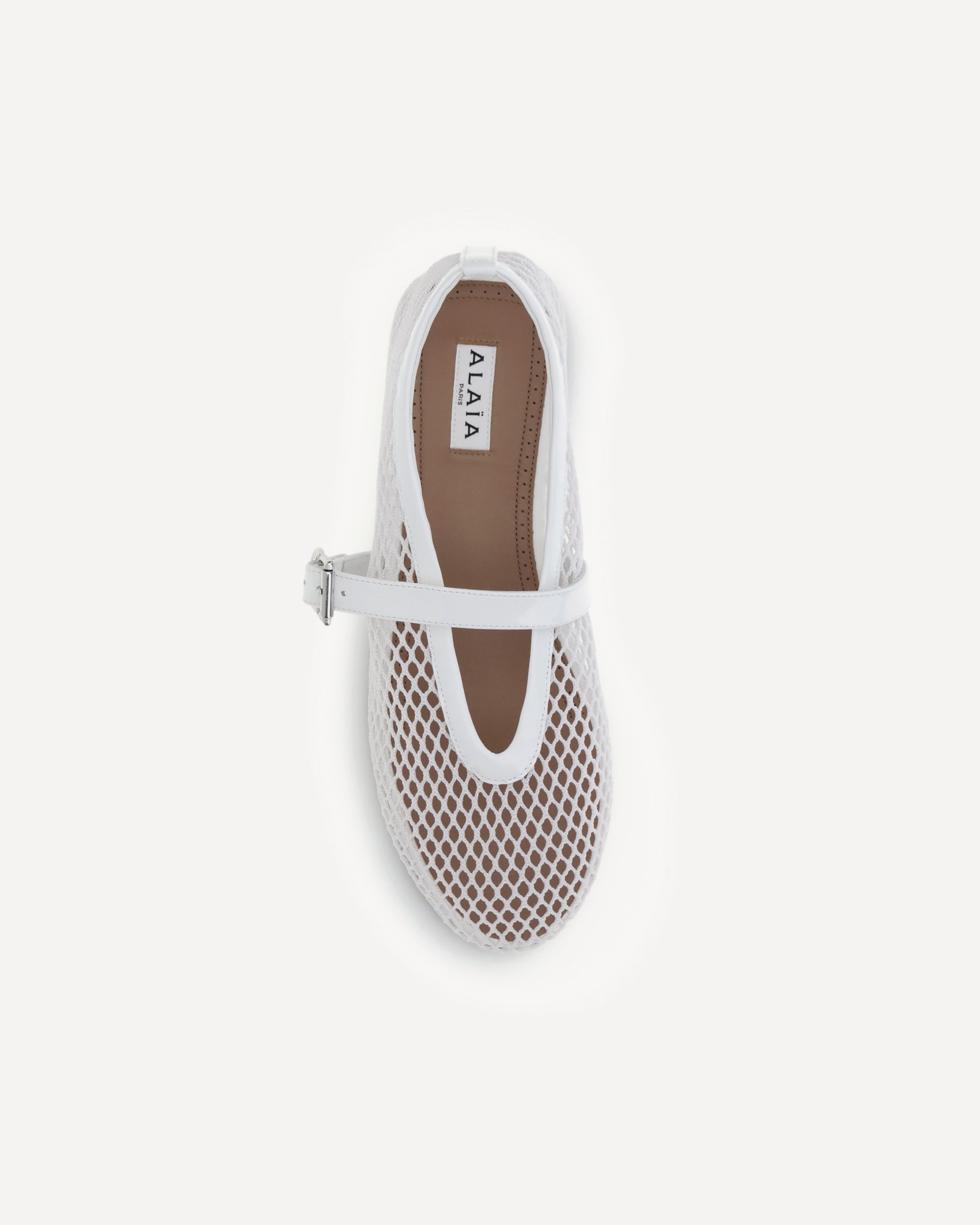 The leather Ballerinas by Alaïa represent a perfect balance between sophistication and modernity. Their mesh design gives lightness and a touch of refined transparency, while the adjustable buckle strap applied on the back ensures a perfect and comfortable fit. The elongated toe emphasizes the elegance of the silhouette, making these ballet flats ideal for both formal and more casual looks. Completing the model are the flat sole, designed for everyday comfort, and the logoed insole that testifies to the authenticity and attention to detail typical of the brand.