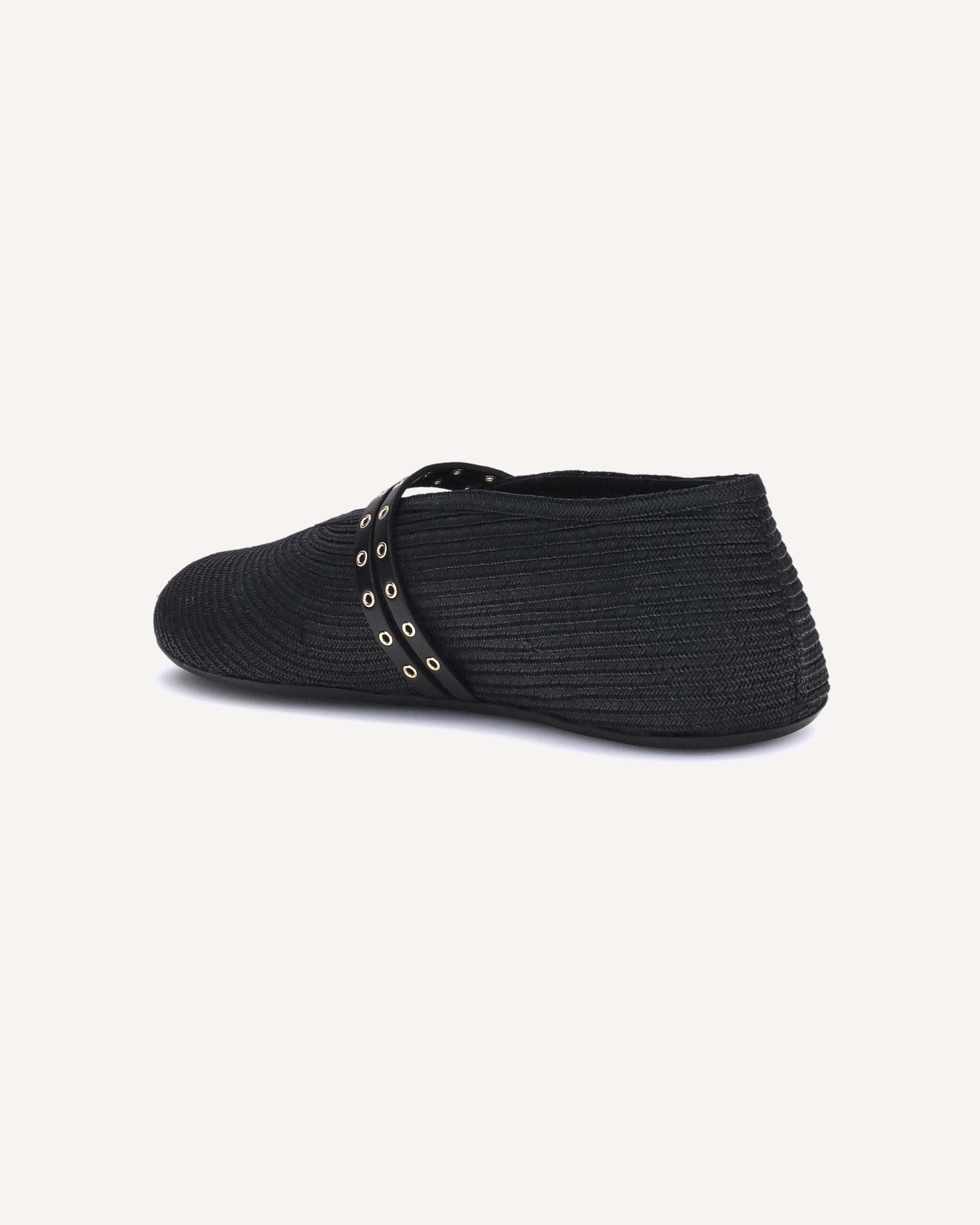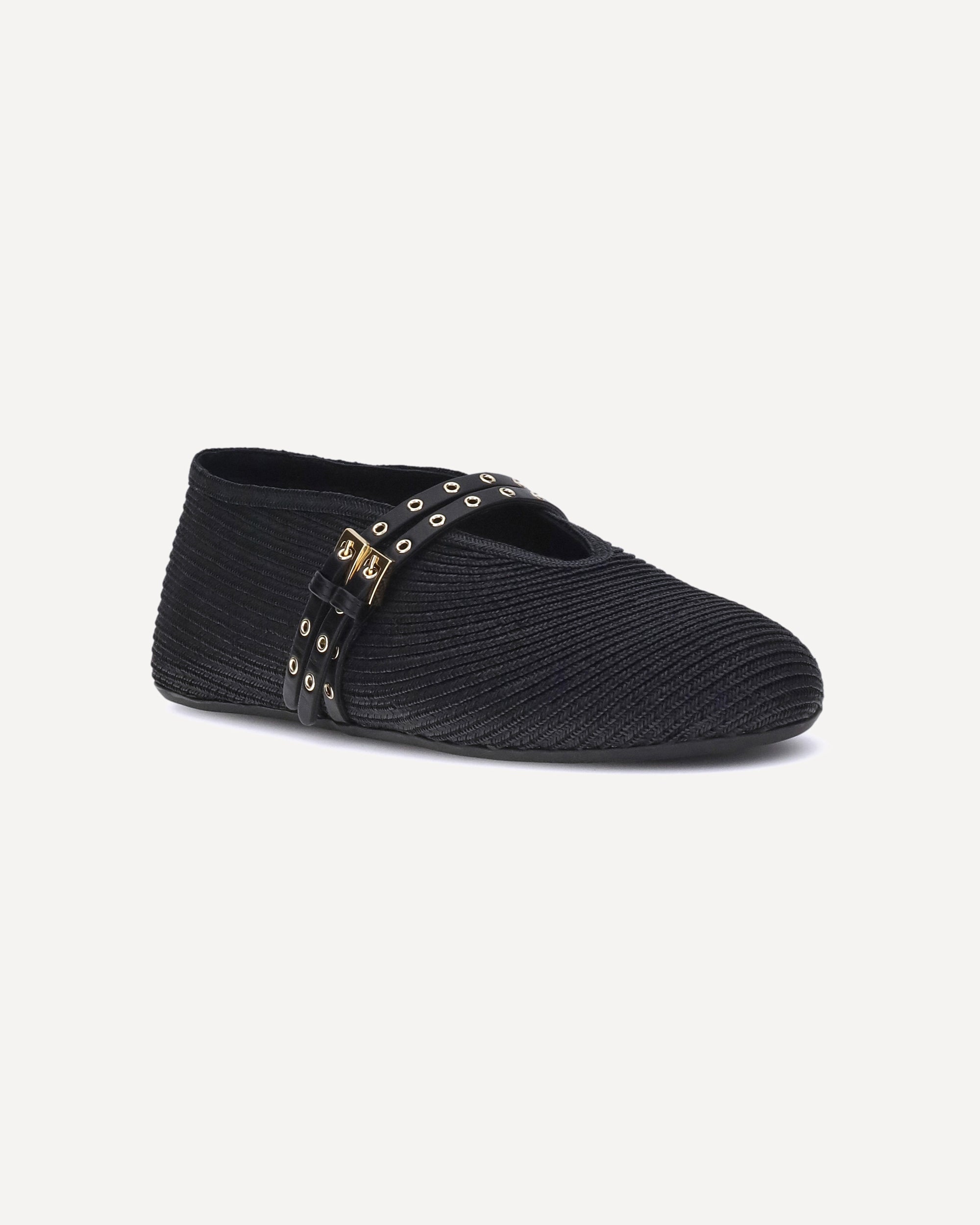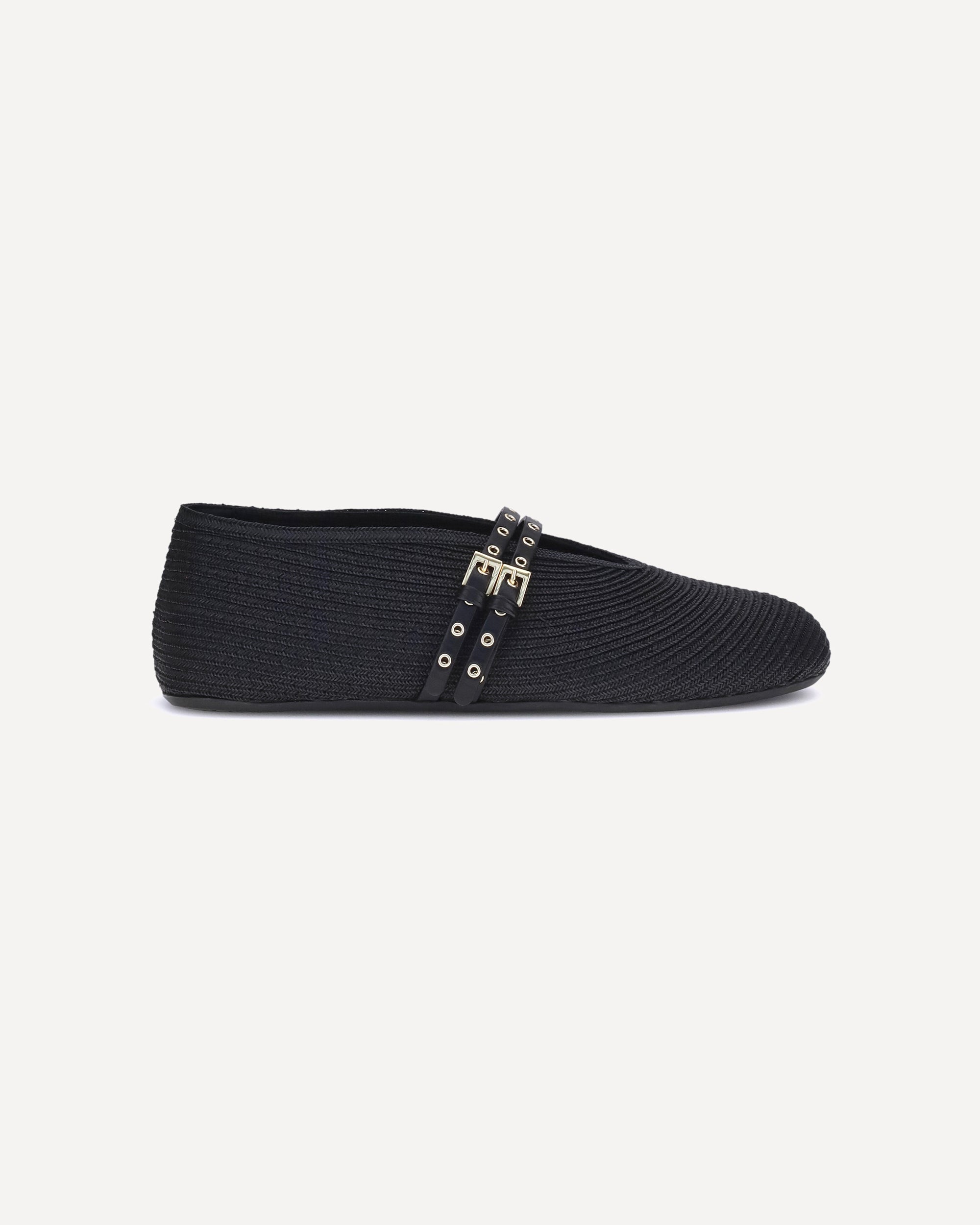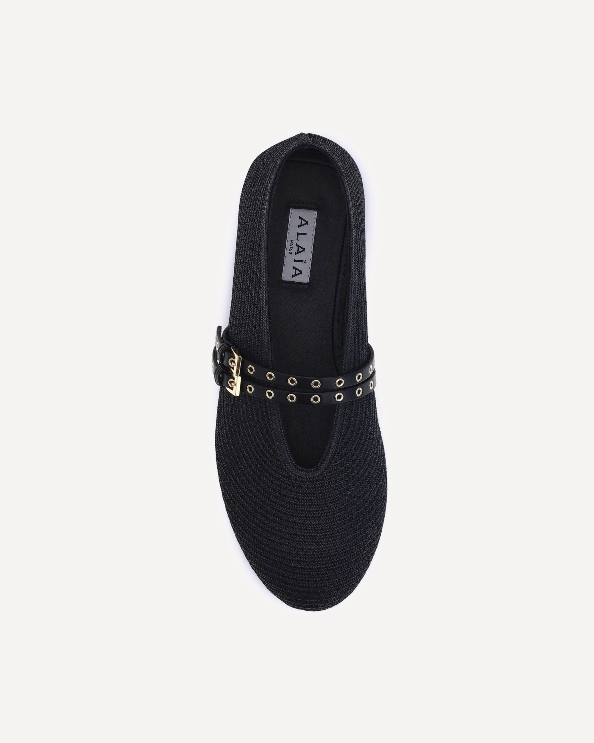 Alaïa's Raffia Ballerinas are a sophisticated homage to classic Japanese shoes, combining tradition and craftsmanship. They are made from panels of handcrafted paper straws woven and assembled, creating a unique and natural texture. The design includes a double leather eyelet strap for an adjustable fit and a refined touch. They feature a rounded toe for comfort, a rubber sole for grip, and a soft calfskin lining for understated luxury.