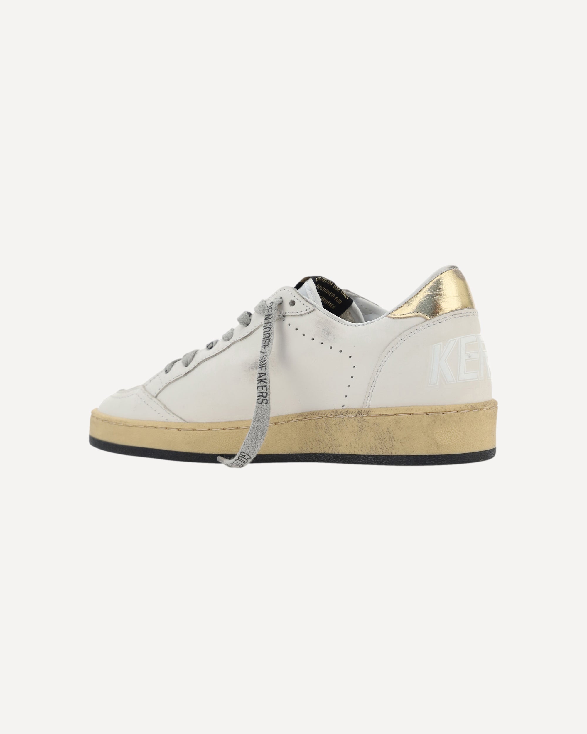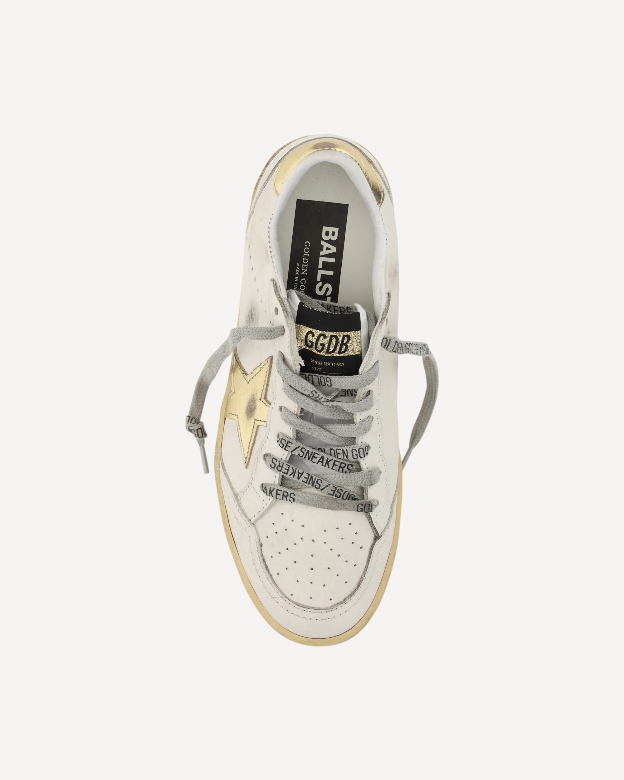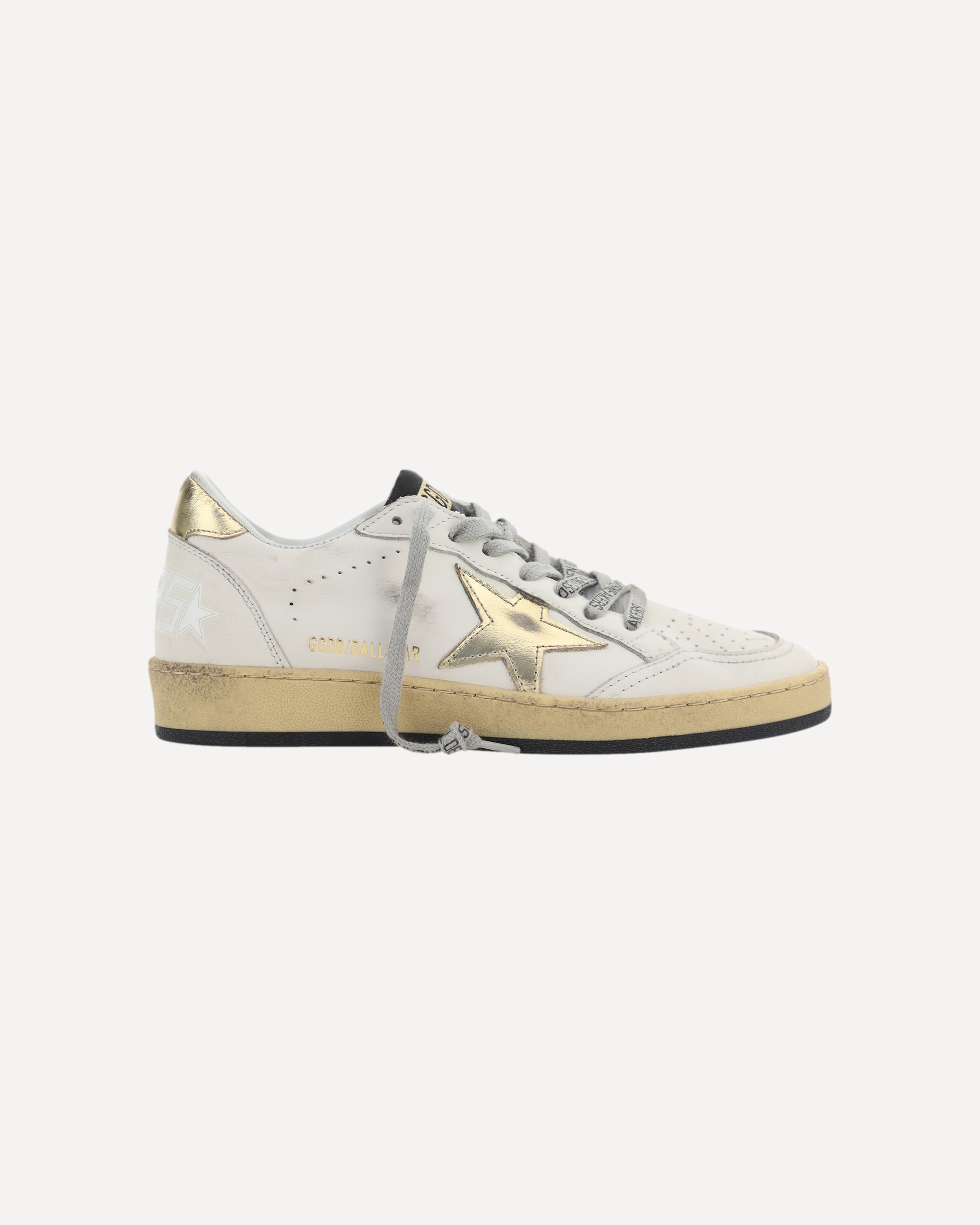 The leather Ballstar Sneakers by Golden Goose reinterpret the classic sporty style with distinctive details. They feature front lace-up closure, round toe and flat sole. The iconic contrasting star decorates the side panel, while the press-stud logo and embroidered monogram label on the tongue add the brand's signature touch. Metallic mirrored leather inserts complete the design with a bright, modern accent.