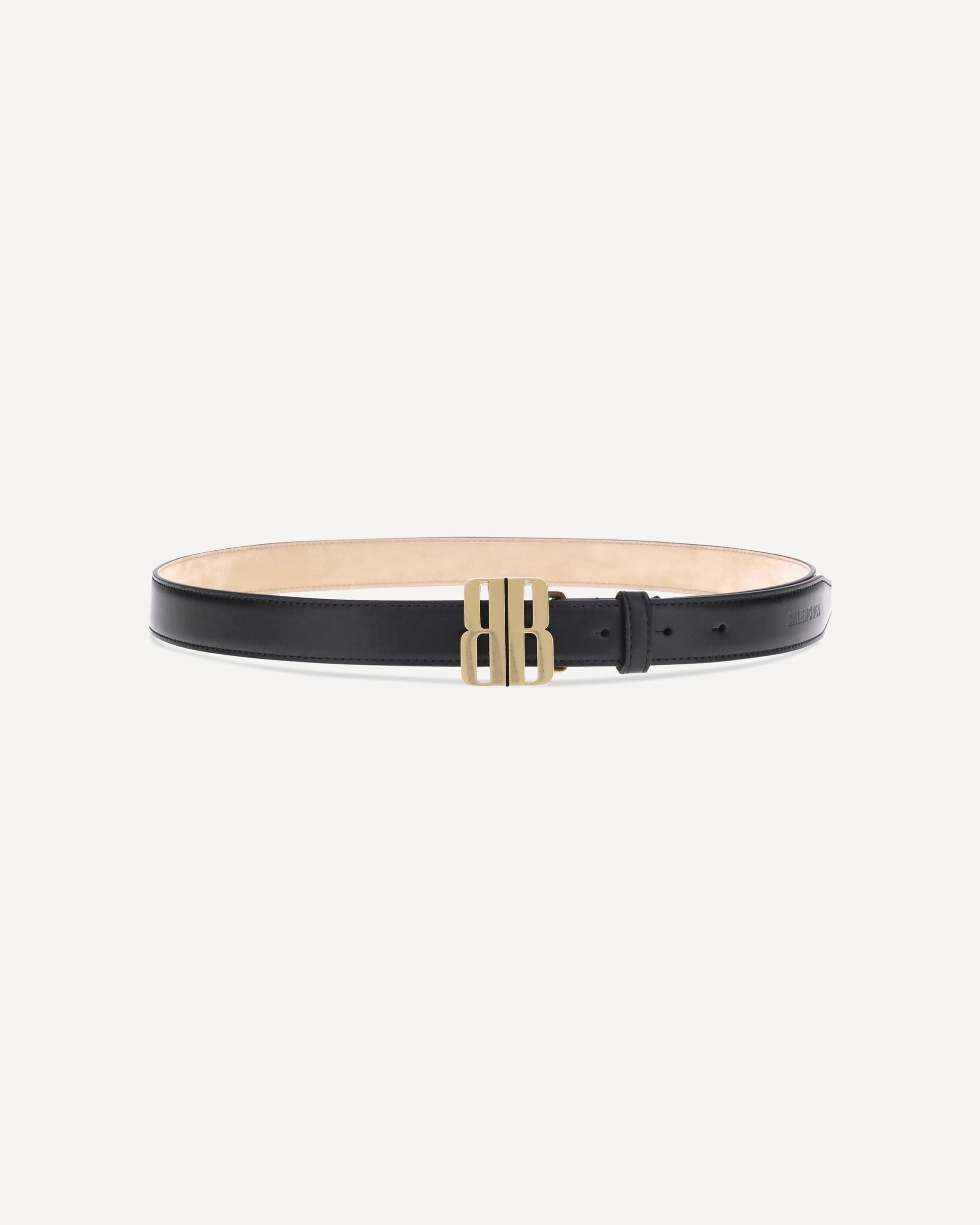 Balenciaga's leather Belt is a refined and minimalist accessory. Made of fine, smooth calfskin leather, it offers a soft texture and a clean look. The elegance is underscored by the tone-on-tone Balenciaga logo embossed on the end, a discreet but distinctive detail. The gold trim is perfect for completing any outfit with a touch of understated opulence.