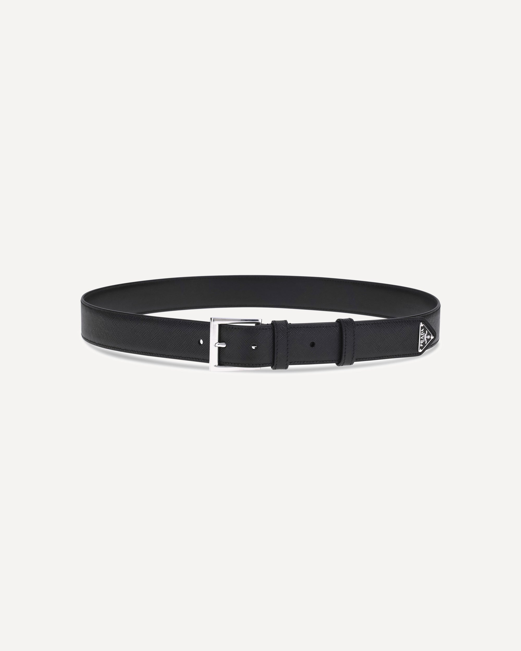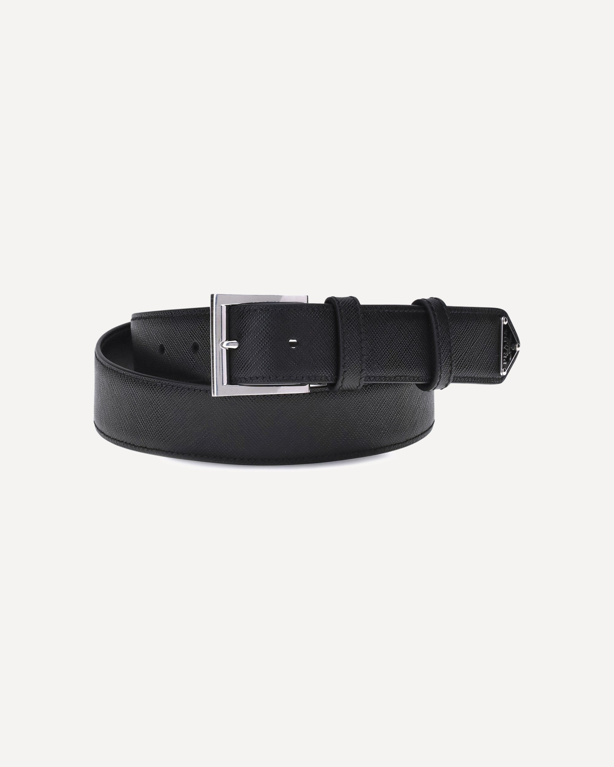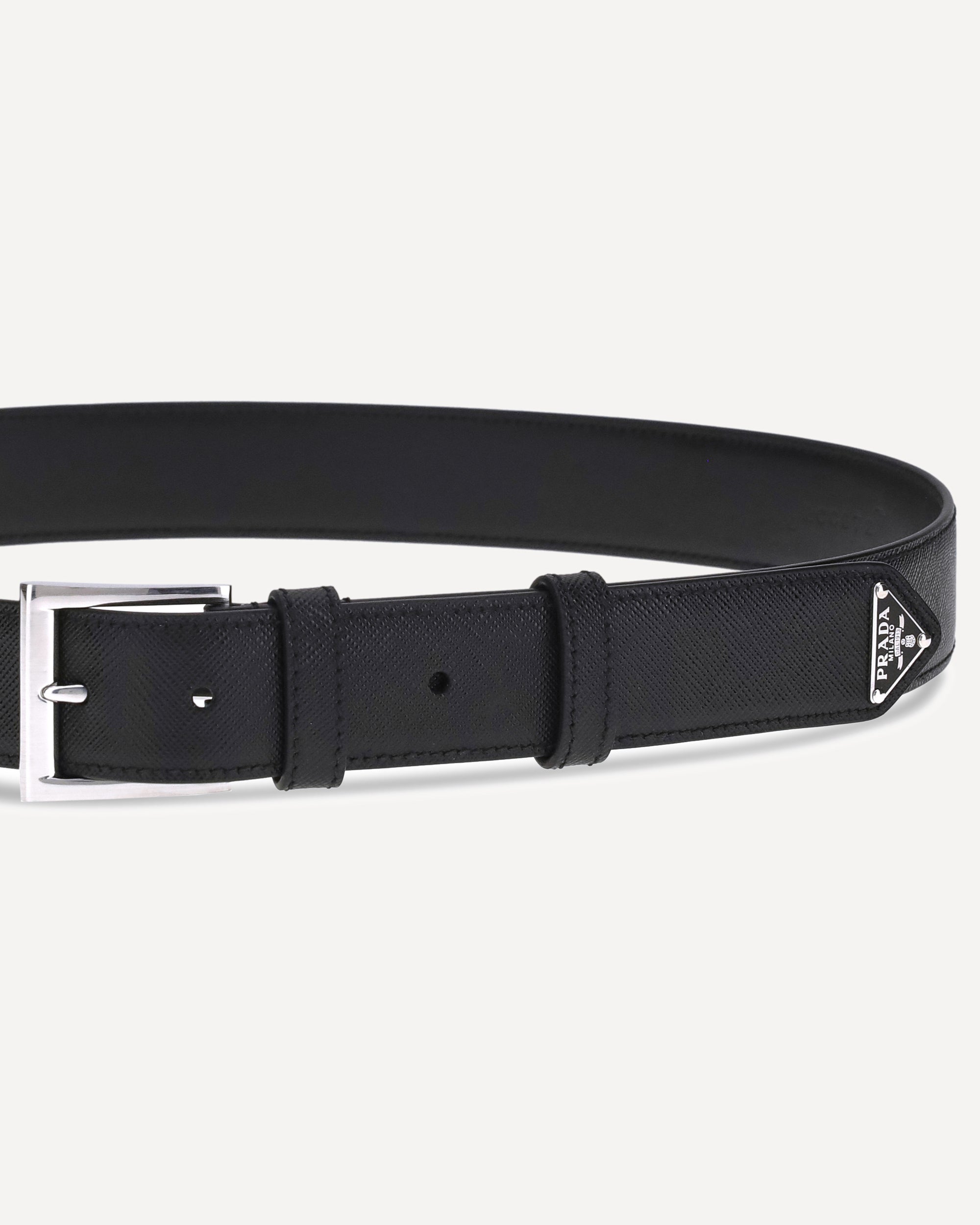 The Saffiano Belt by Prada embodies a sober and contemporary elegance. Crafted from Saffiano leather, it stands out for its essential and refined design, embellished with the enameled metal triangle logo, the iconic symbol of the maison. Completed with a metal buckle, it is the ideal accessory to add a distinctive touch to formal or casual looks.