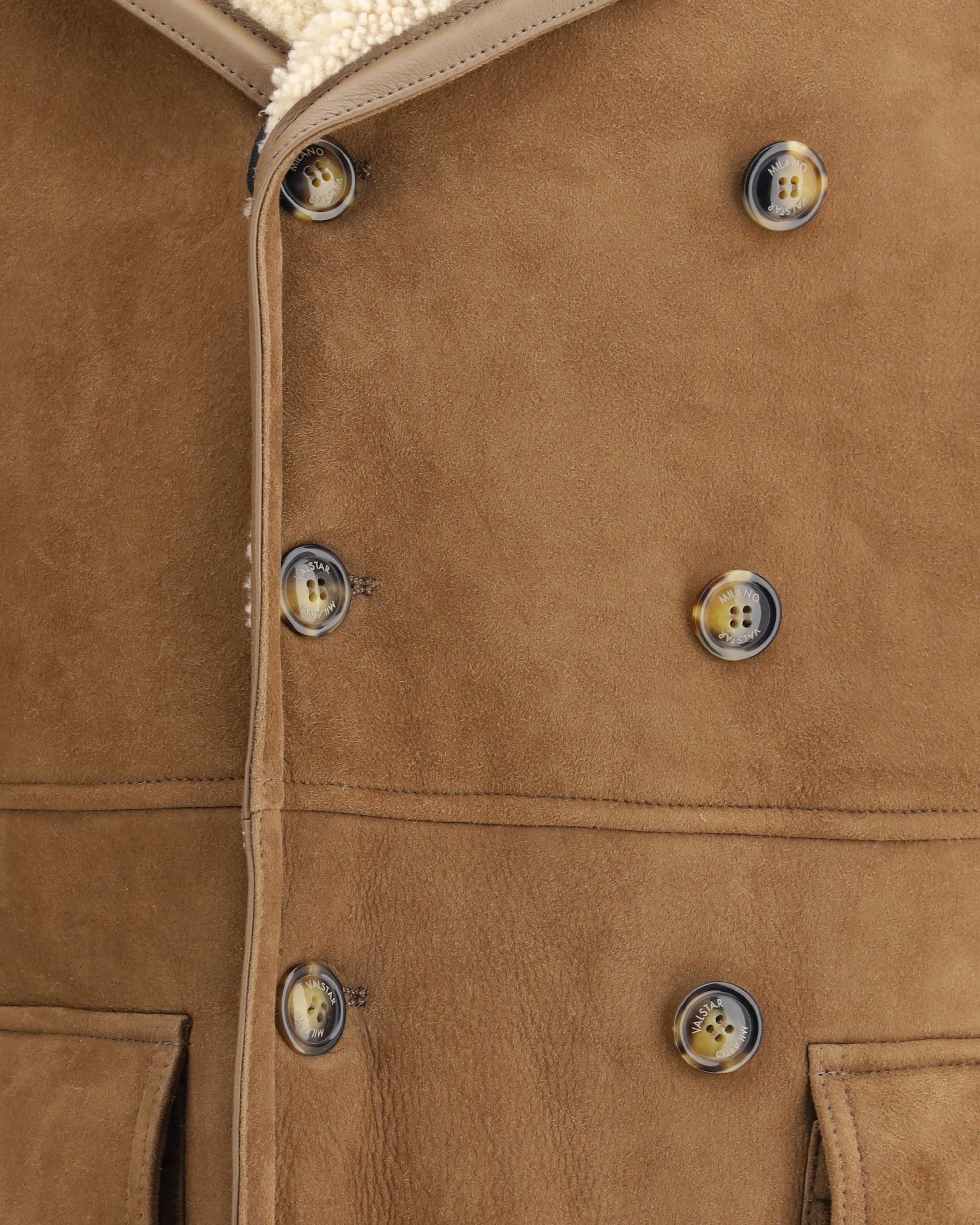 The Benjamin double-breasted shearling peacoat by Valstar combines warmth, refinement, and character. Designed with a structured silhouette, it features a classic collar and large flap pockets, emphasizing timeless elegance. Perfect for the colder months, it embodies Valstar’s authentic craftsmanship and enduring design aesthetic.
