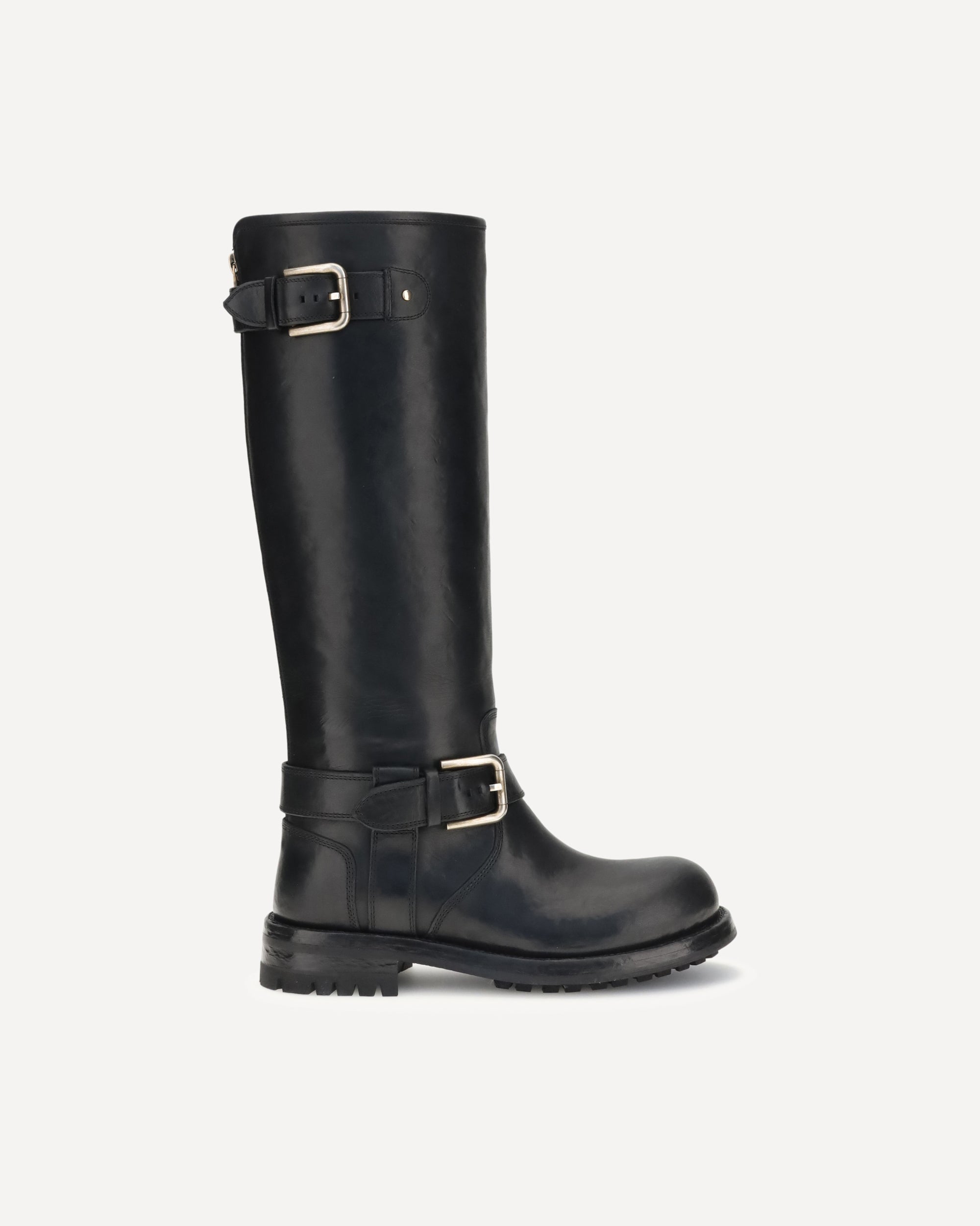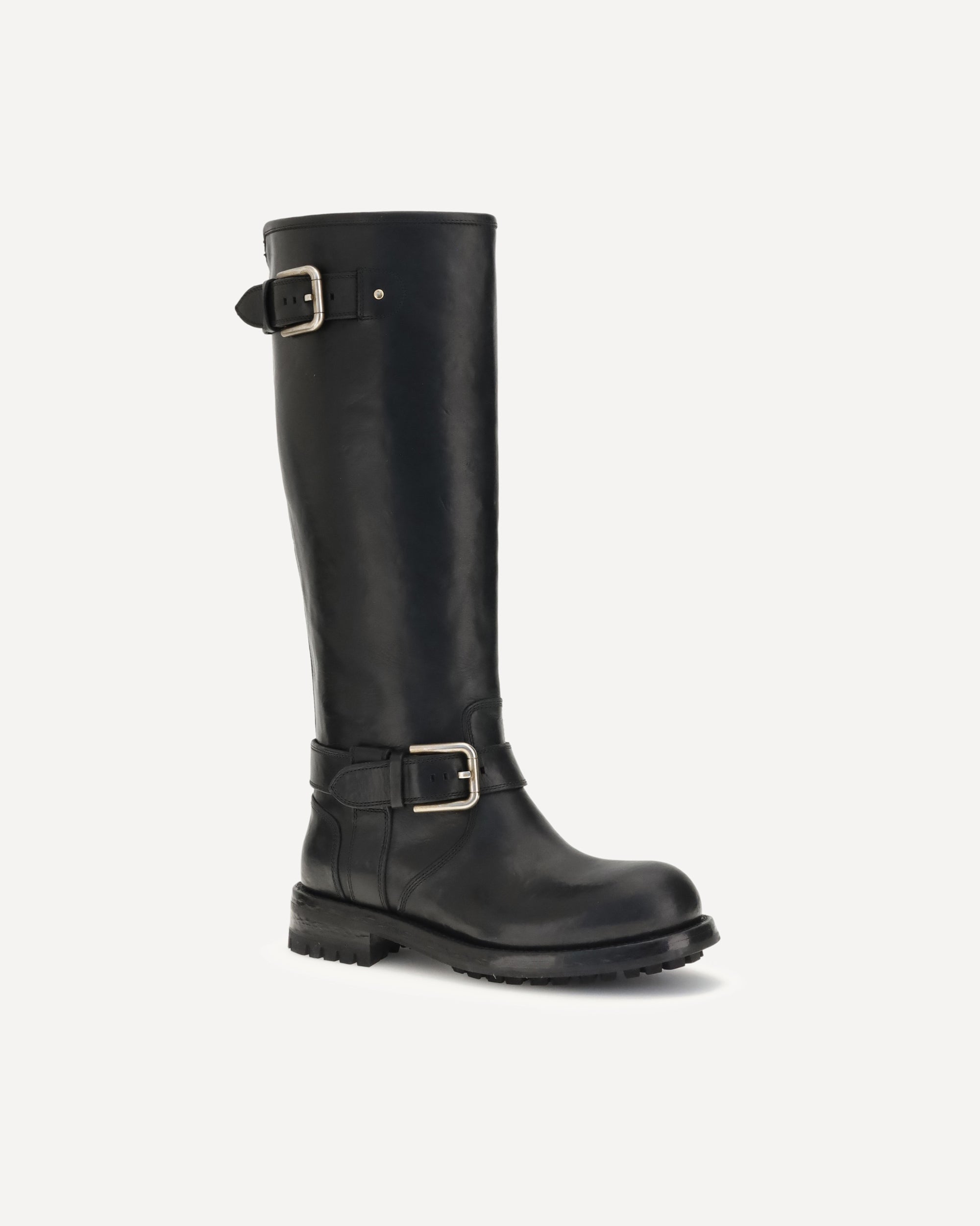 The Leather Biker Boots by Dolce & Gabbana are perfect for completing a casual yet sophisticated look. The TPU sole with leather bottom and full leather insole provide comfort and durability, while the buckle with matte oxidized gold plating and the Bernini base add a distinctive touch of style.