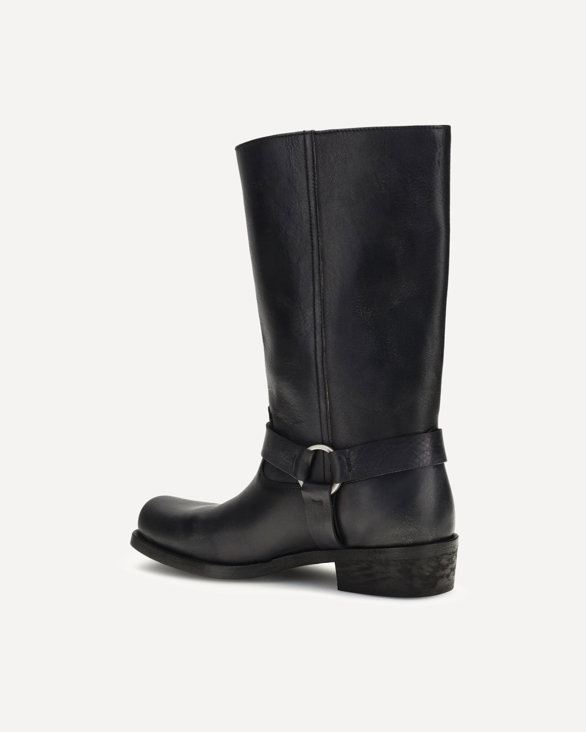 The leather Biker Boots by Golden Goose combine bold style and distinctive details. Crafted from high-quality leather, they feature a buckled belt and a square toe, perfect for a contemporary, urban look, enhancing casual and bold outfits.