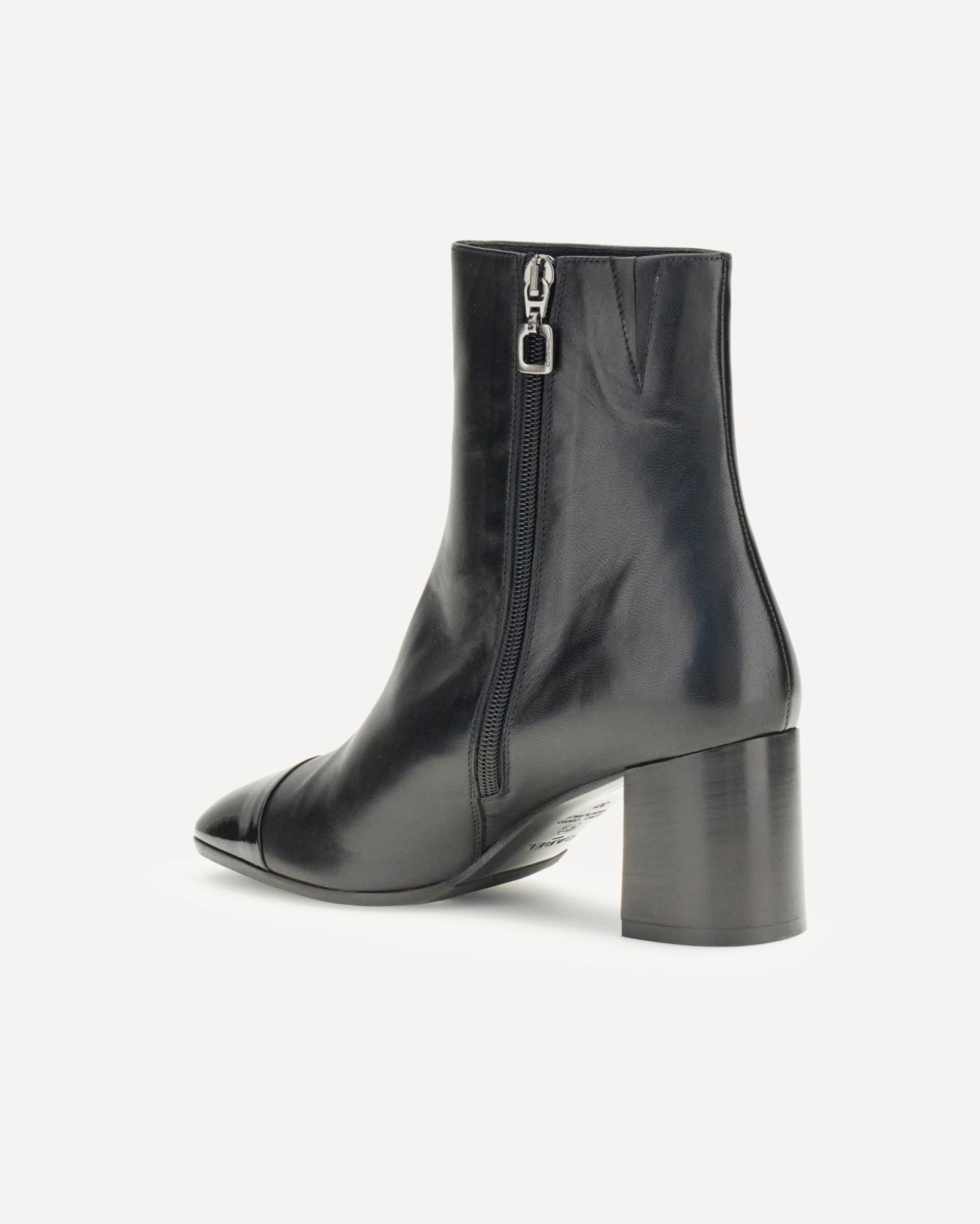 The Esprit Ankle Boots by Carel Paris, crafted from leather with a contrasting patent toe, reinterpret the classic ankle boot with a retro elegance. The slightly flared heel adds a touch of elegance and character, while the side zip closure ensures practicality and a perfect fit. A bold style, ideal for completing this season's looks with personality.