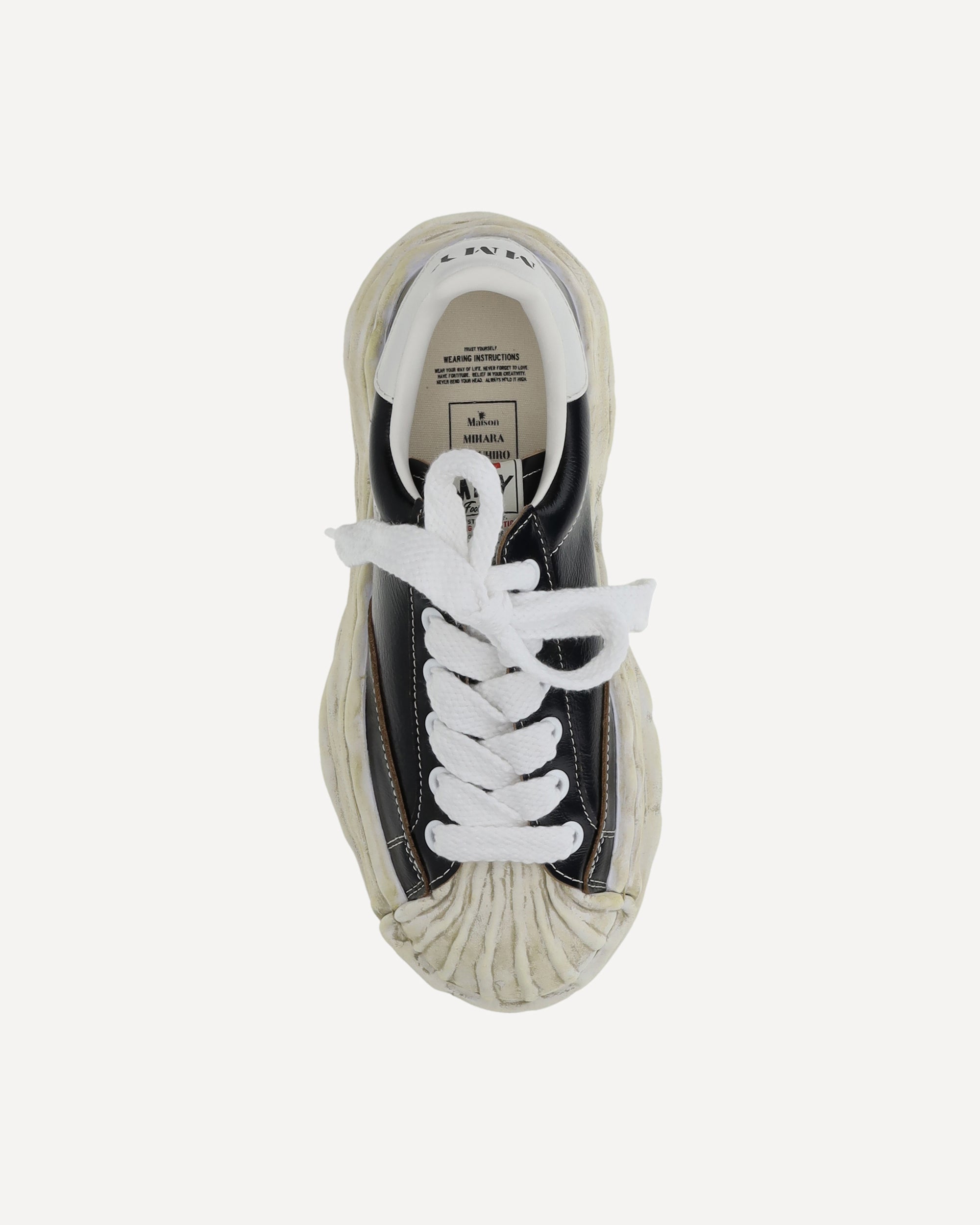 Maison Mihara's Blakey Sneakers are the embodiment of urban style with unique details. The black leather upper, paired with the white rubber sole, creates a sophisticated contrast. The lace-up closure and logo patch tongue add a distinctive touch, while the side logo embroidery and white leather heel with logo print emphasize the brand's identity. Contrast stitching completes the design, making these sneakers a versatile and trendy accessory.