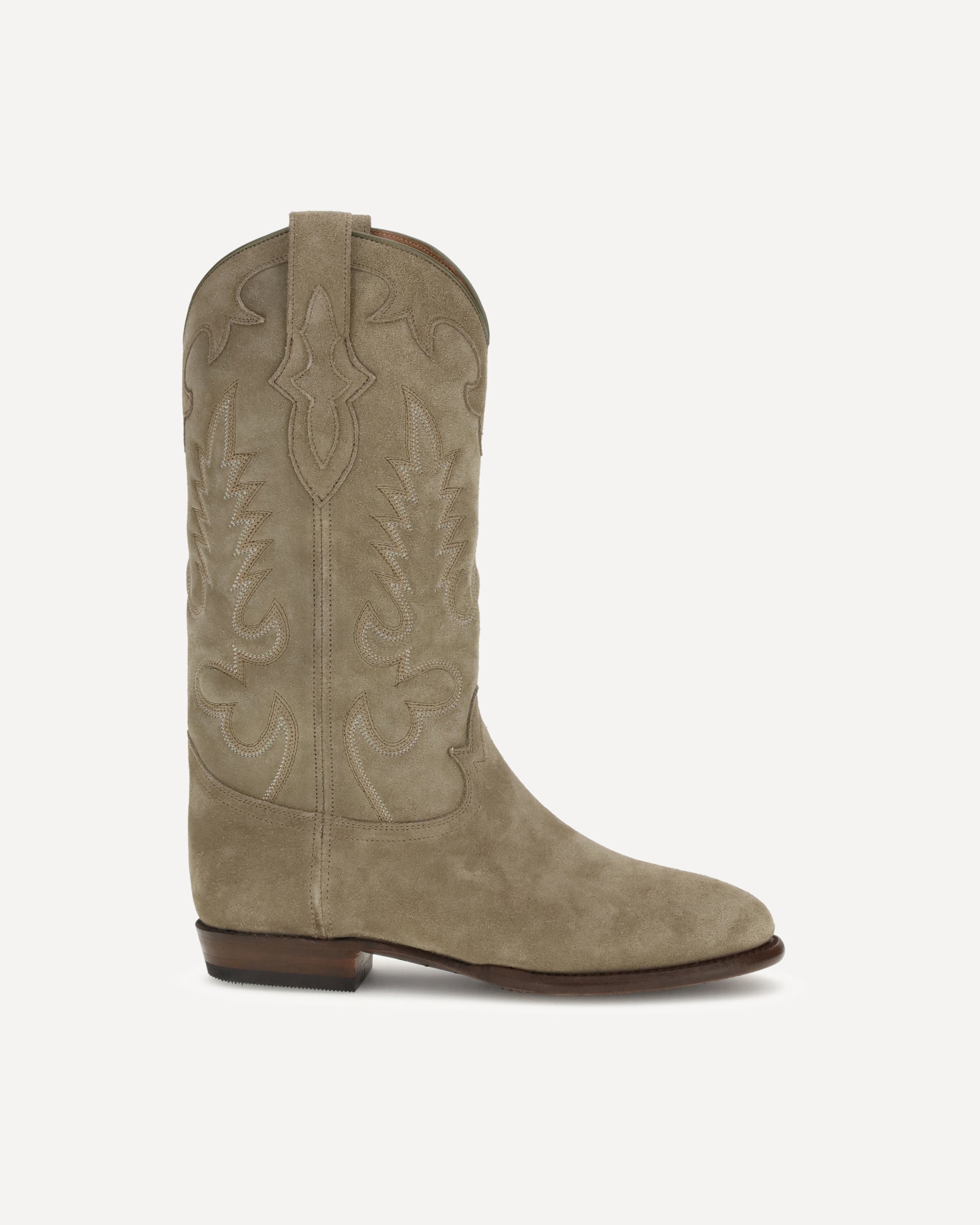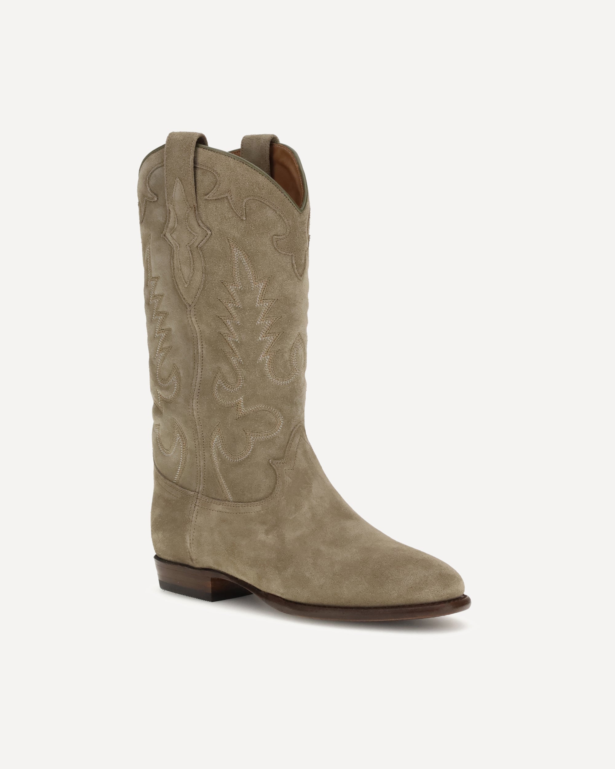Shiloh Heritage's Texas Boots combine tradition and comfort in a design with western appeal. Made of soft suede, they feature a rounded toe, quilted stitching and a mid-calf height. Lined in leather and fitted with comfort-flex insoles, they are complemented by a leather sole and slightly beveled heel for authentic, versatile style.