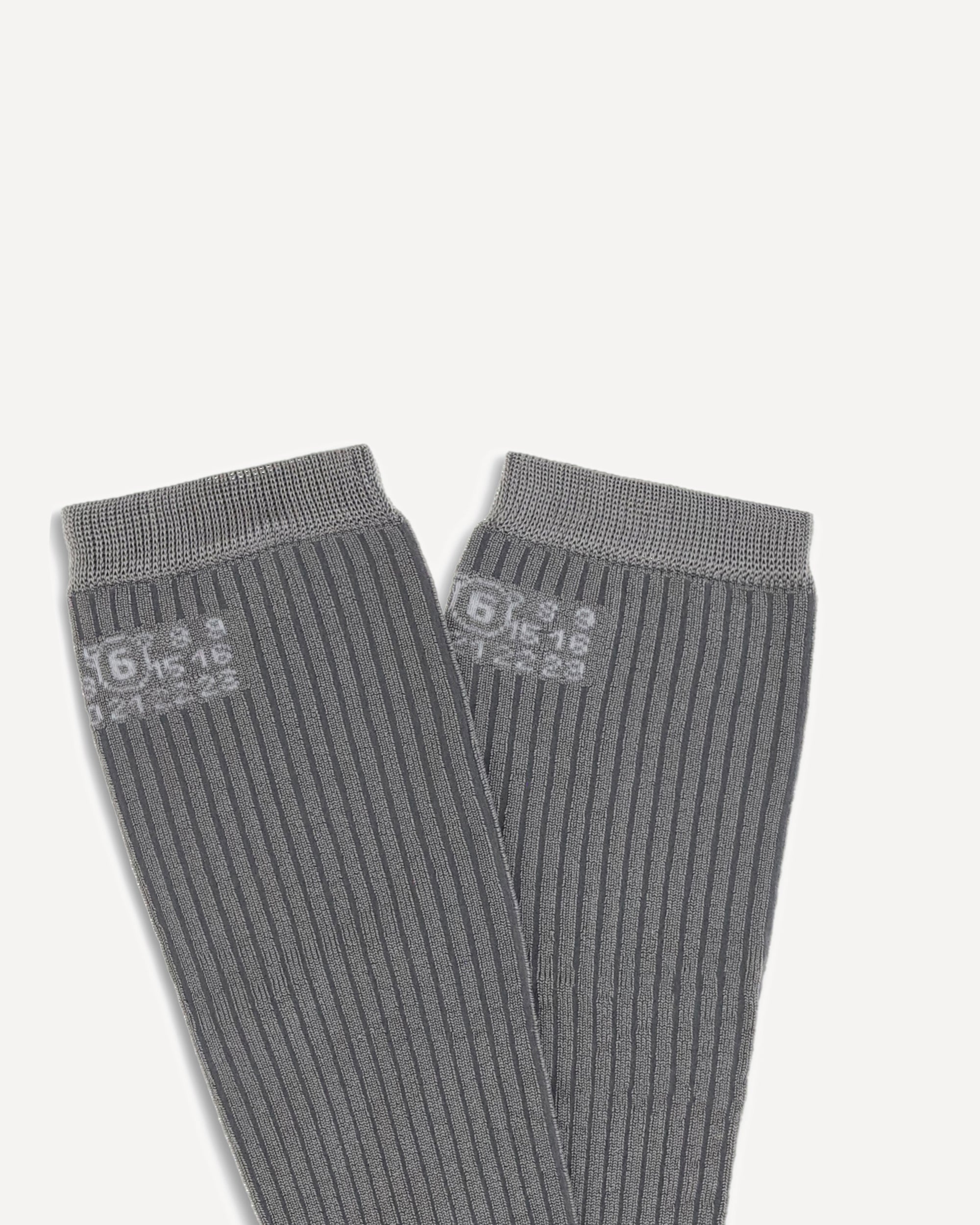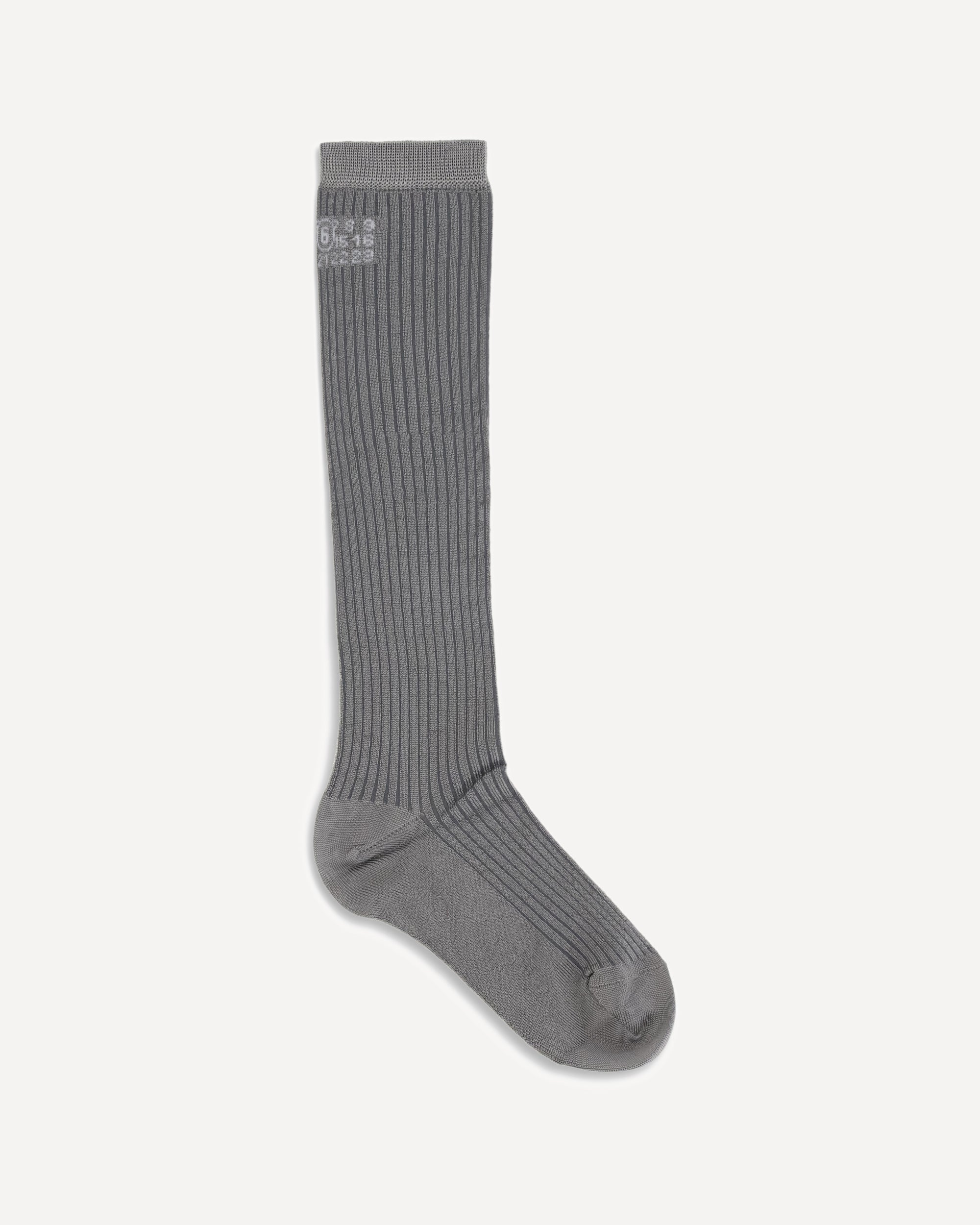 MM6's Socks are made from a stretch viscose blend and feature a contrasting embroidered logo on the top. The ribbed legging adds a sporty touch and ensures a comfortable, snug fit.