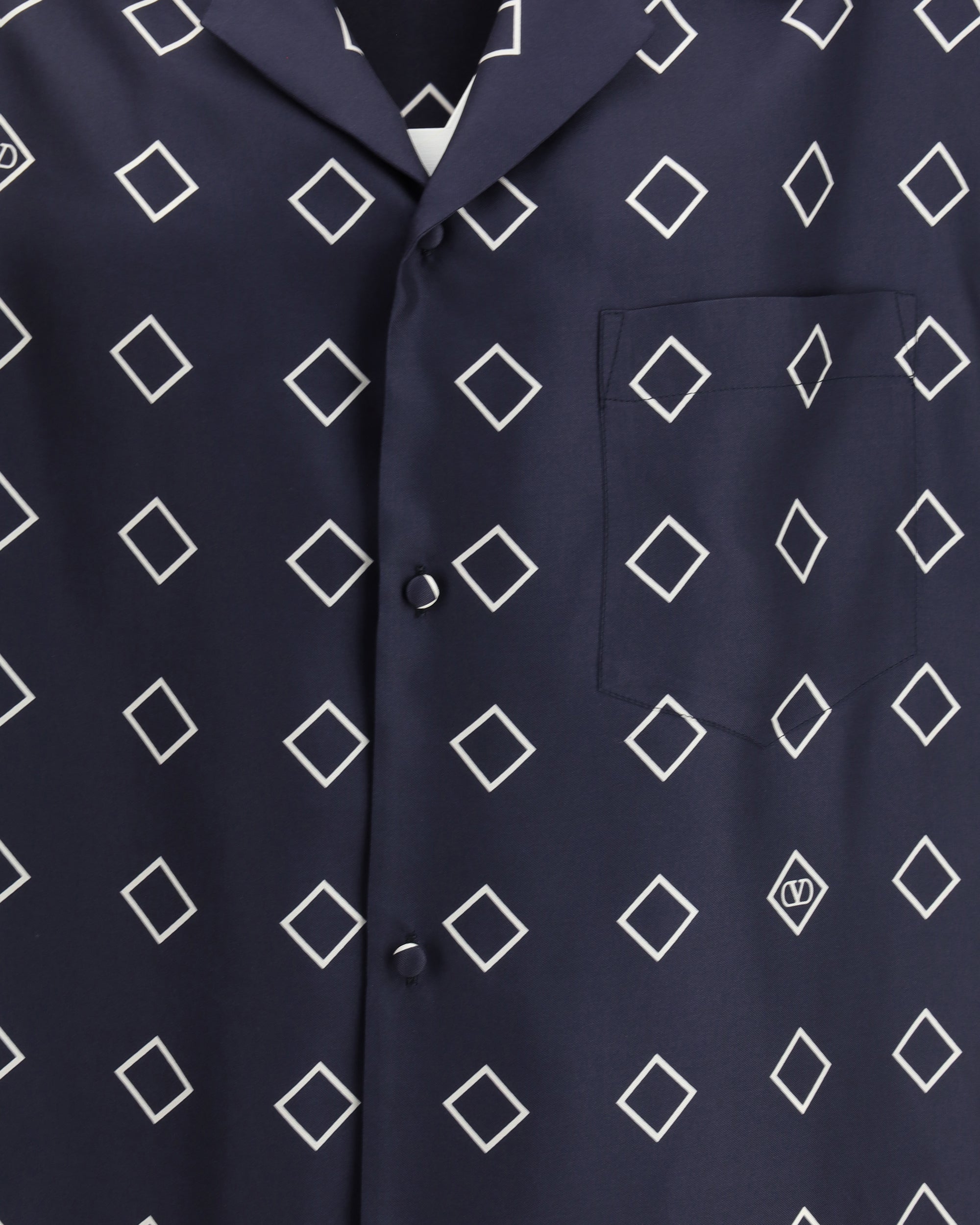 Valentino's Silk Opticool Bowling Shirt reinterprets retro style with a contemporary twist. Crafted from pure silk, it features a relaxed silhouette with short sleeves and a Cuban-style collar. The front button closure and patch breast welt pocket add functionality without sacrificing elegance. The all-over of contrasting geometric prints creates a bold visual impact, while the iconic contrasting VLogo signs the garment with understated sophistication.