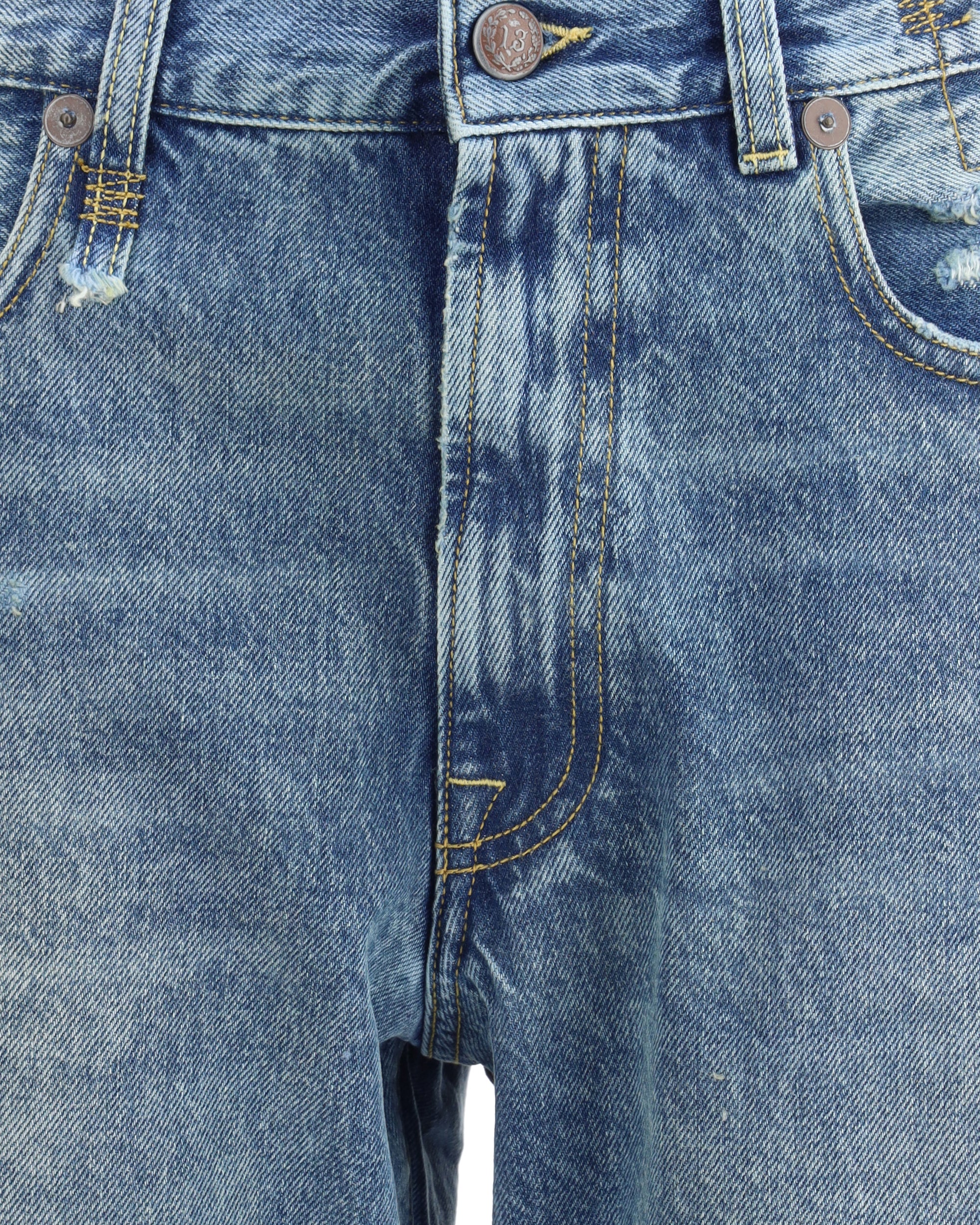 R13's cotton boyfriend jeans feature a classic five-pocket design and a concealed button and zipper front closure for a clean, refined look. A straight leg and belt loops at the waist complete the garment, ensuring a comfortable and versatile fit perfect for any occasion.
