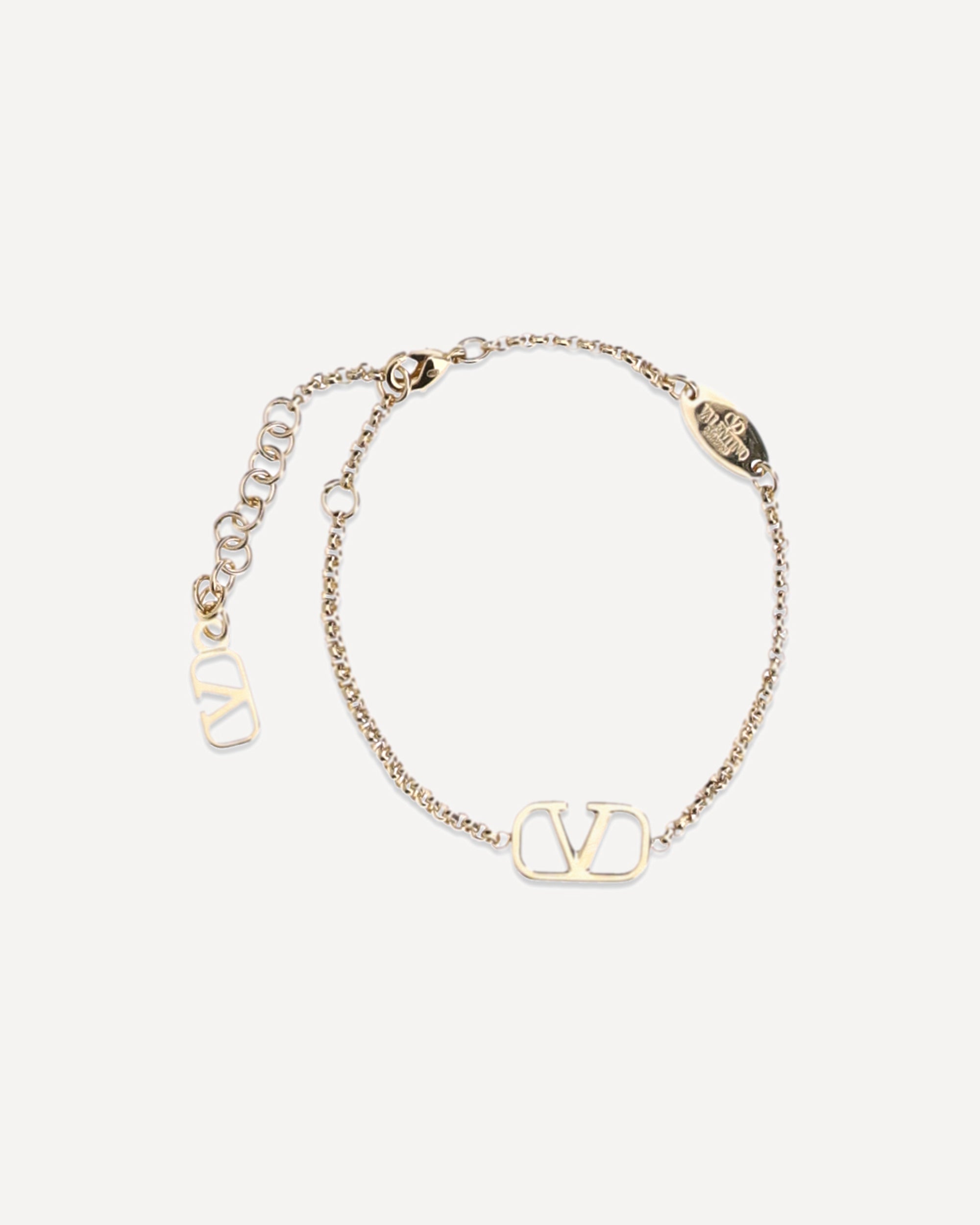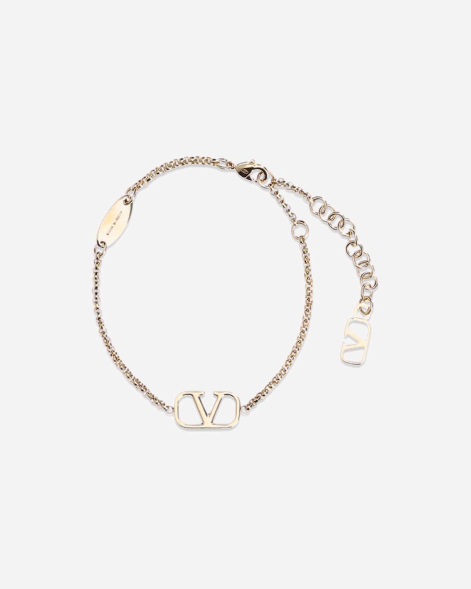 Valentino Garavani's Signature VLogo Bracelet is an elegant and iconic piece of jewelry made of metal with a refined 18-karat gold finish. The design is embellished with the unmistakable VLogo logo in the center, while the adjustable clasp ensures a comfortable and personalized fit.