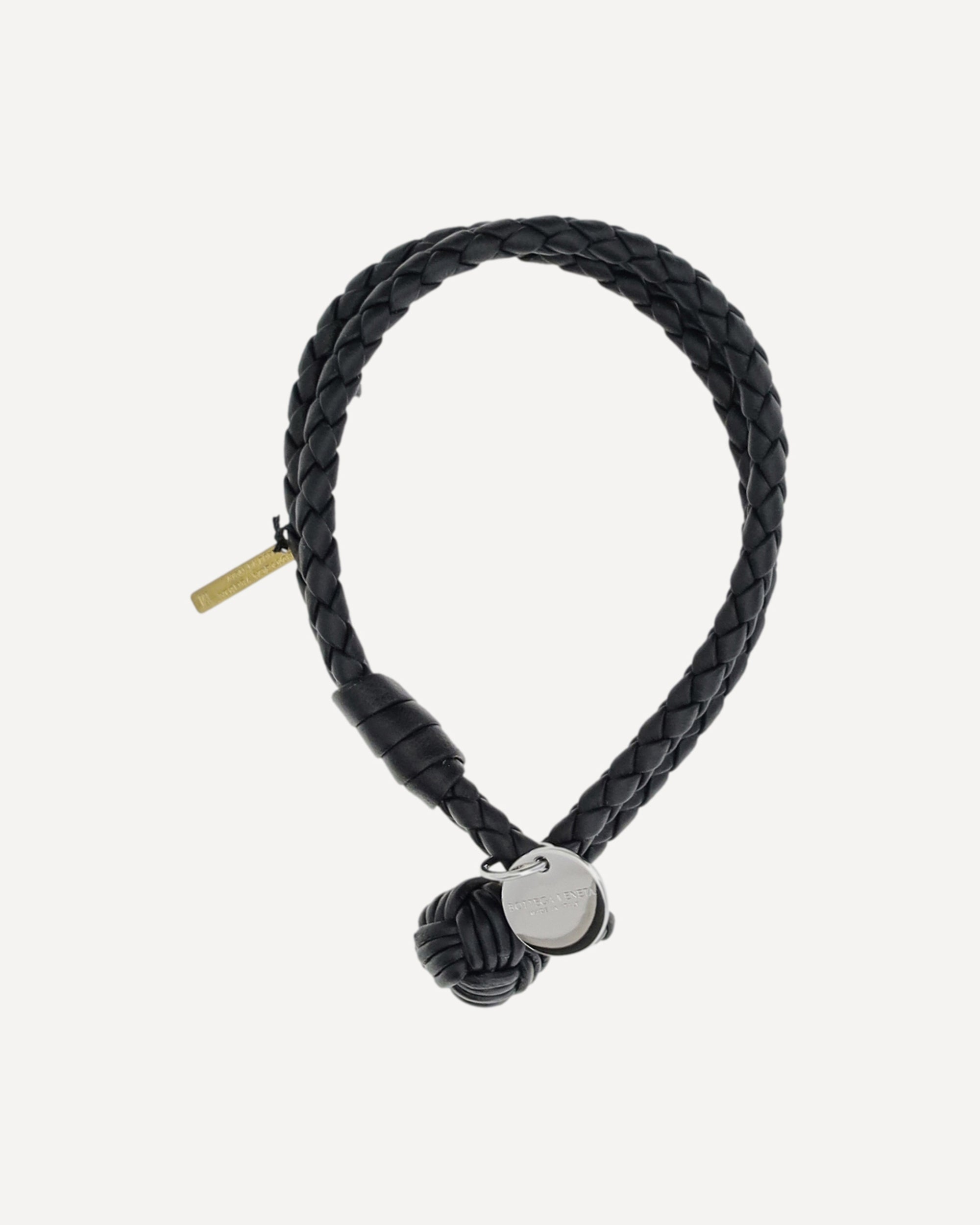 The Knot leather Bracelet by Bottega Veneta is an essential accessory with a refined and recognizable design. Made of woven leather, the distinctive symbol of the maison, it is embellished with the emblematic Knot detail and a round engraved logo plaque. A discreet yet iconic touch, perfect for completing casual or more elegant looks with minimal elegance.