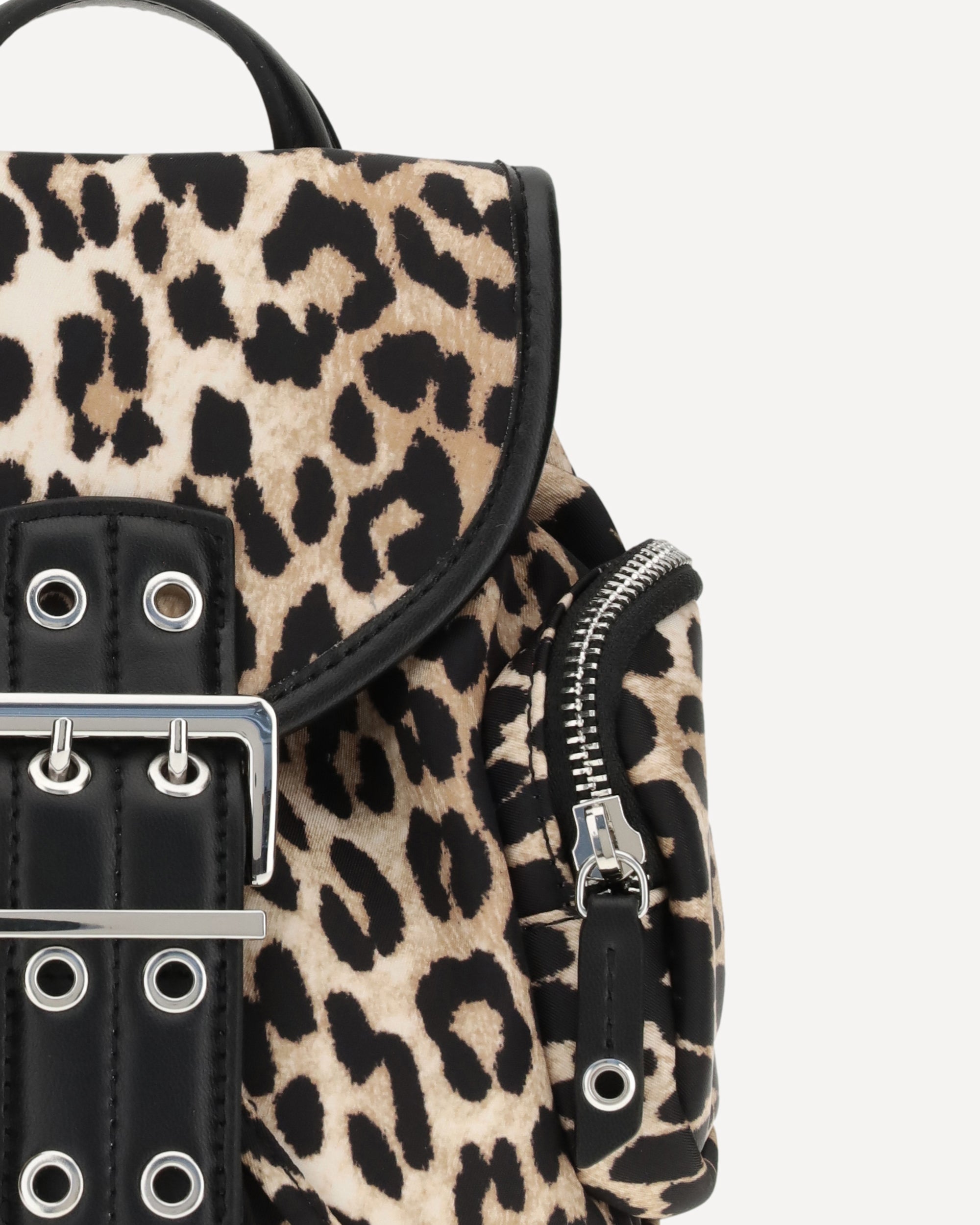 The animalier print nano Backpack by Ganni combines practicality and character. It features a front flap closure with adjustable buckle, two side zippered pockets, a comfortable handle and two shoulder straps. Compact yet functional, it is the perfect accessory to add a punchy touch to your everyday looks.