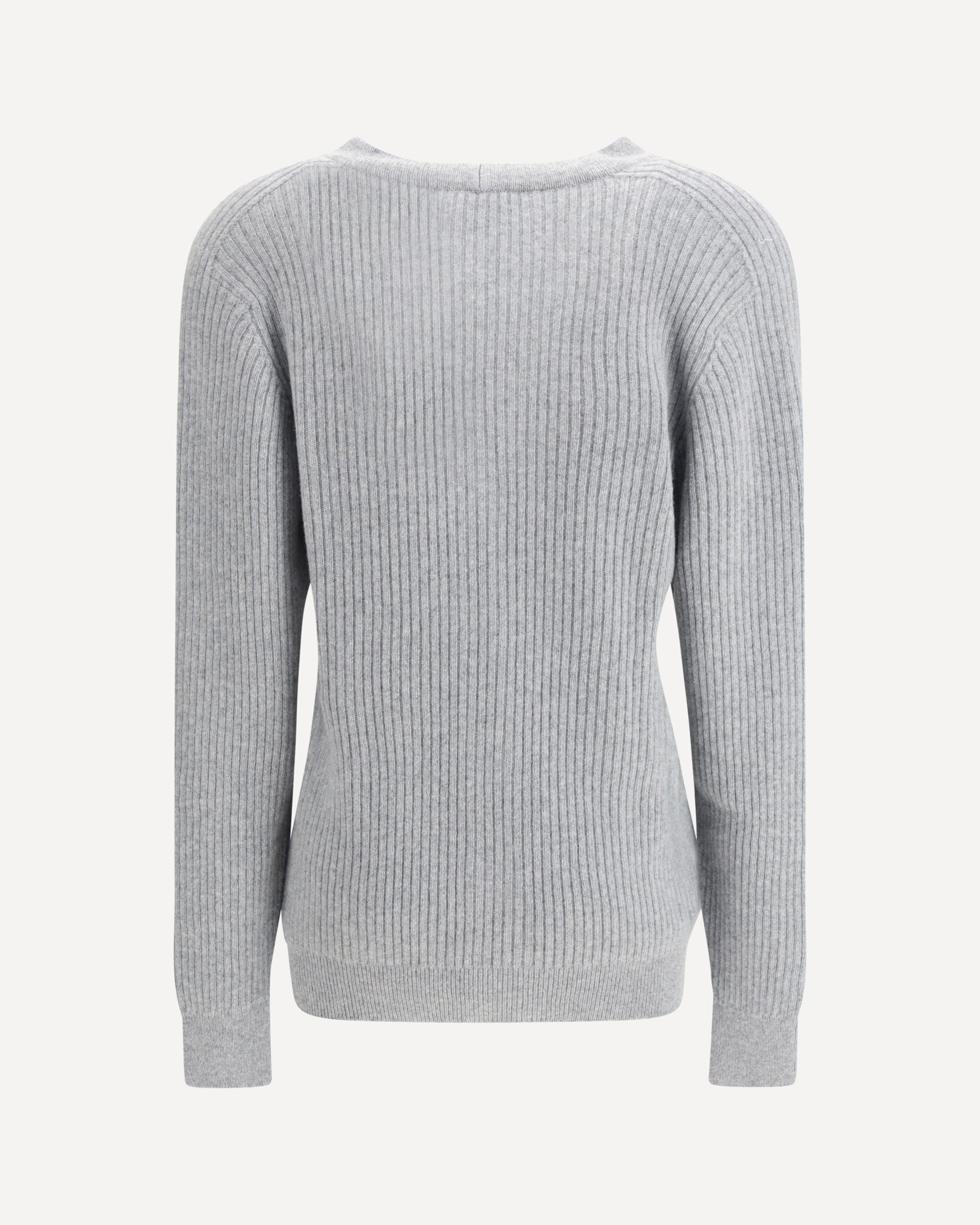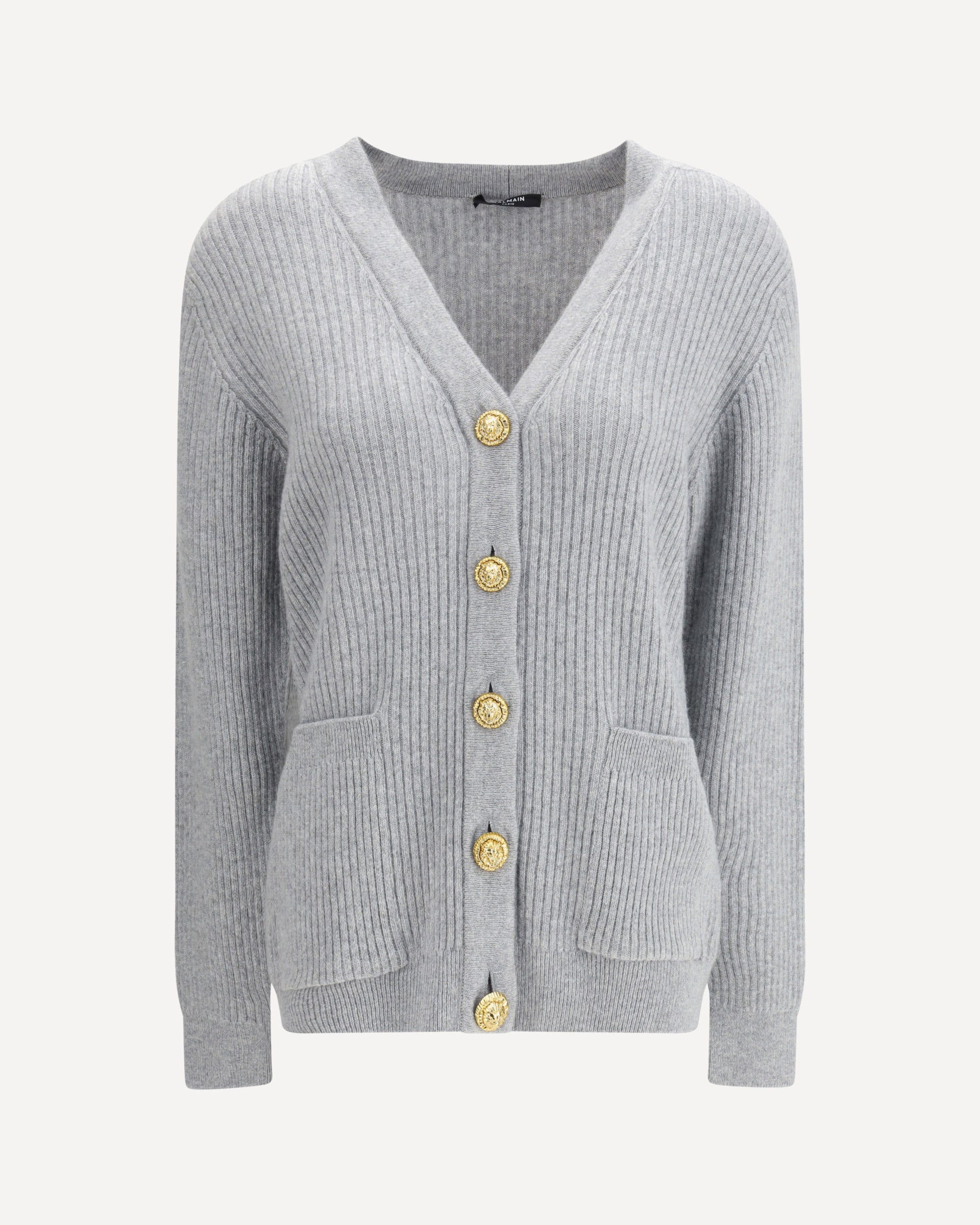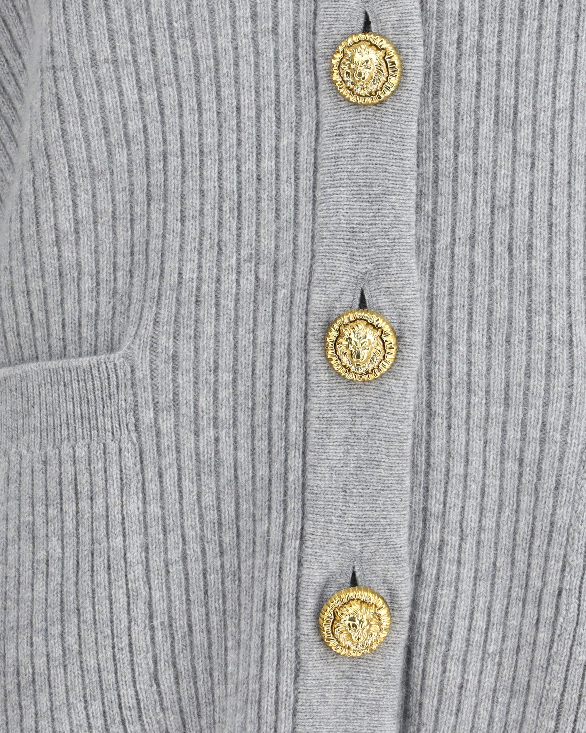 The long cashmere Cardigan by Balmain represents the perfect fusion of comfort and sophistication, typical of the brand. The soft, elongated line is defined by the deep V-neckline and ribbed edges that emphasize its structure with balance and fluidity. Golden lion-head buttons, the iconic symbol of the house, add a precious accent that contrasts with the simplicity of the design. Patch pockets at the sides complete a garment designed to wrap with relaxed elegance and contemporary spirit.