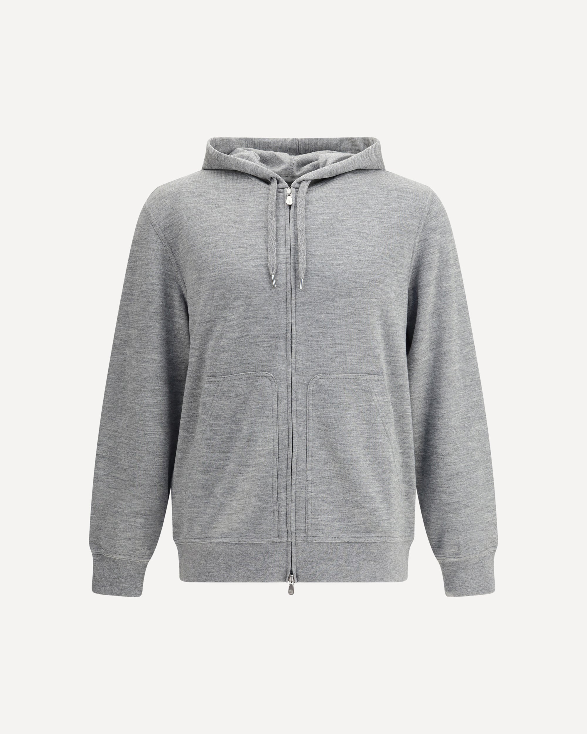 Brunello Cucinelli cashmere Hoodie features an adjustable hood with drawstring for a customizable fit. The front closure features a double-slider zipper for added convenience and adjustability. Two patch welt pockets on the front add convenience, while ribbed cuffs and hem ensure a snug, comfortable fit. The monochrome design lends a touch of minimalist elegance, while the regular fit offers comfort without sacrificing style. A versatile garment, perfect for everyday wear or moments of relaxation.