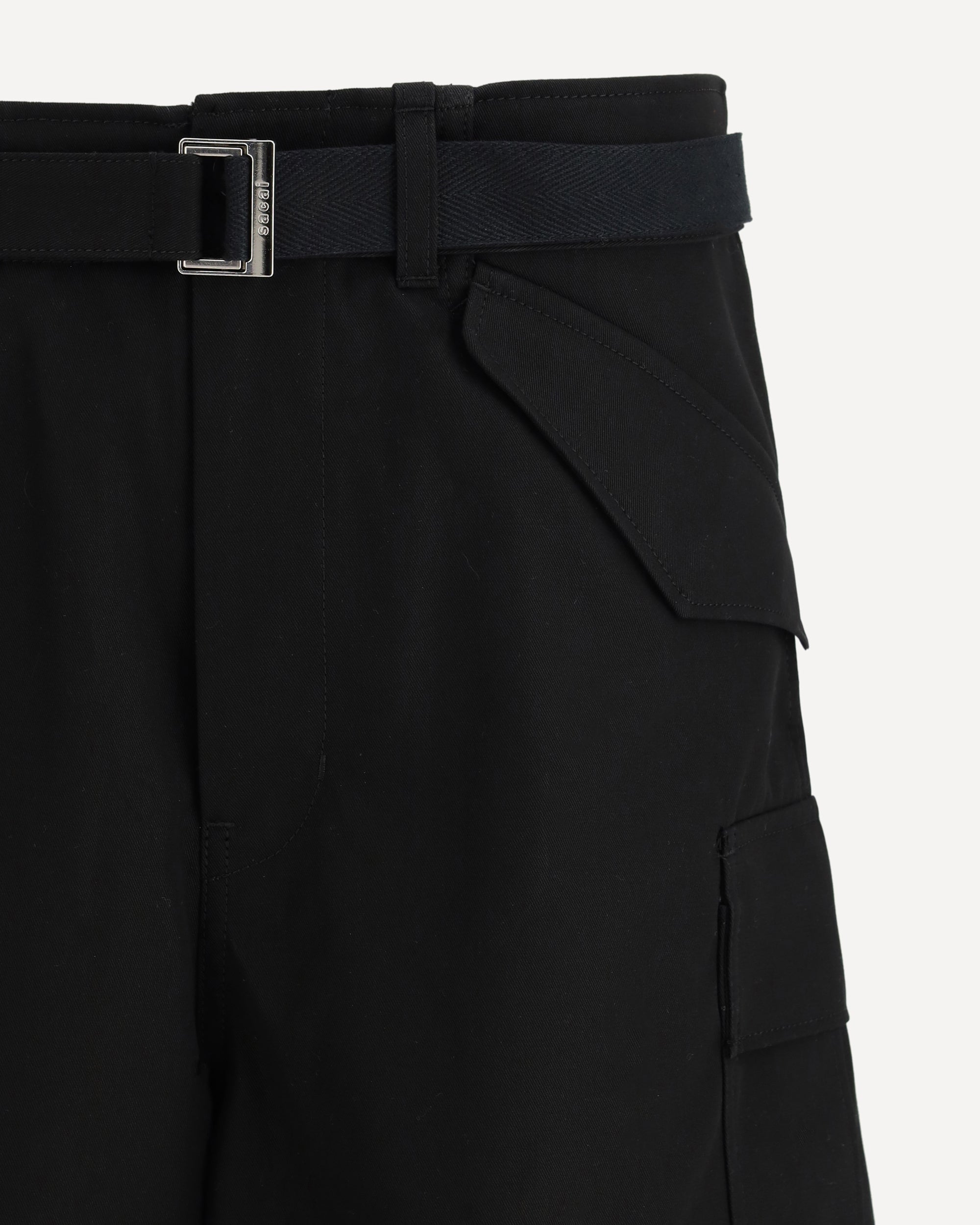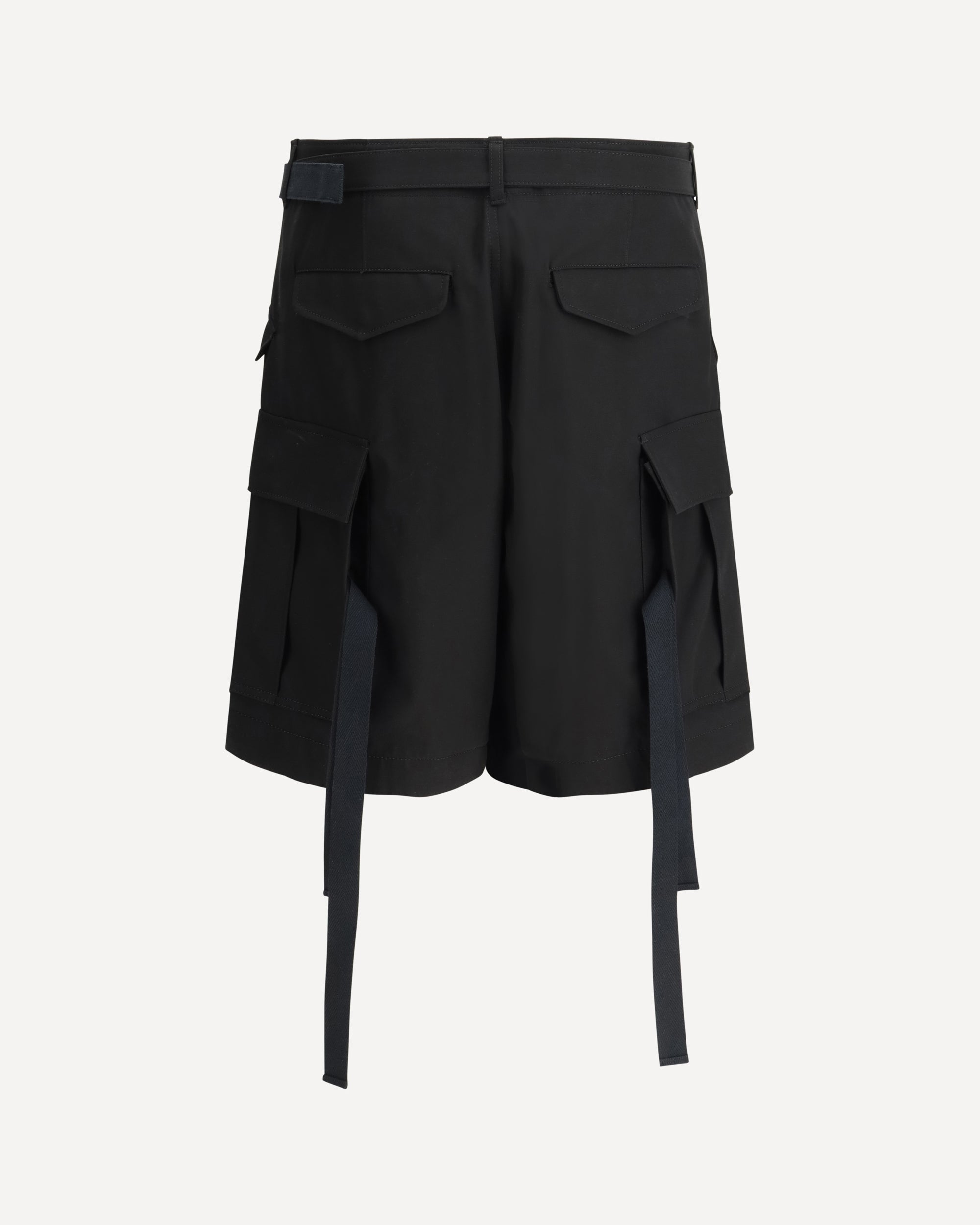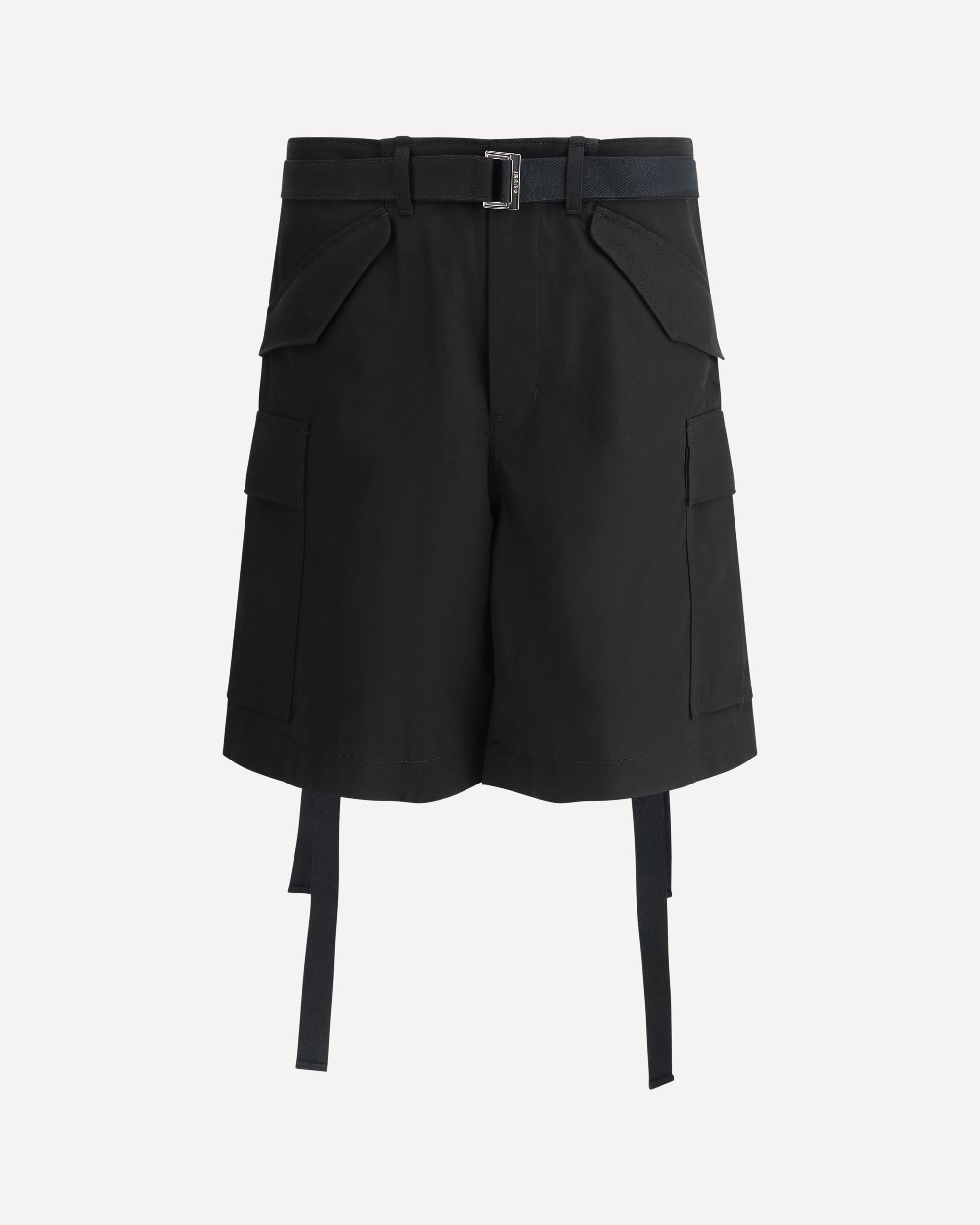 The cotton Shorts by Sacai are a versatile and practical piece, featuring a functional design. They have two side welt pockets and two welt pockets with flaps on the back panel, adding a touch of style and utility. The cargo pockets on the side panels provide extra space, while the belt loops and the adjustable, removable matching belt allow for a customizable fit. The front closure is equipped with a button and zipper for added convenience. A mix of comfort and functionality with a modern, urban look.