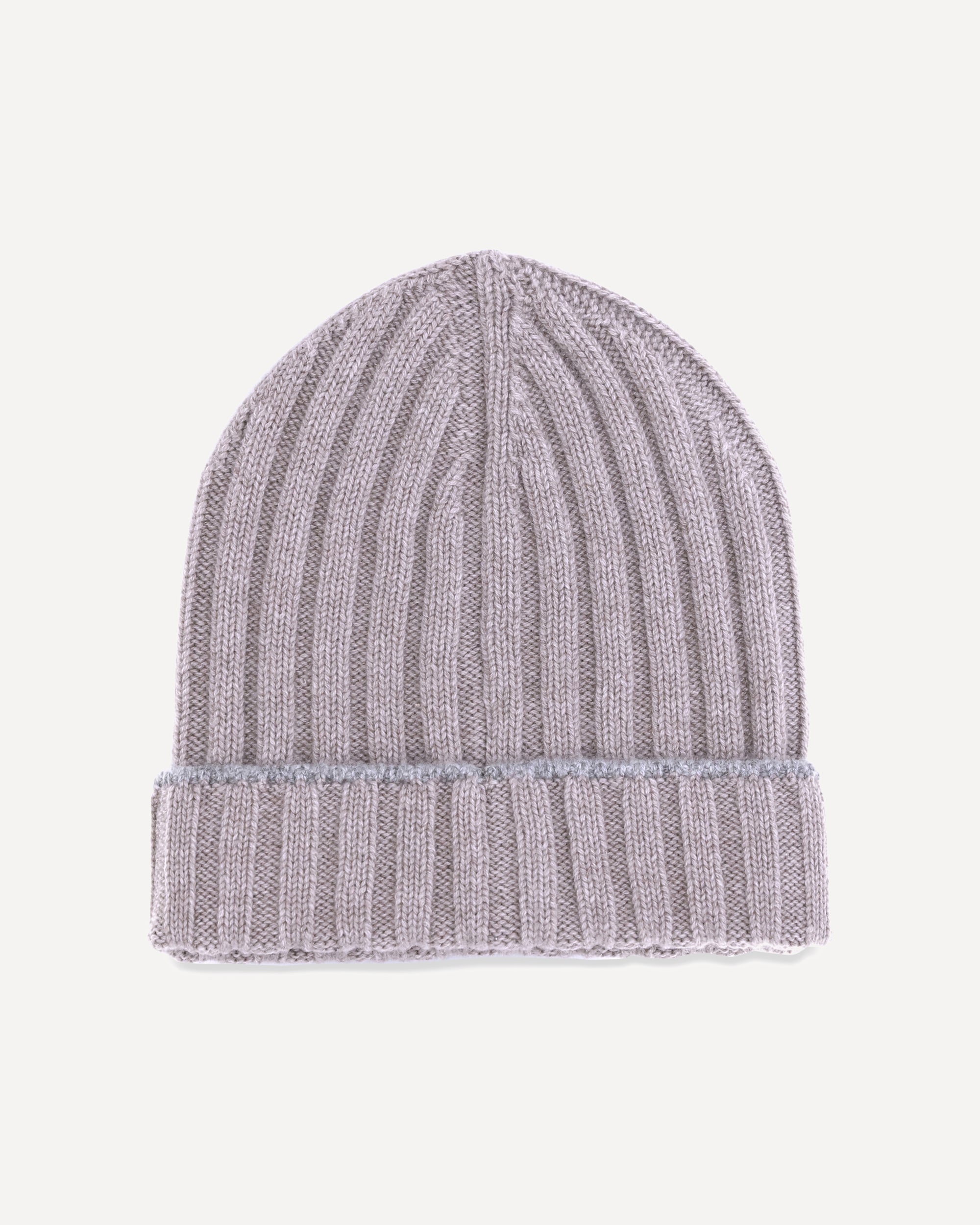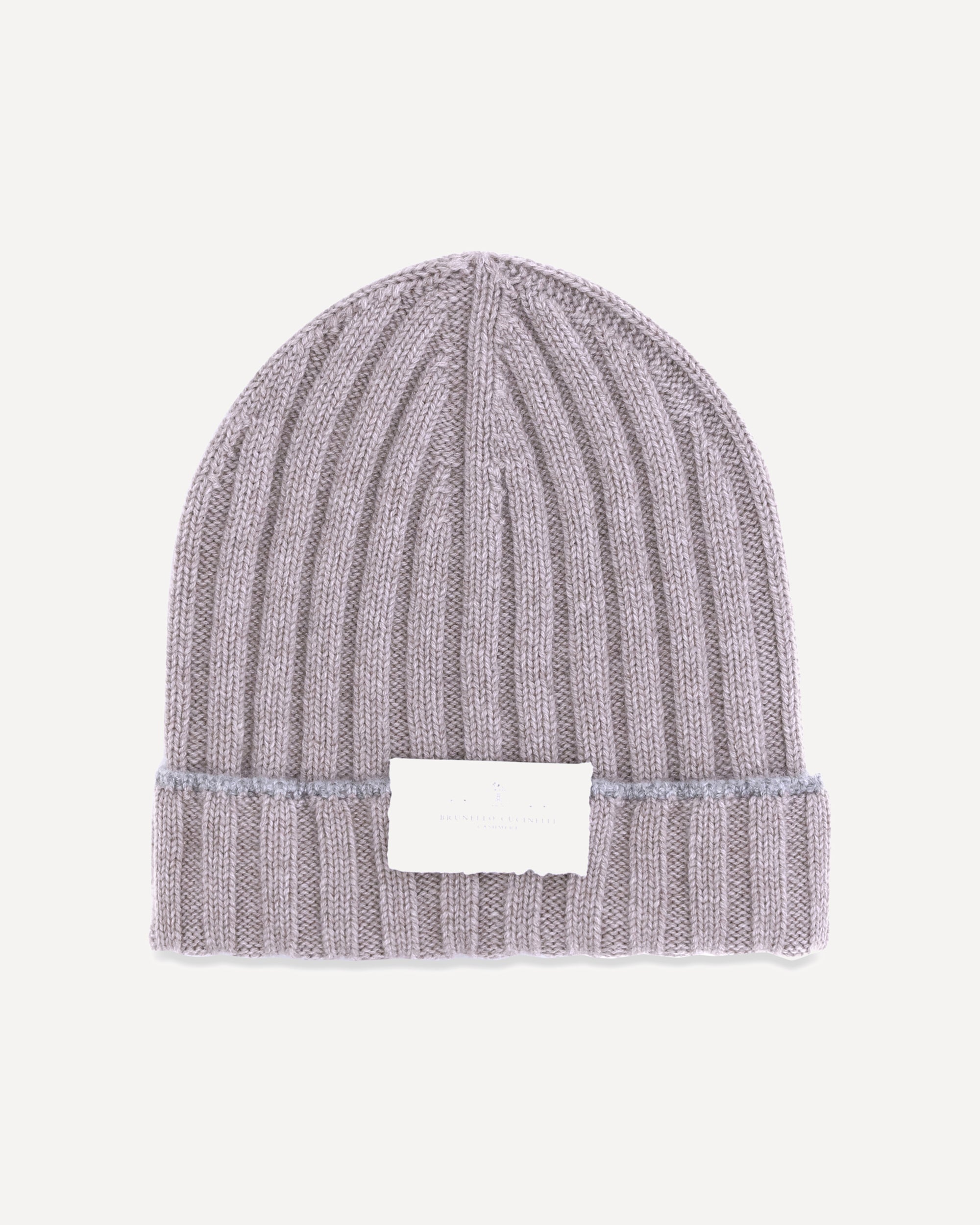 Beanie Hat by Brunello Cucinelli, made of fine cashmere with ribbed knitting. The monochrome design is enriched with contrasting profiles, a refined detail that expresses the discreet elegance of the brand. An essential and sophisticated accessory, ideal for completing winter looks with comfort and style.